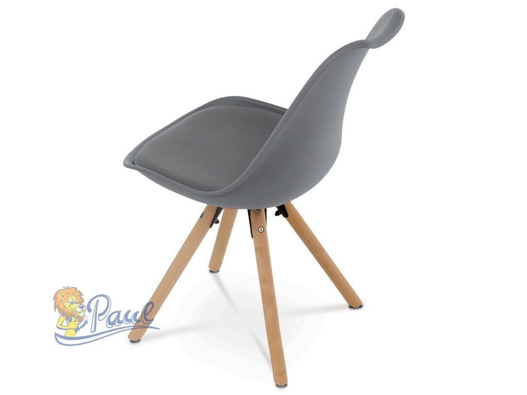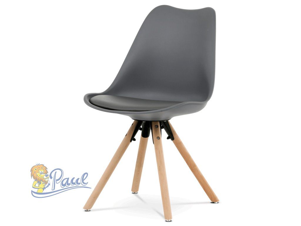Jídelní židle, šedá plastová skořepina, sedák ekokůže, nohy masiv přírodní buk