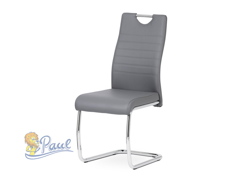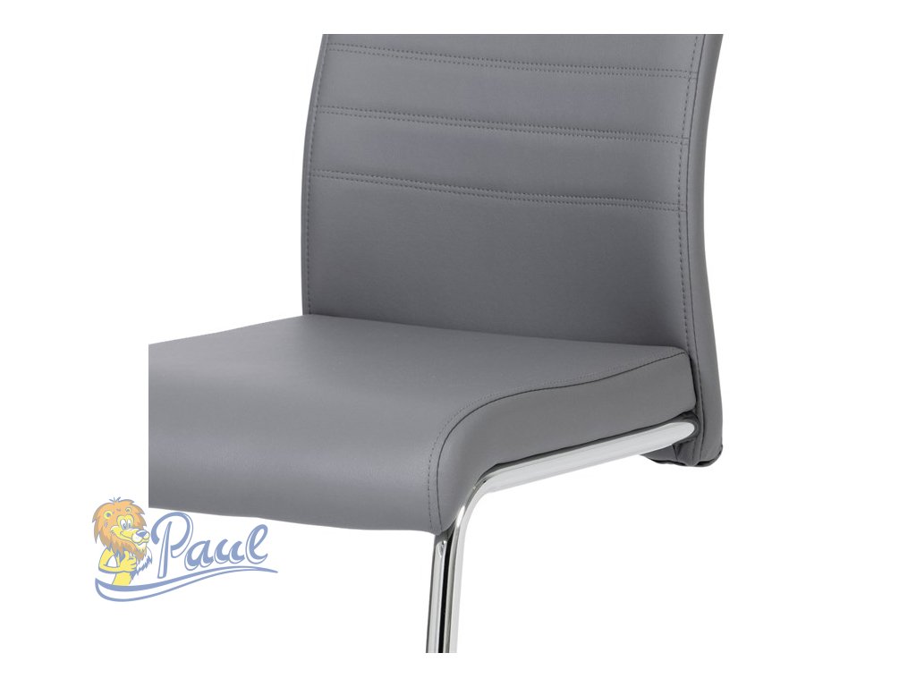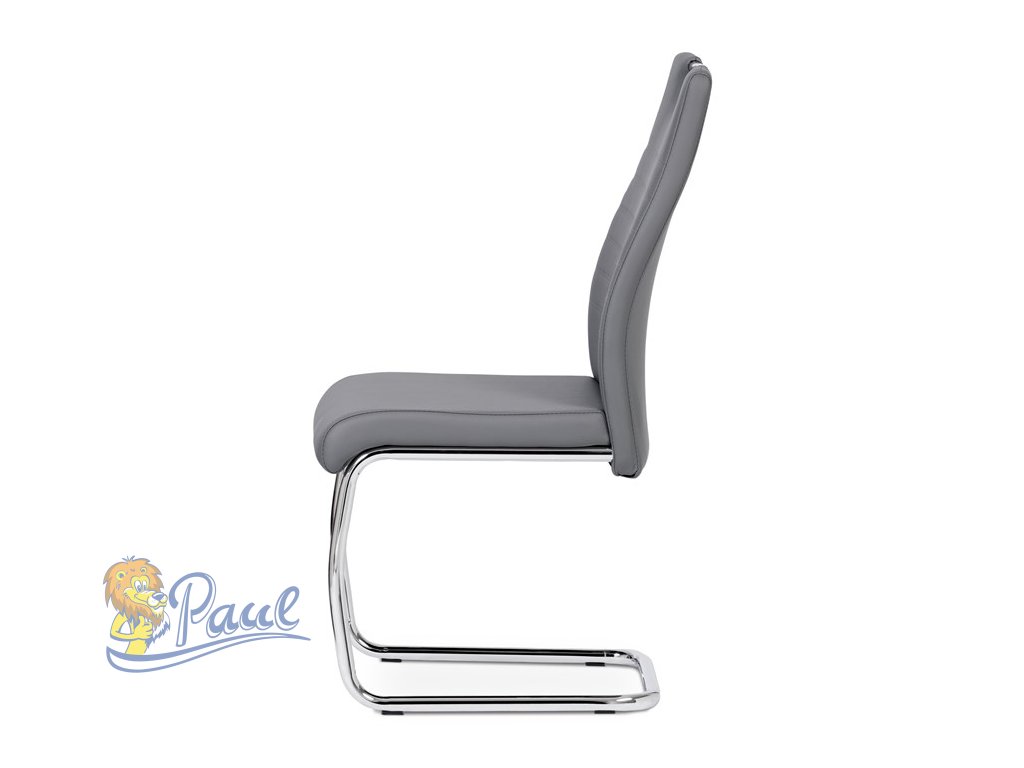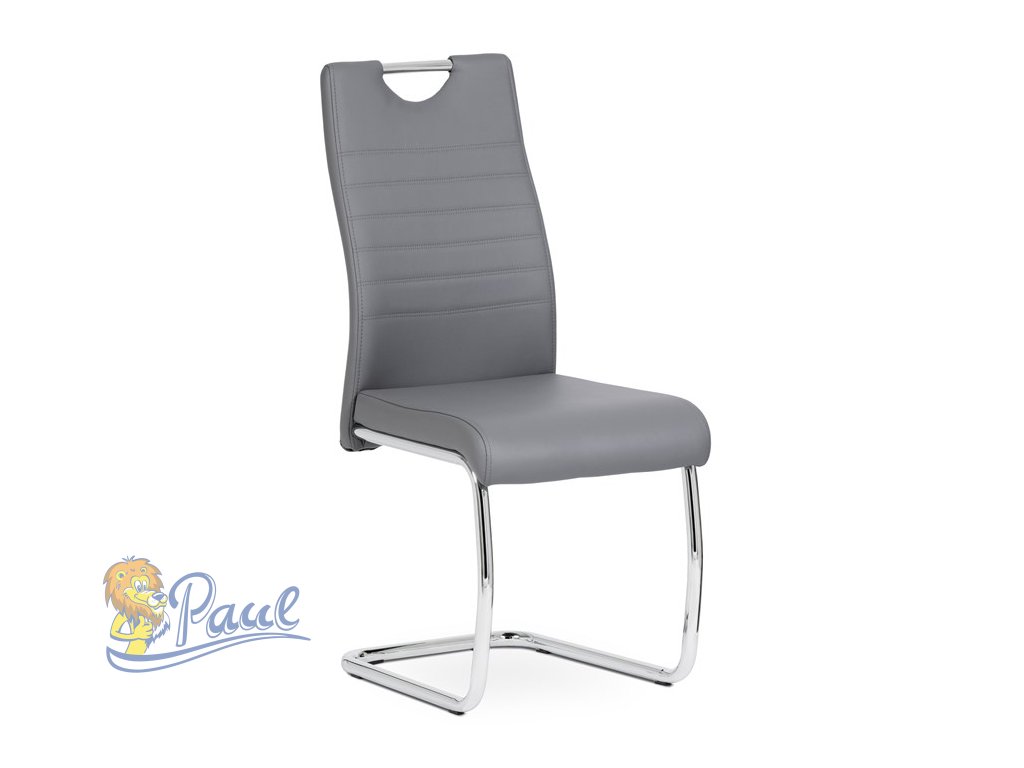 Jídelní židle s označením DCL-418 GREY kombinuje moderní design s pohodlným sezením díky potahu z šedé ekokůže, která se snadno udržuje a nabízí kvalitní zpracování. Pevná kovová podnož v chromovaném provedení je vybavena pohupovým mechanismem, který přispívá k příjemnému posedění a mírné flexibilitě sedáku. Ergonomicky tvarované opěradlo s horizontálním prošitím zajišťuje oporu zad a komfort během delšího sezení. Židle nemá područky, což umožňuje snadné zasunutí pod stůl a úsporu místa v jídelně. Celková stabilita a nosnost odpovídají standardům pro běžné domácí použití.Doplňkové parametry