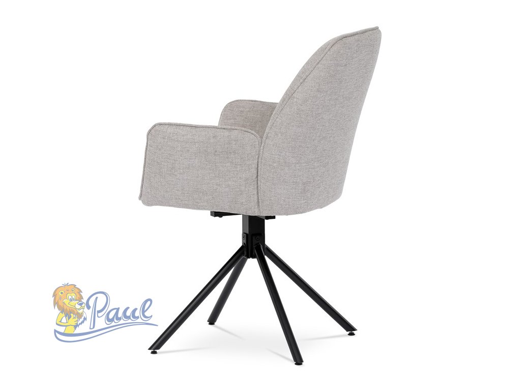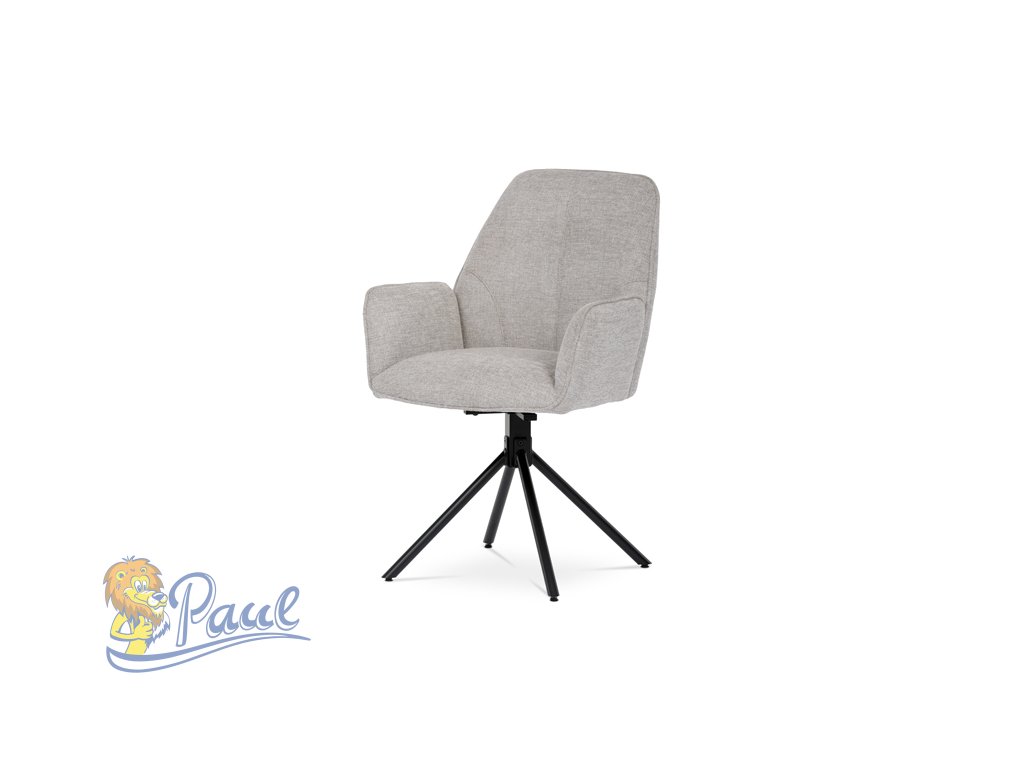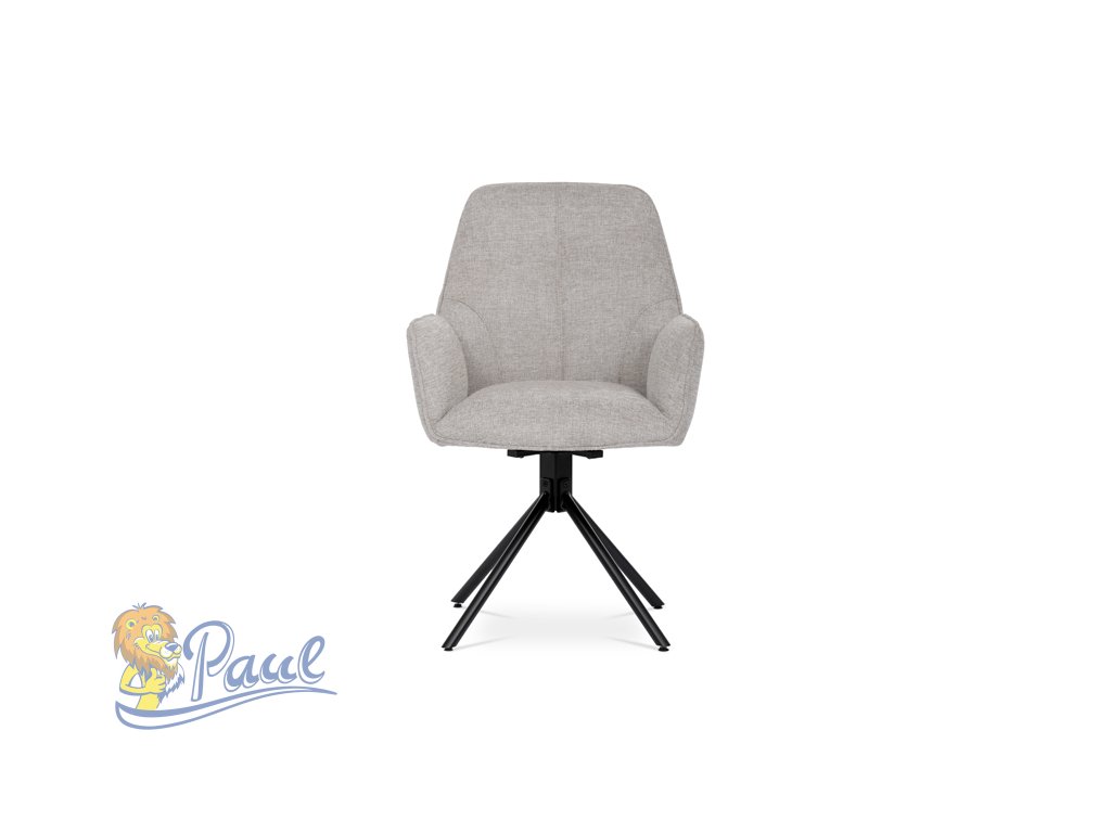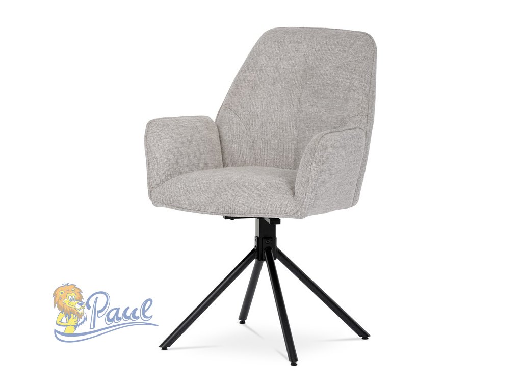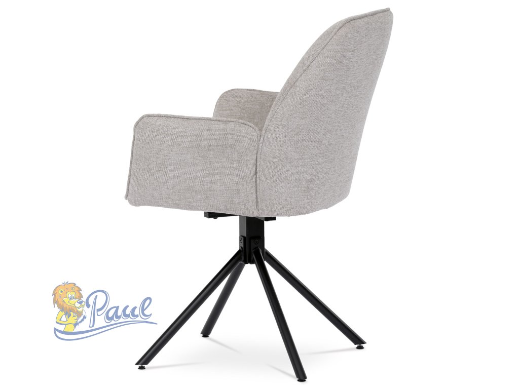 Jídelní židle v krémové látce s područkami, otočná s vratným mechanismem - funkce reset, kovové podnoží v černé barvě