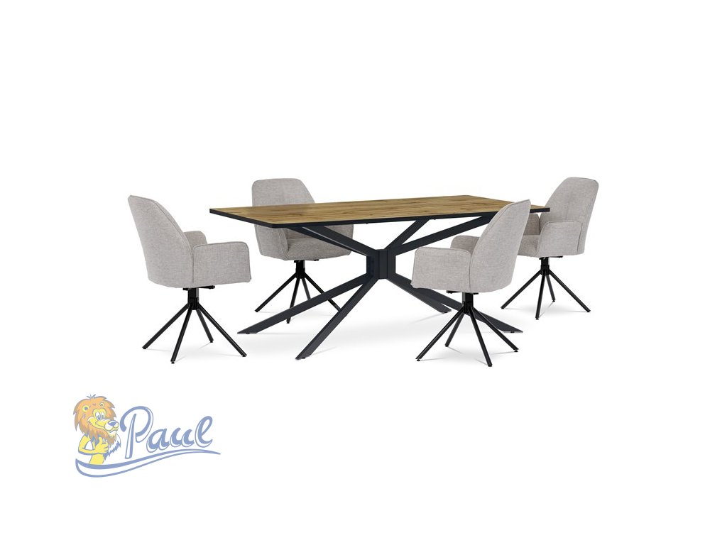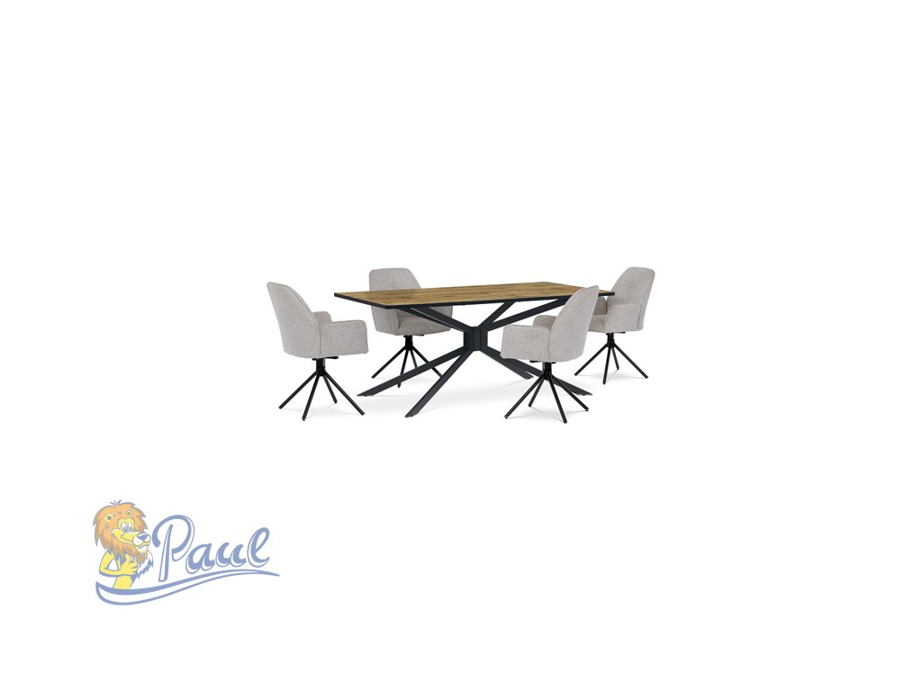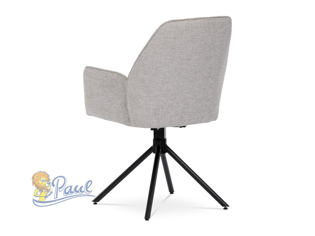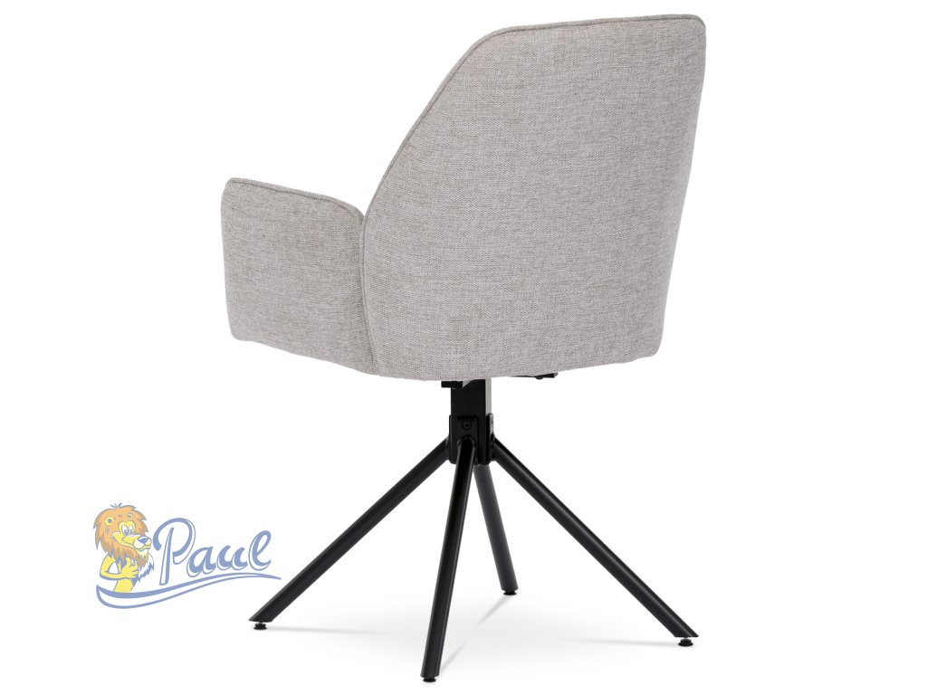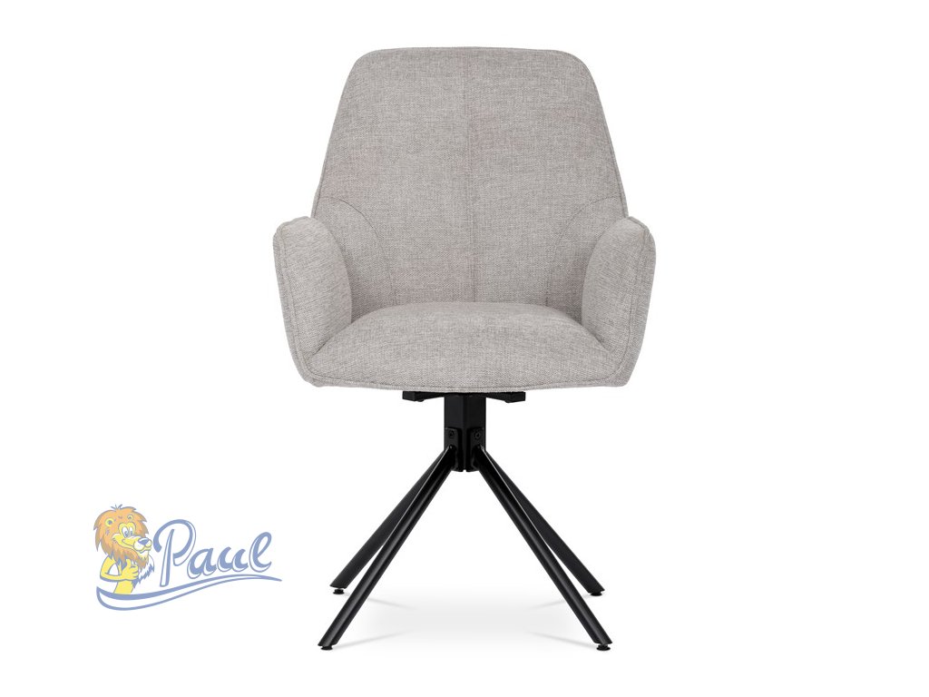Jídelní židle v krémové látce s područkami, otočná s vratným mechanismem - funkce reset, kovové podnoží v černé barvě