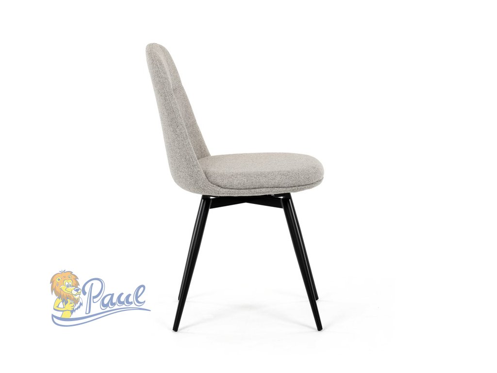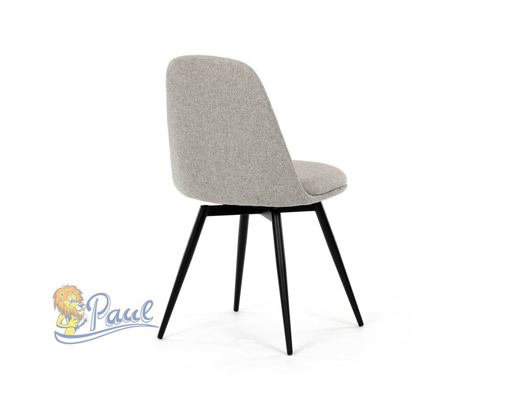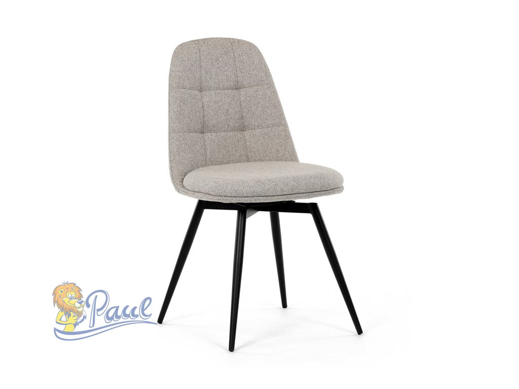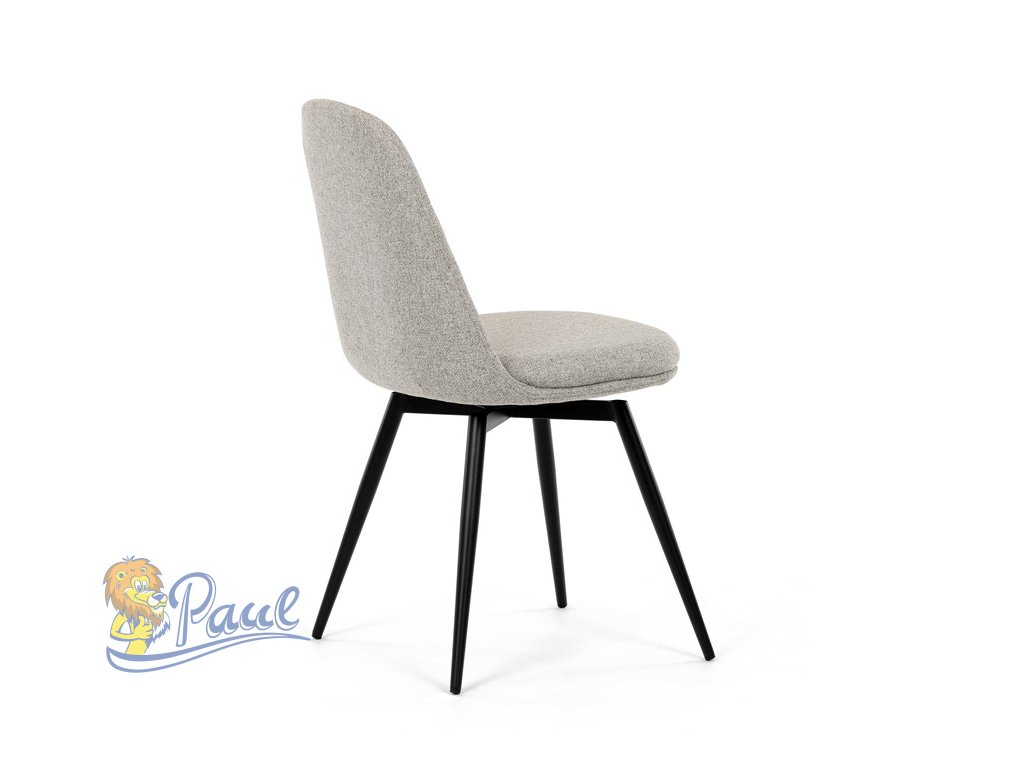 Židle jídelní, krémová látka, 360° otočný mechanismus, černý matný lak, kovové nohy