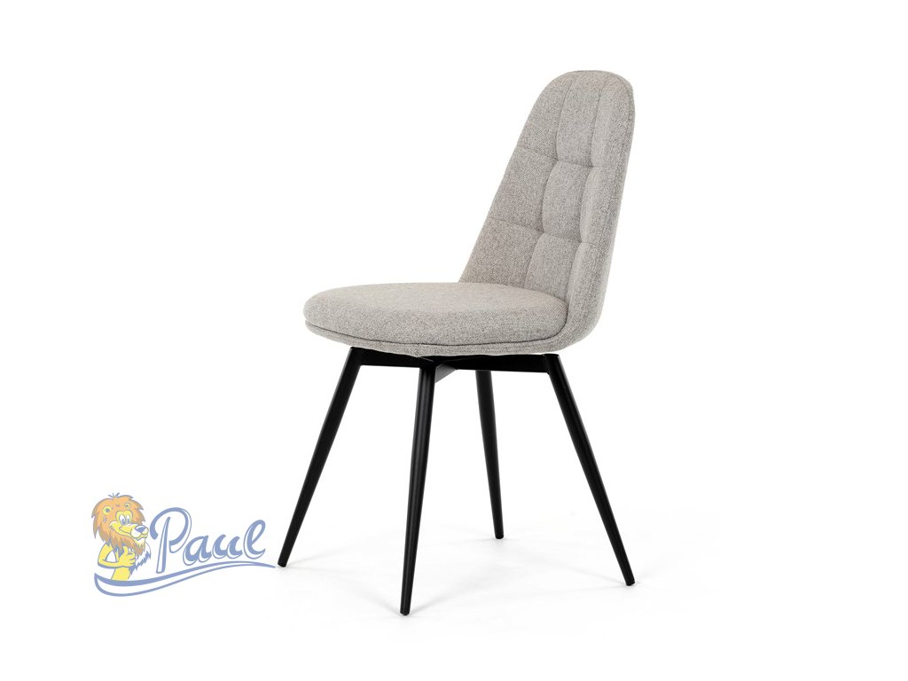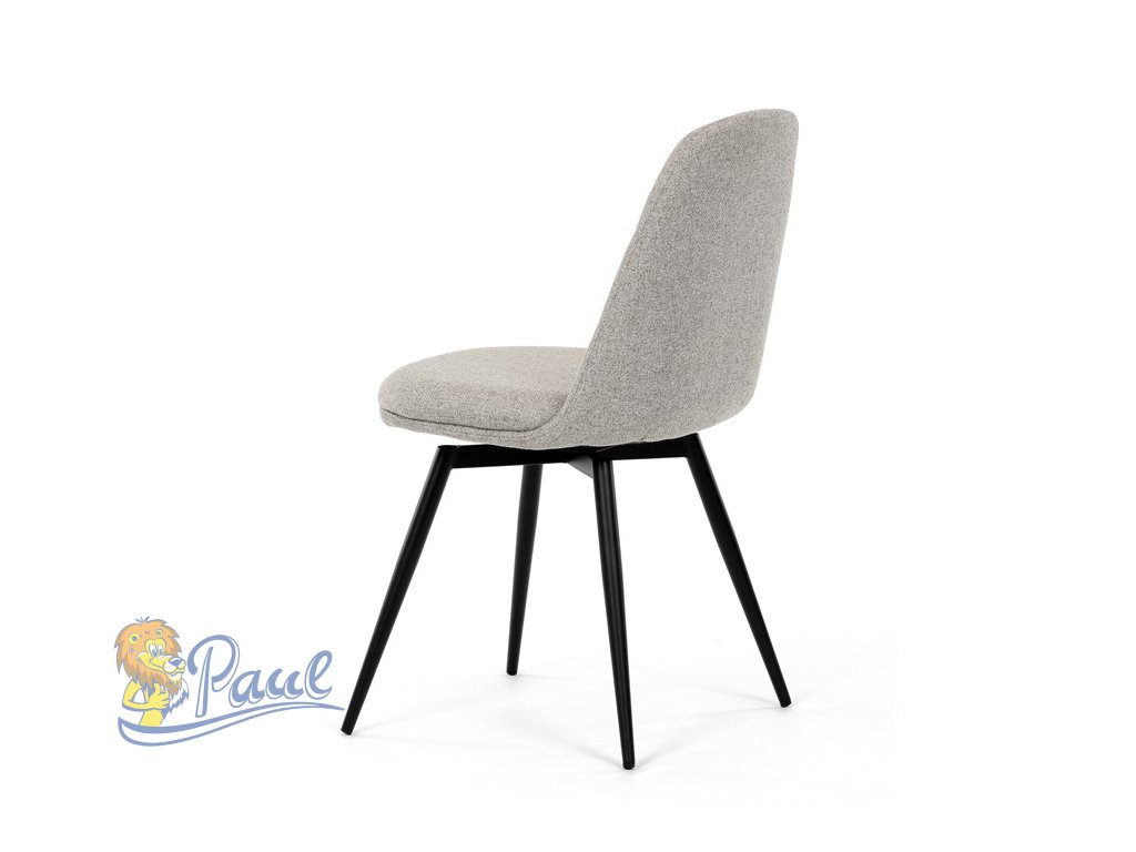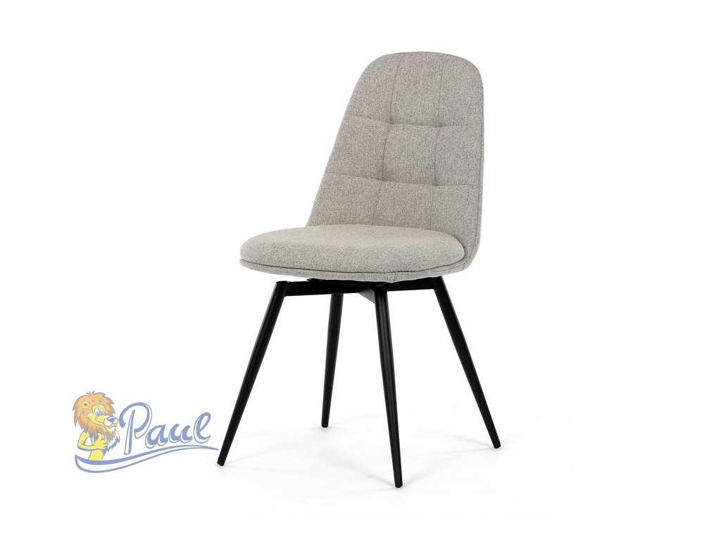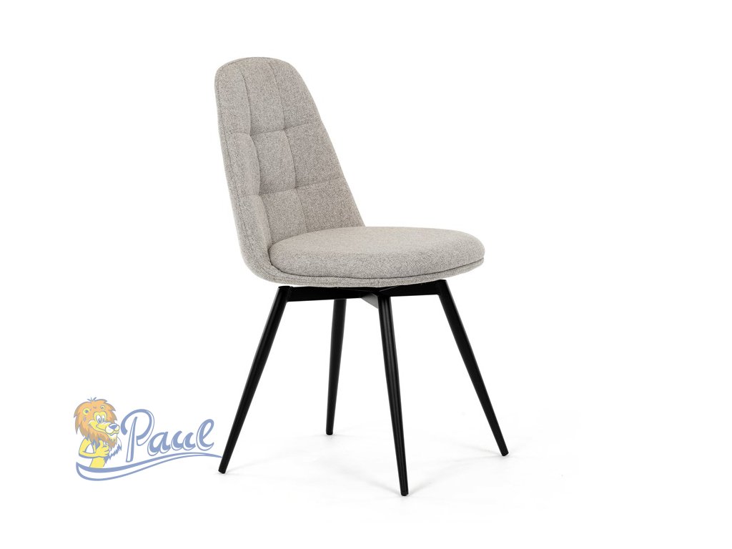 Židle jídelní, krémová látka, 360° otočný mechanismus, černý matný lak, kovové nohy
