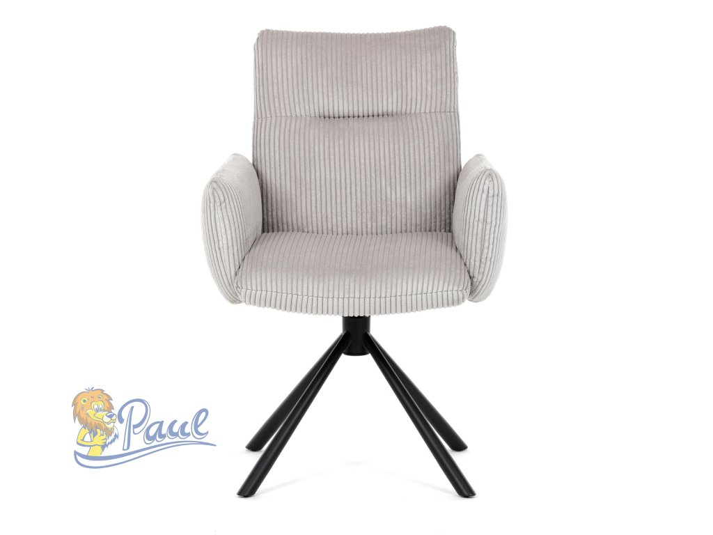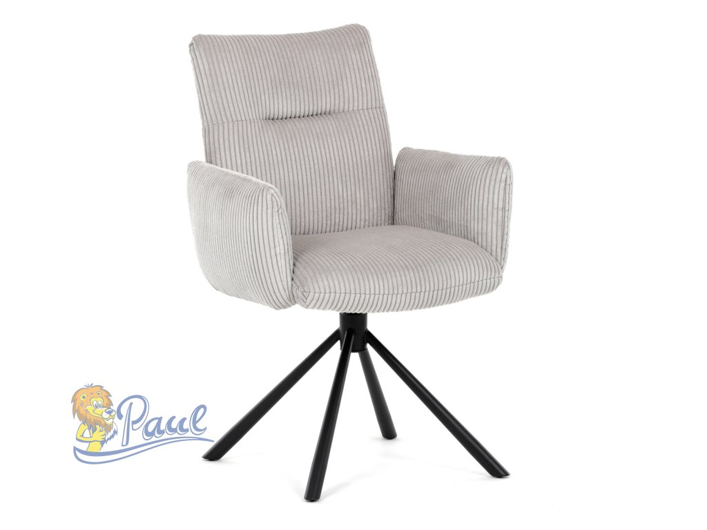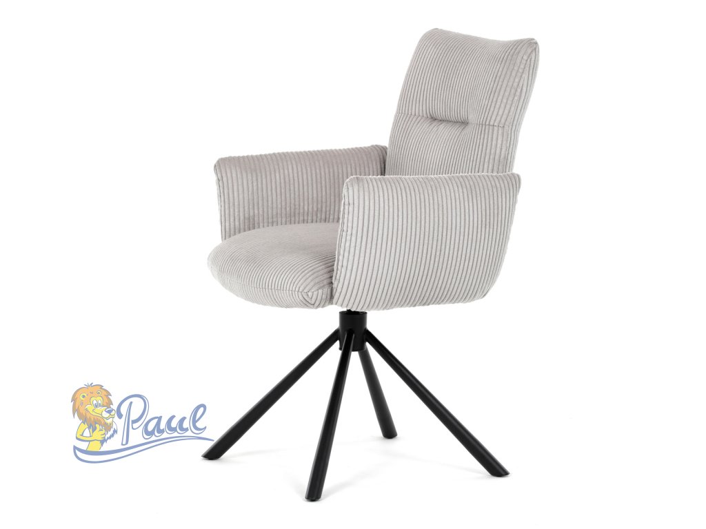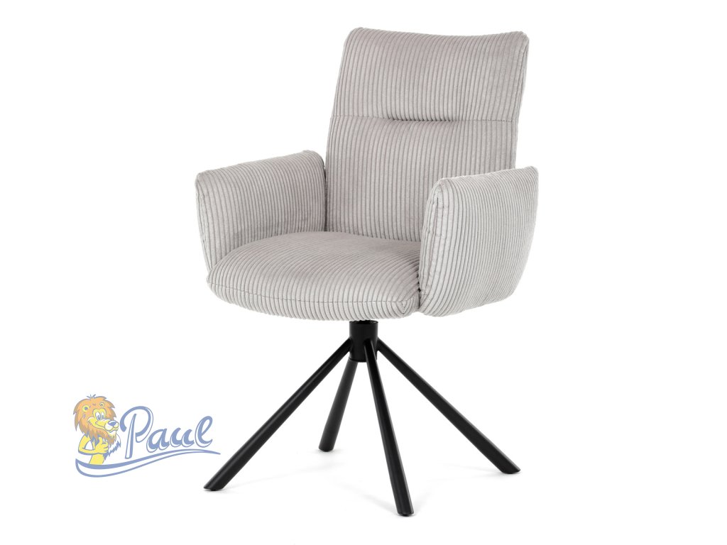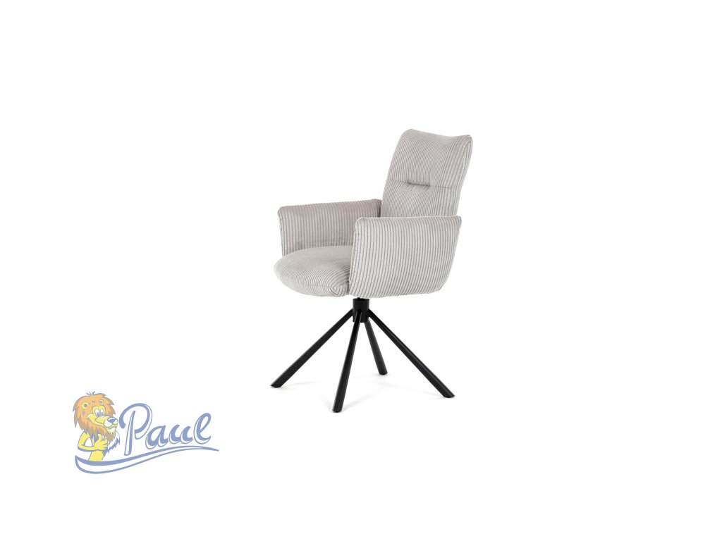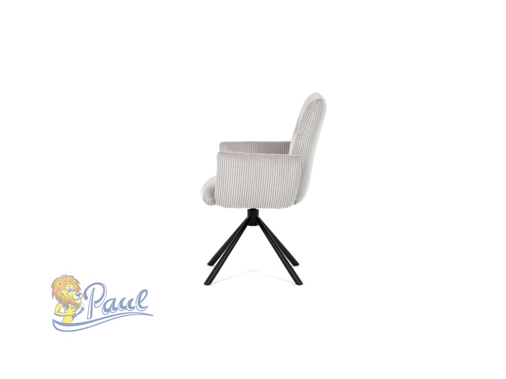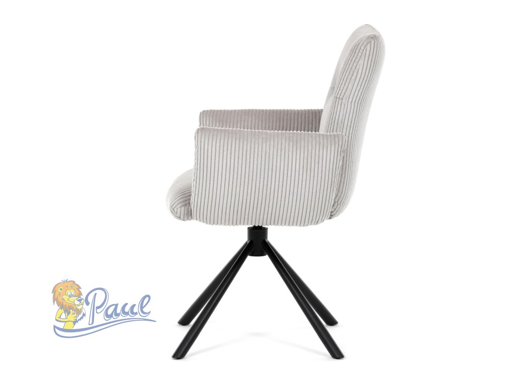 Židle jídelní, krémová manšestrová látka, 360° vratný mechanismus, černý kov