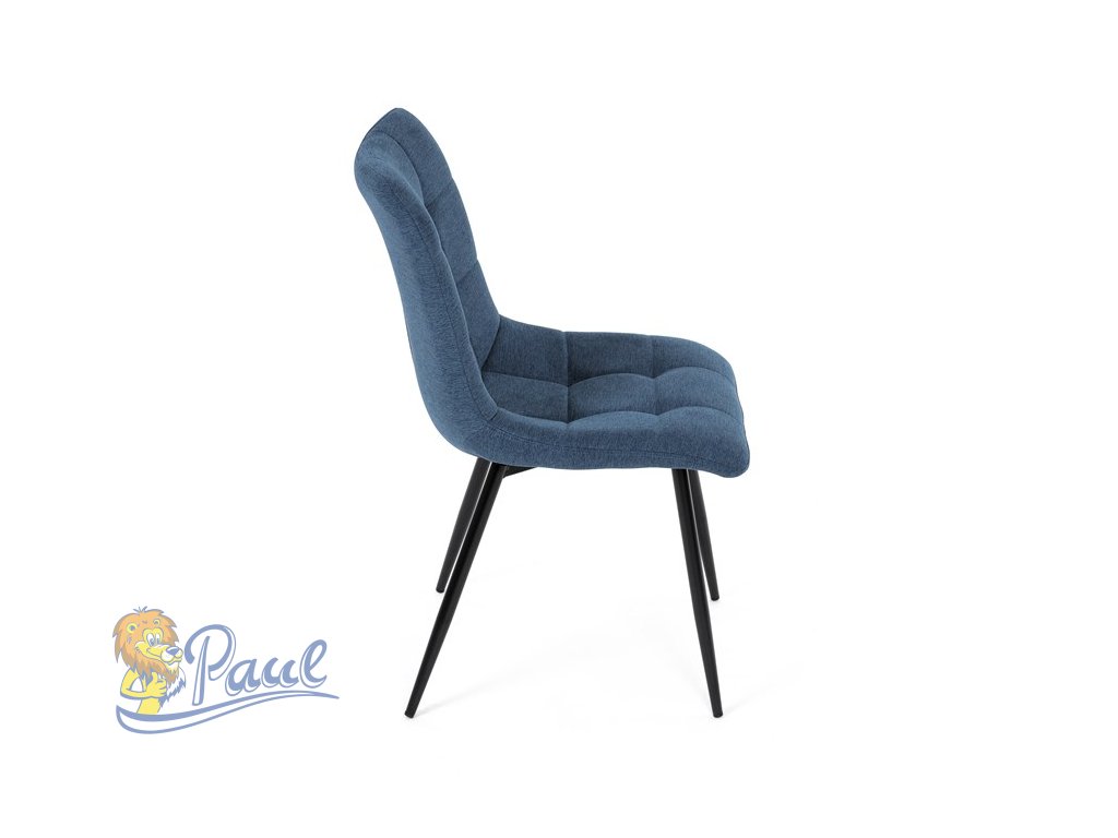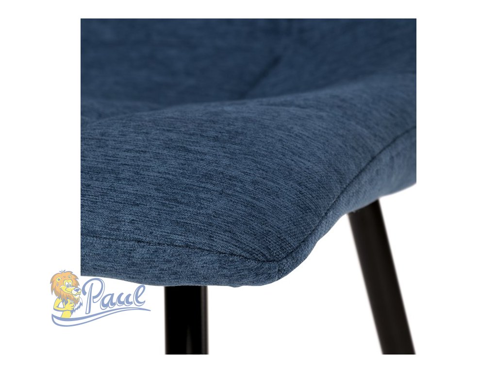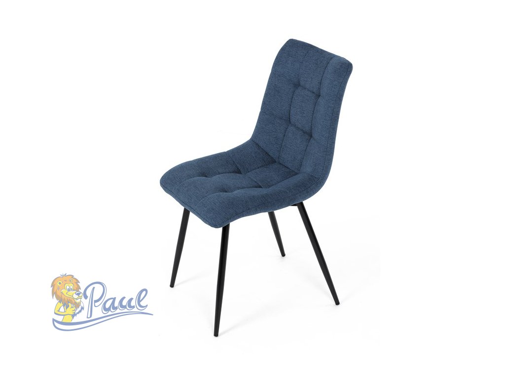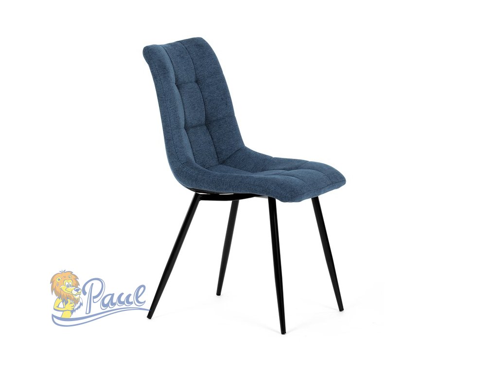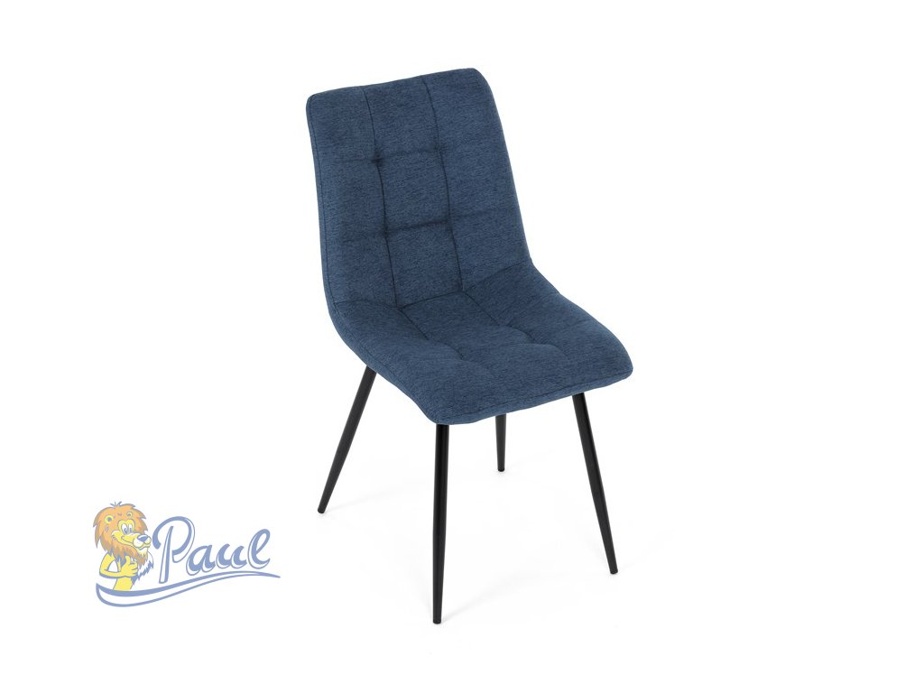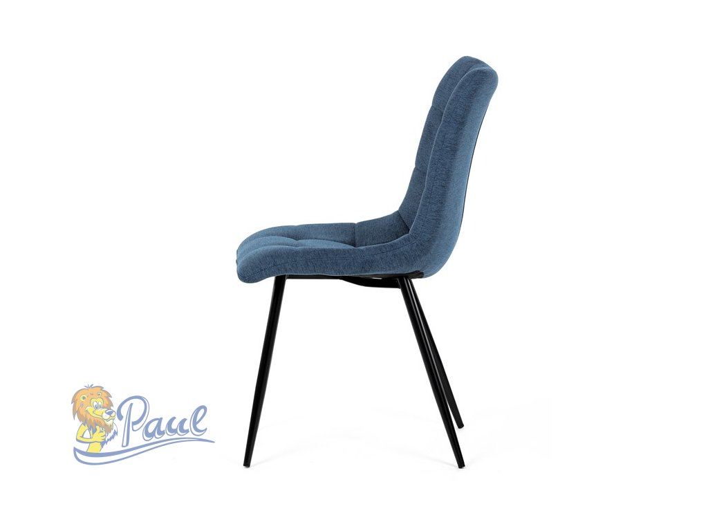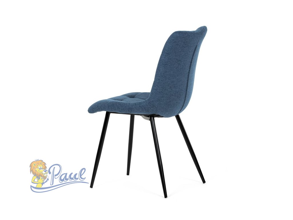 Židle jídelní, modrá látka, černé kovové nohy