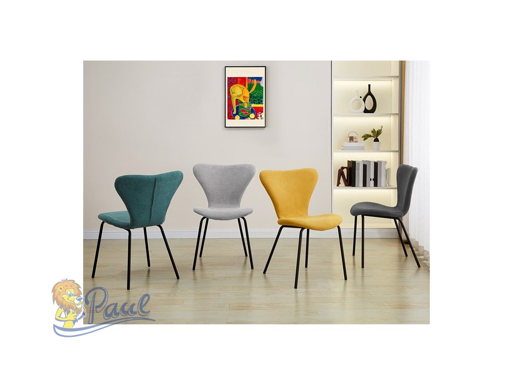 Židle jídelní, modrá látka, nohy černý kov