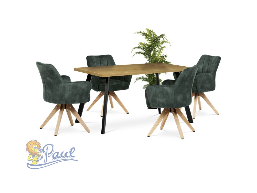 Elegantní čalouněná židle od značky Autronic zaujme na první pohled svou zelenou sametovou látkou, která dodává interiéru moderní šmrnc. Masivní nohy v přírodní barvě vytvářejí stabilní základ a skvěle harmonizují s celkovým designem. Komfortní područky zajistí pohodlí při sezení. Navíc, integrovaný 360° otočný mechanismus poskytuje maximální flexibilitu a pohybový komfort. Ideální volba pro stylové i funkční bydlení.Doplňkové parametry