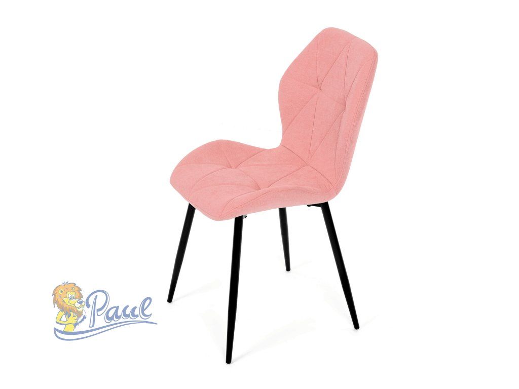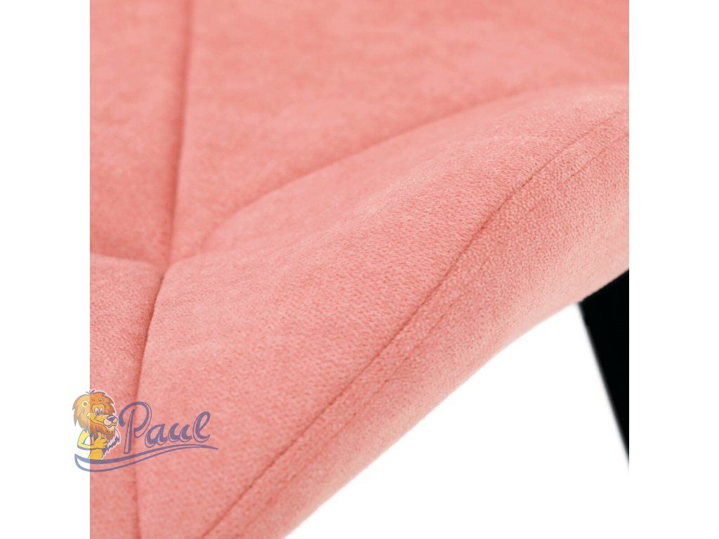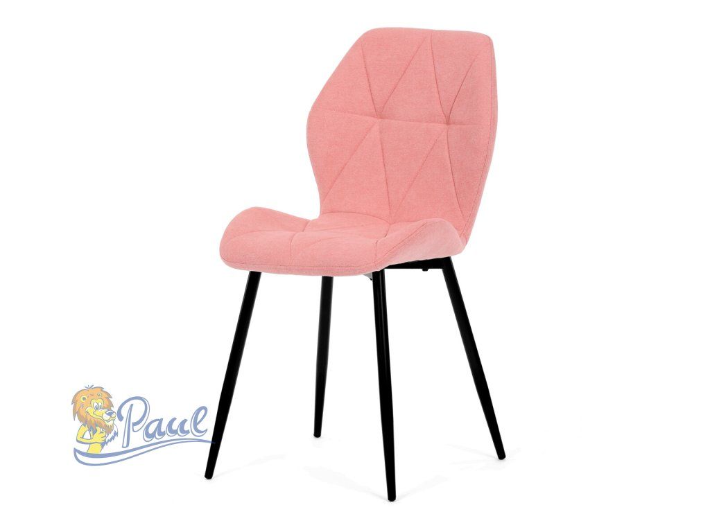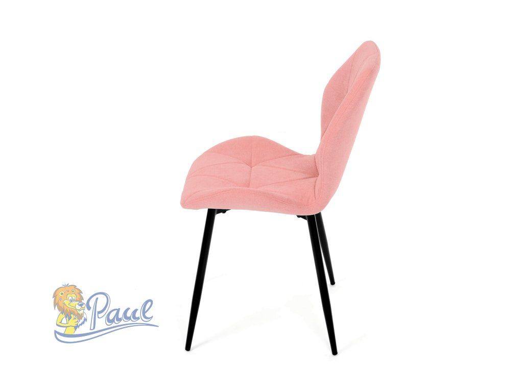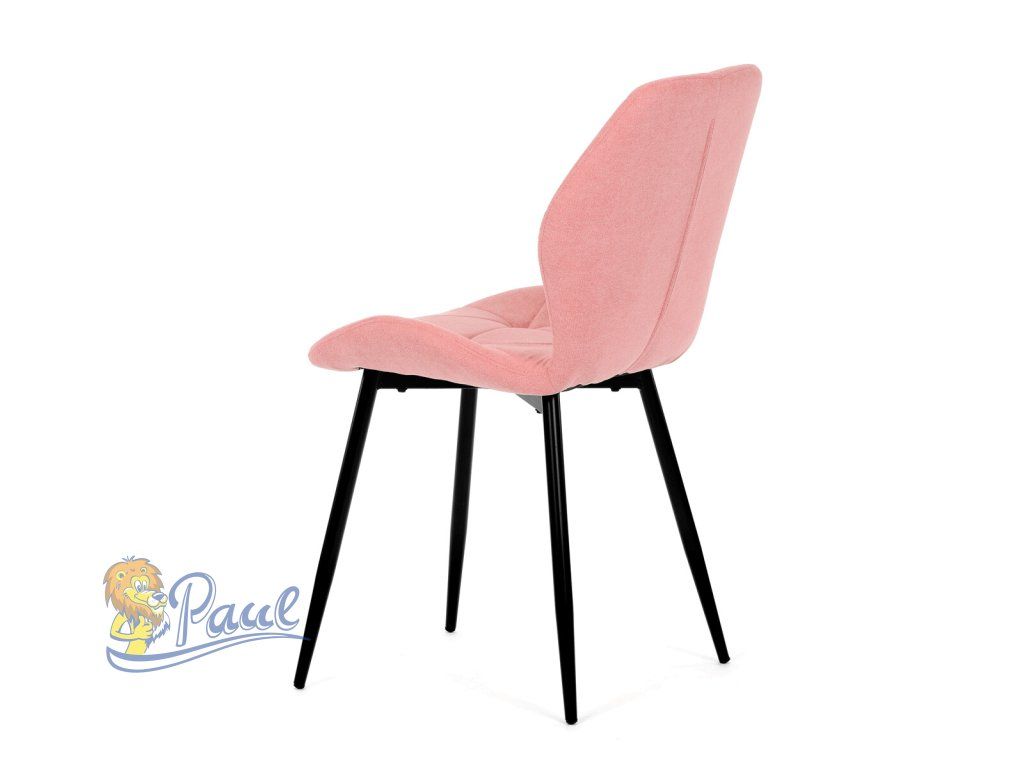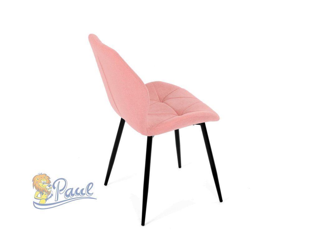 Tato moderní jídelní židle v jemné růžové barvě je skvělým doplňkem každého interiéru. Díky svému elegantnímu designu a pohodlnému čalounění je ideální volbou pro Vaši jídelnu, kuchyň nebo pracovní prostor. Židle je čalouněná kvalitní látkou, která je měkká na dotek a zároveň odolná proti opotřebení. Ergonomicky tvarované sedadlo a opěradlo s dekorativním prošíváním poskytují vysoký komfort i při delším sezení. Židle stojí na pevných kovových nohách v černém provedení, které zajišťují stabilitu a dlouhou životnost. Nohy jsou elegantně zkosené, což dodává židli moderní vzhled a zajišťuje pevnou stabilitu.Doplňkové parametry