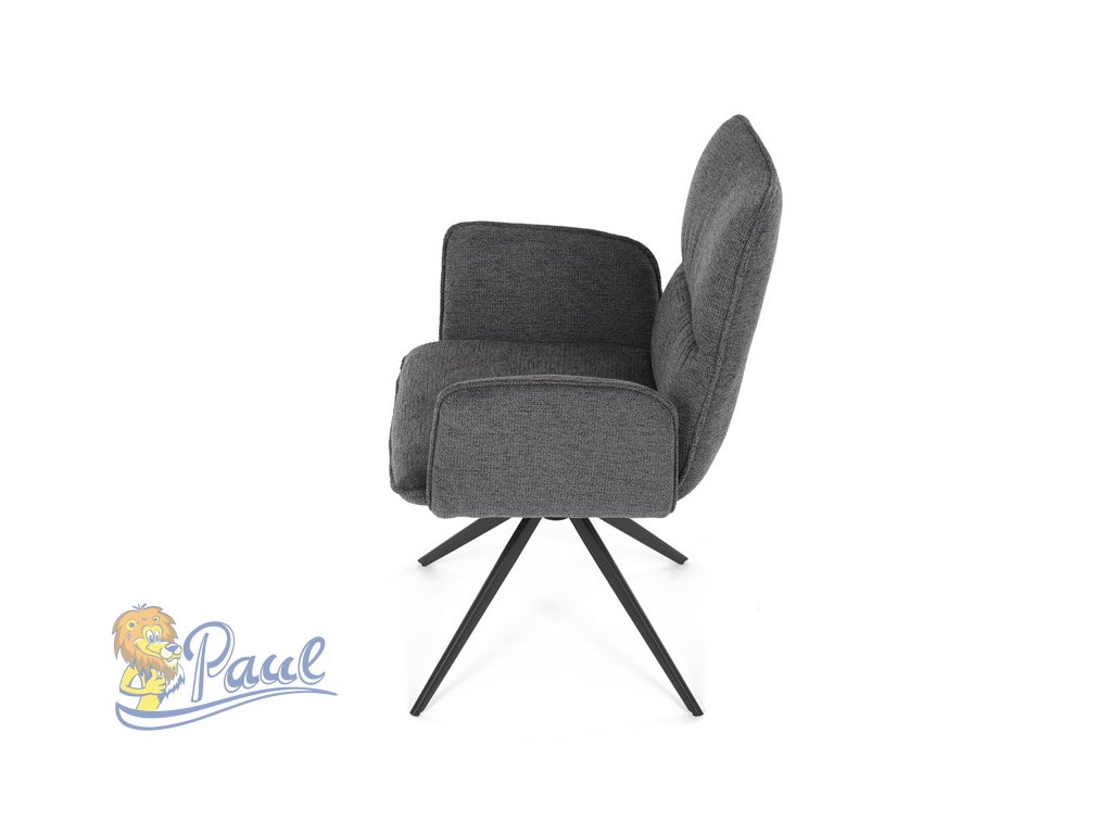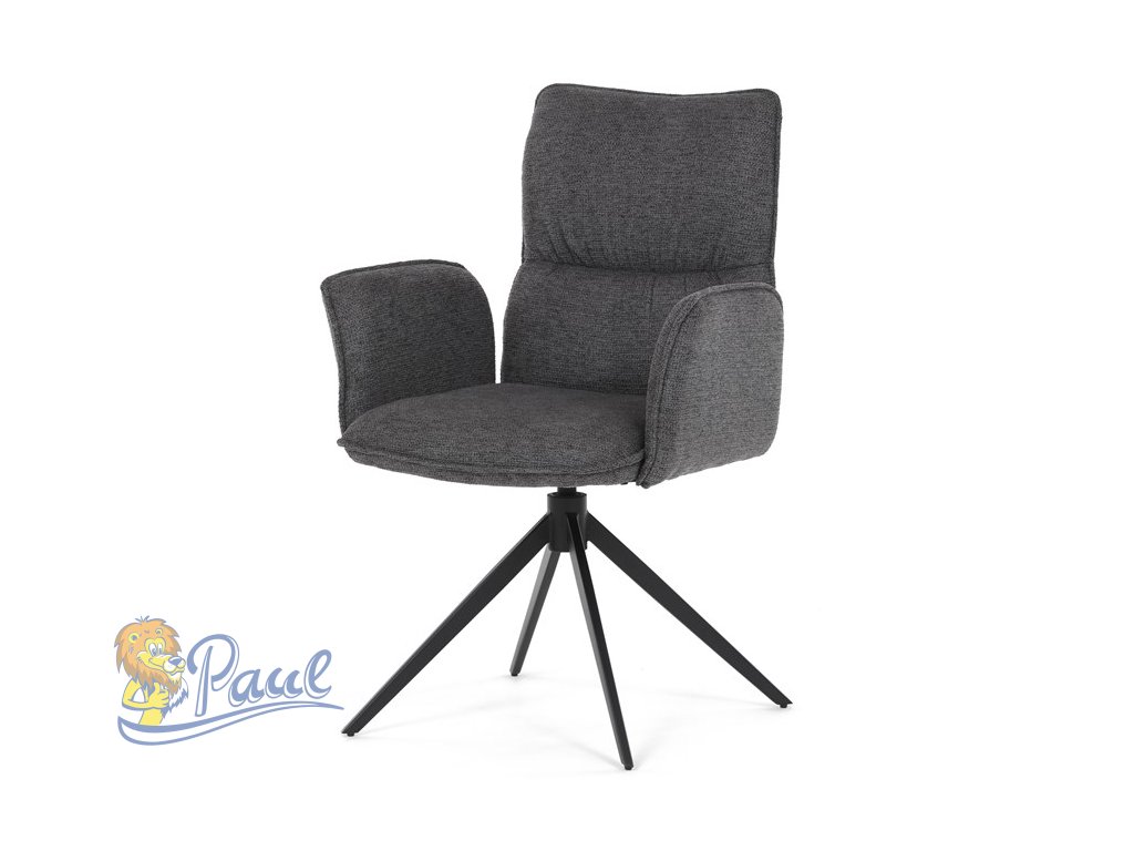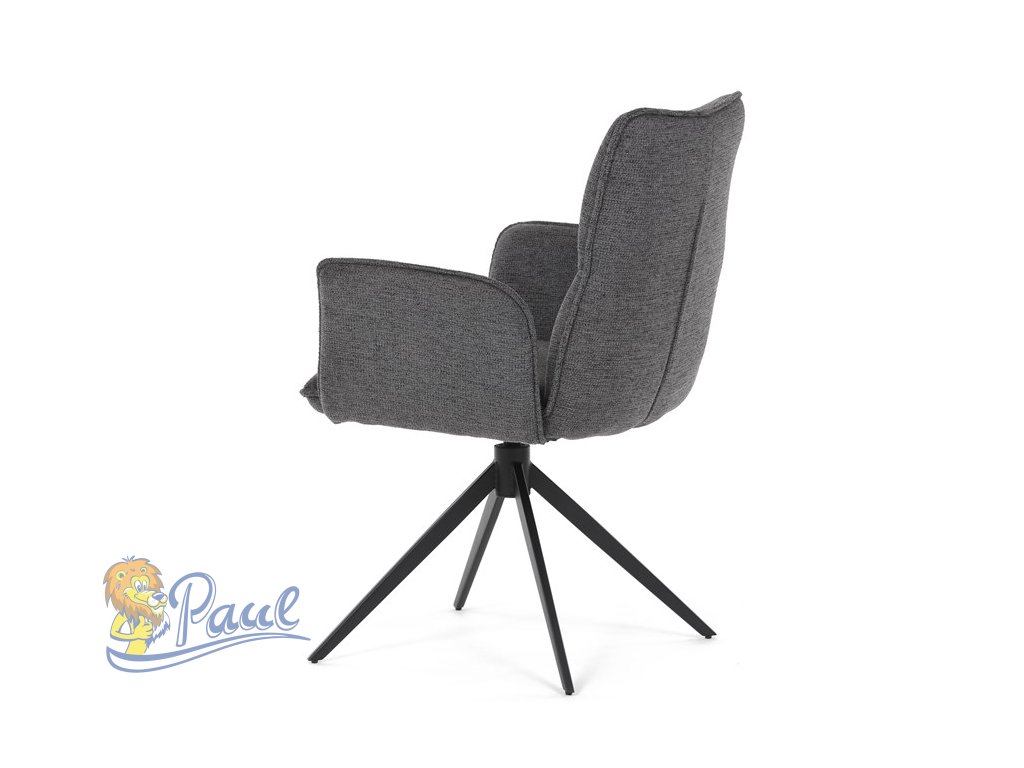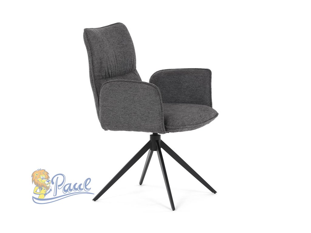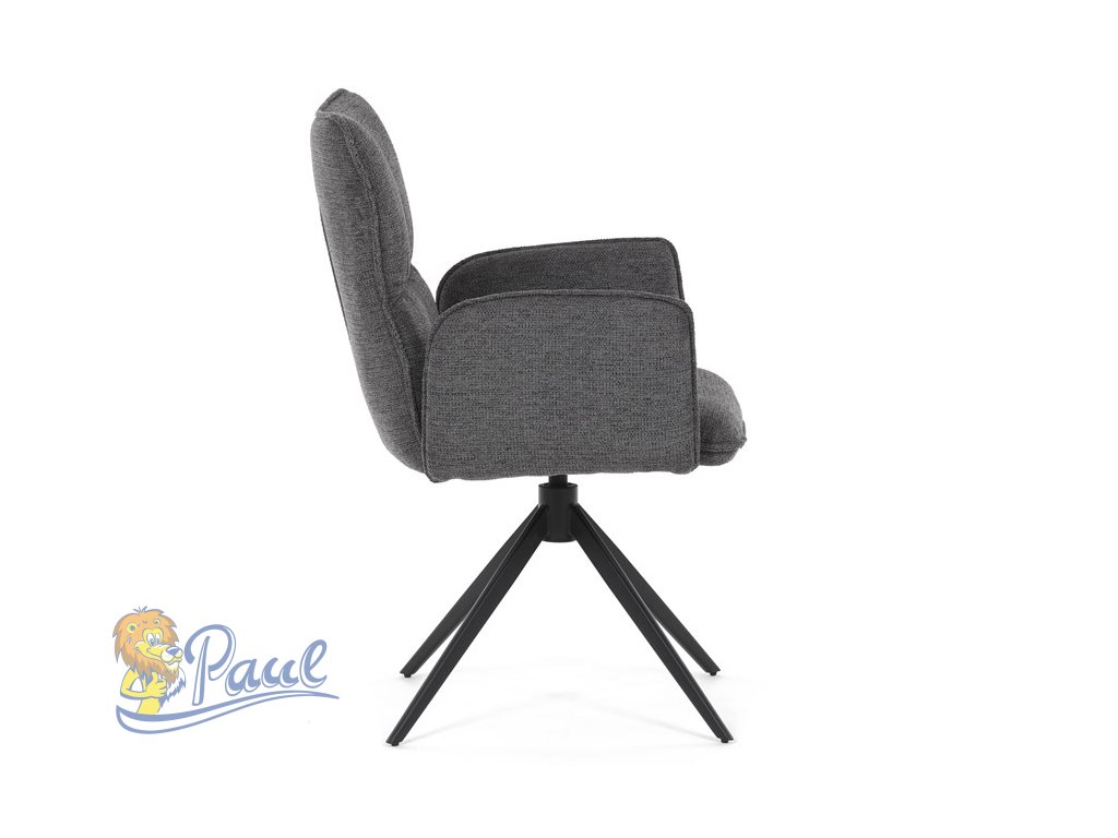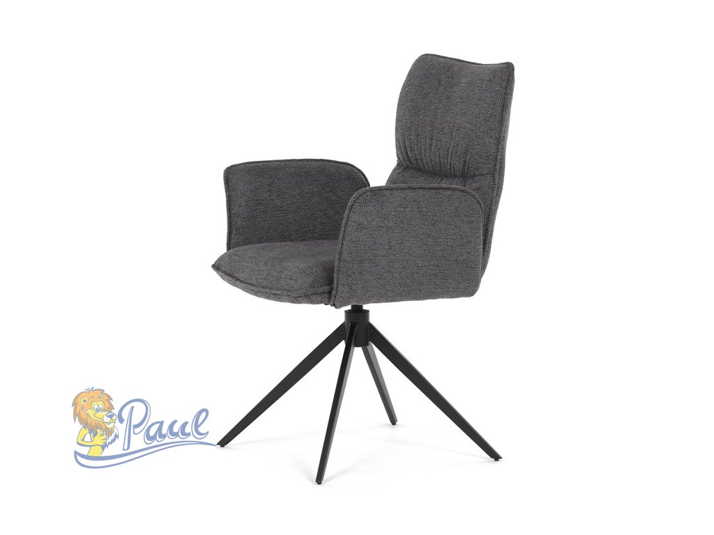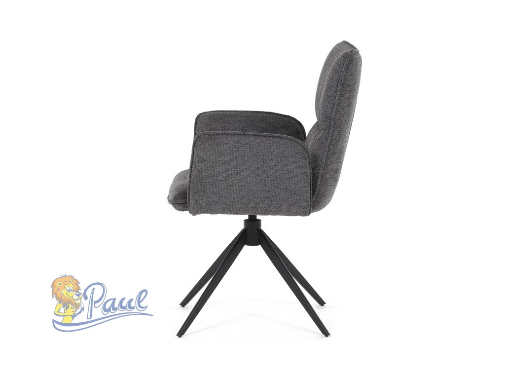 Židle jídelní, šedá látka, 360° vratný mechanismus, černý kov