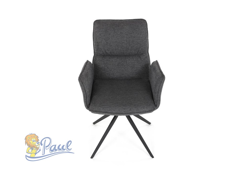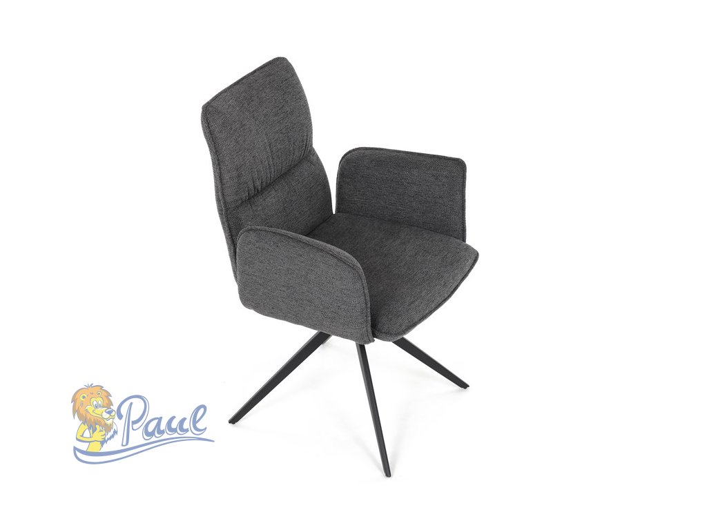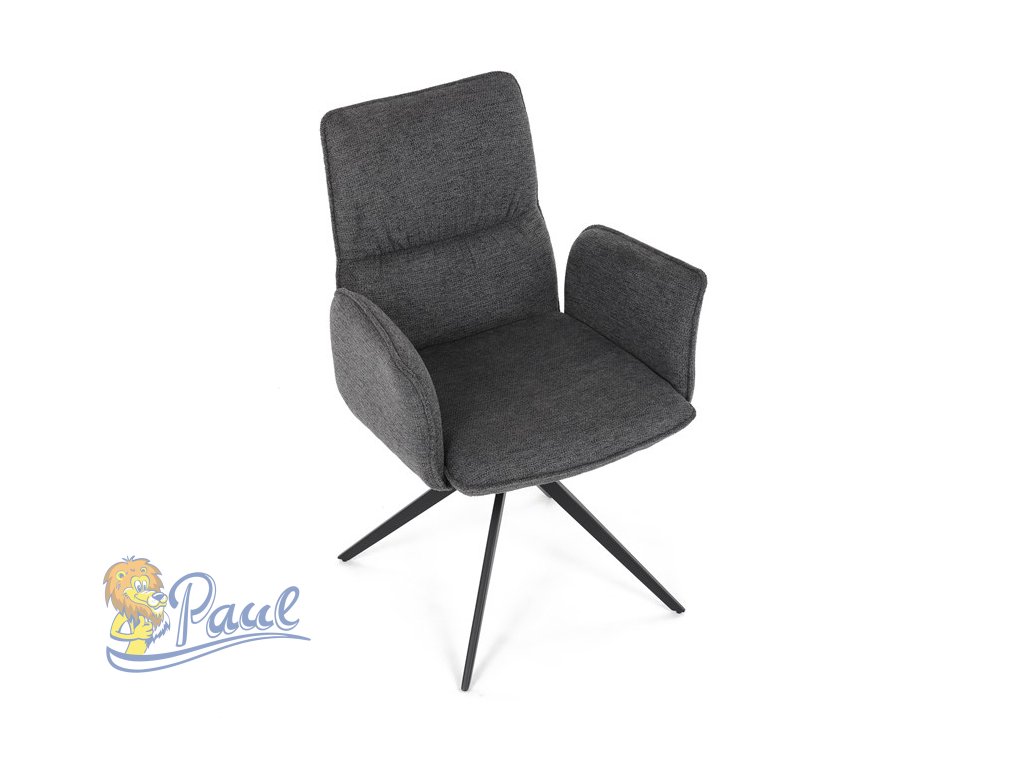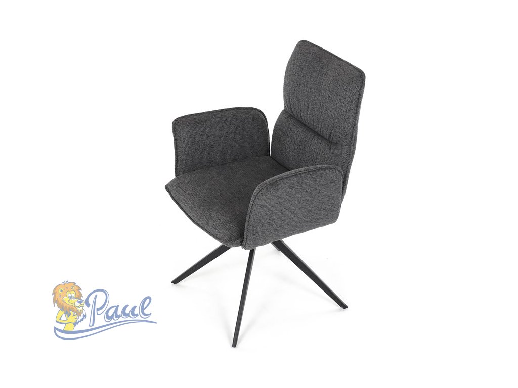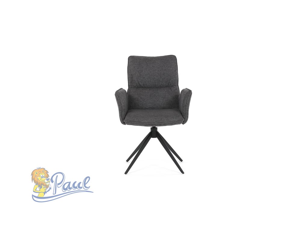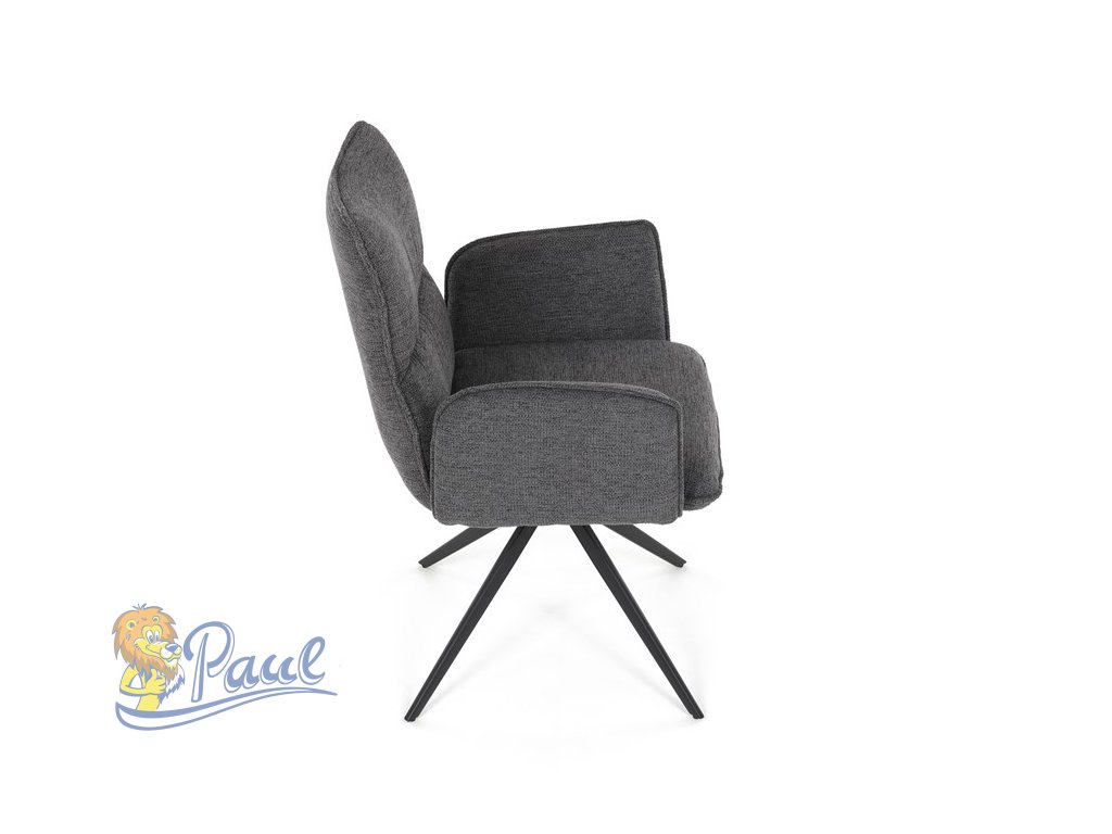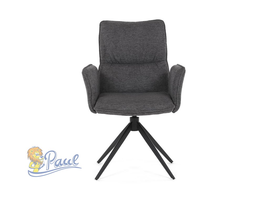 Židle jídelní, šedá látka, 360° vratný mechanismus, černý kov