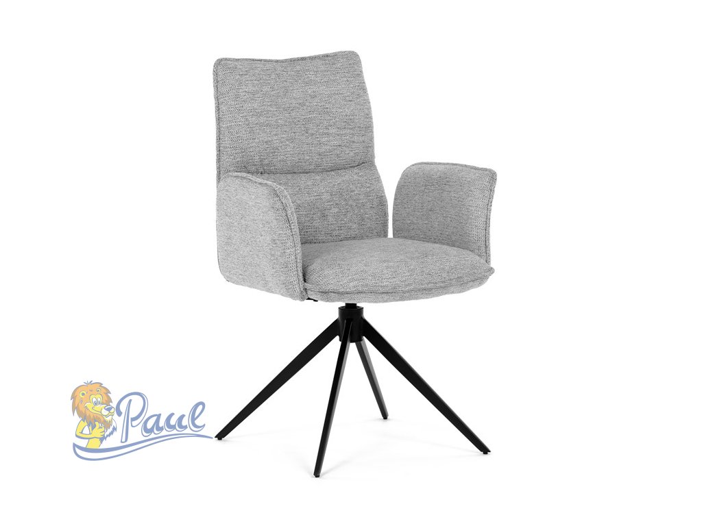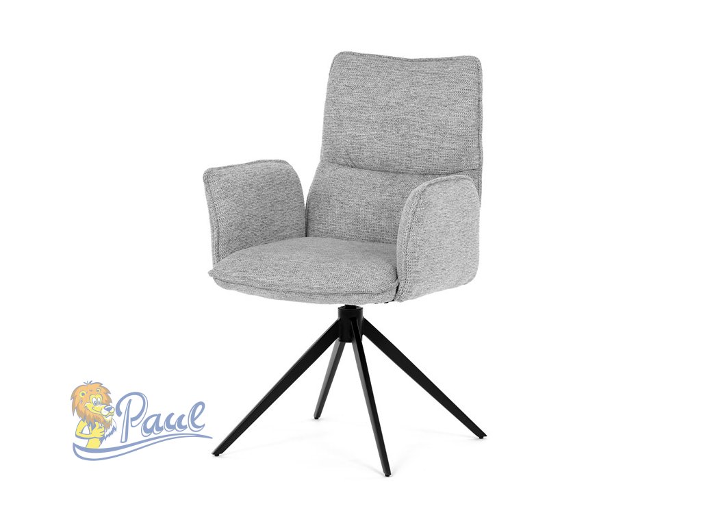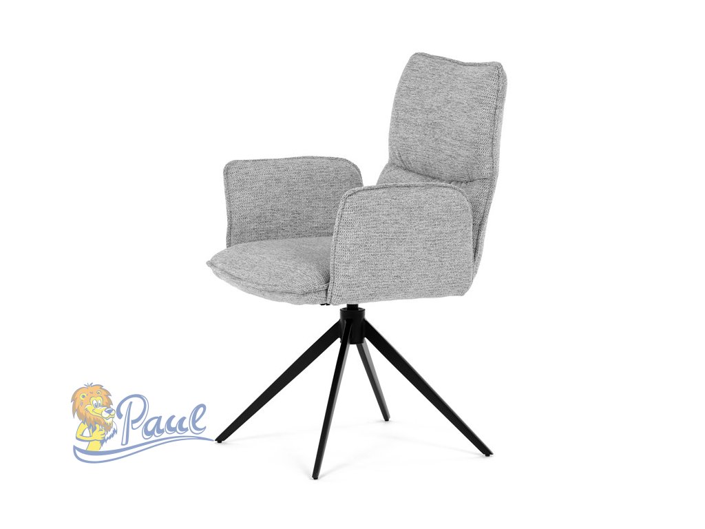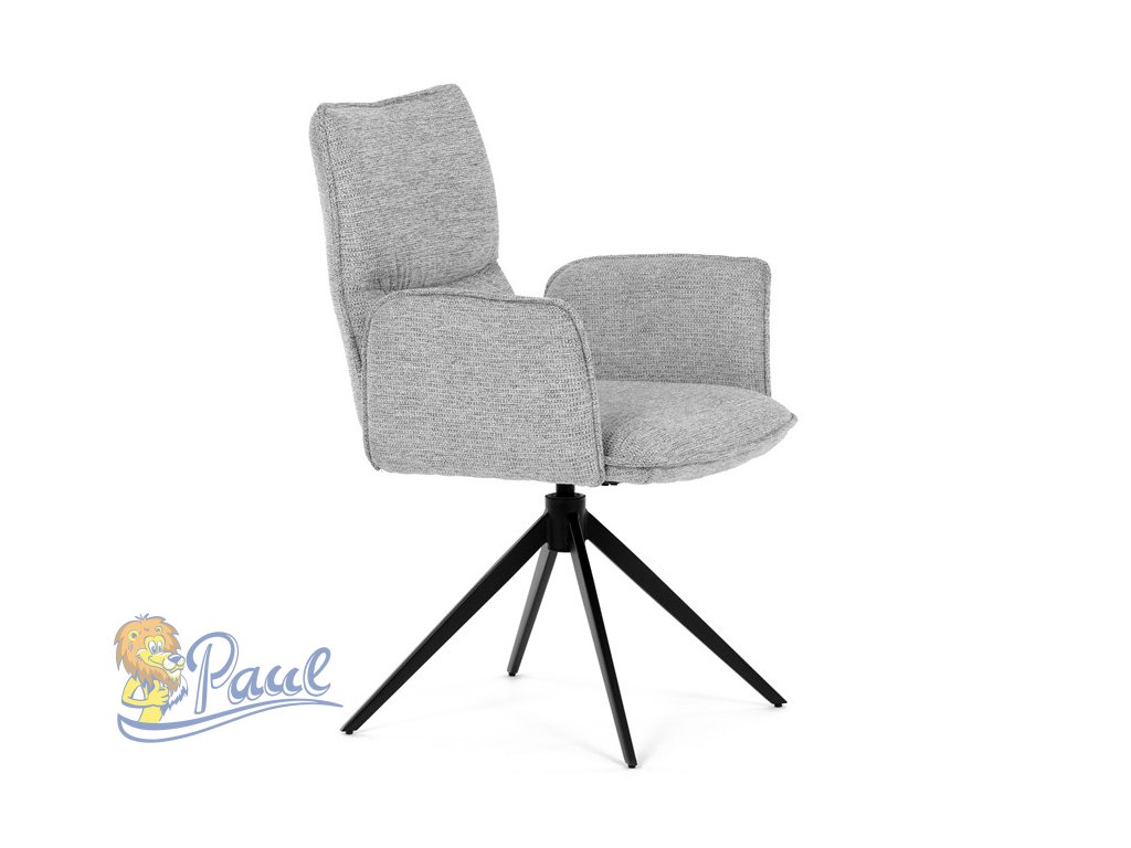 Židle jídelní, šedá látka, 360° vratný mechanismus, černý kov