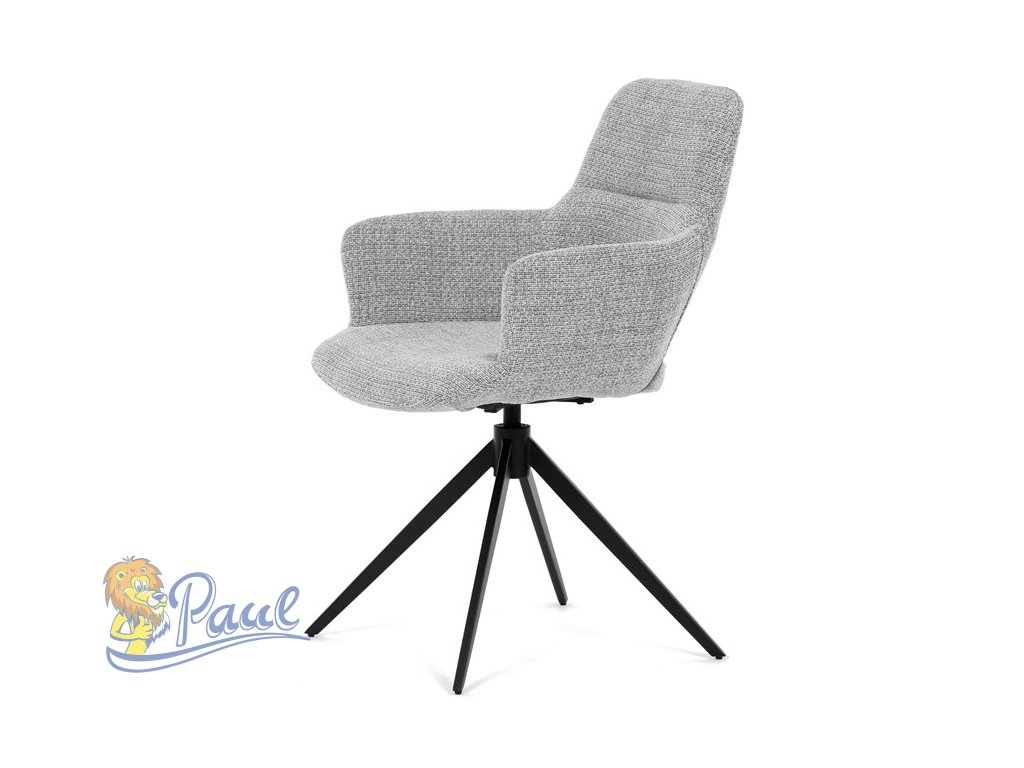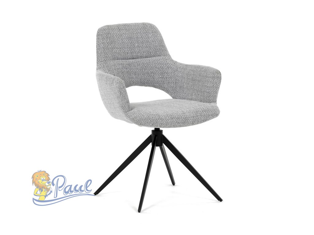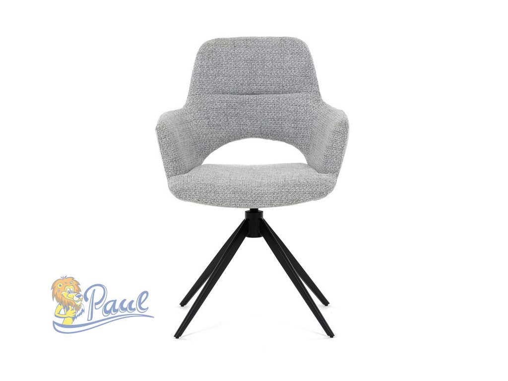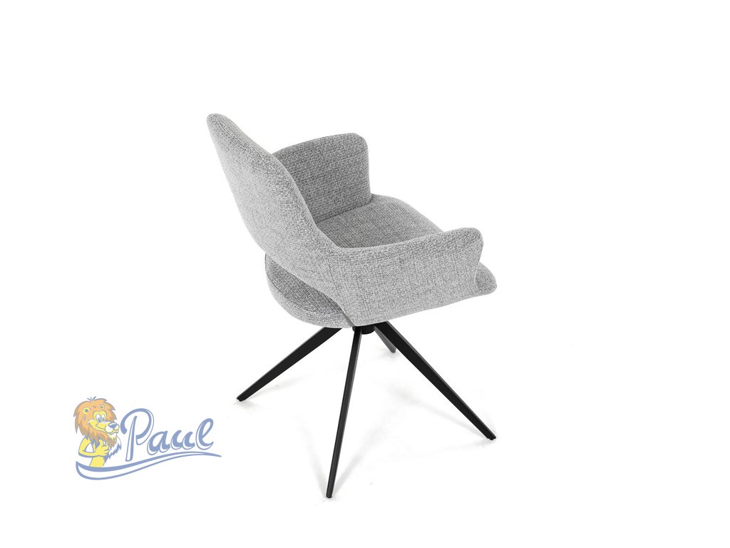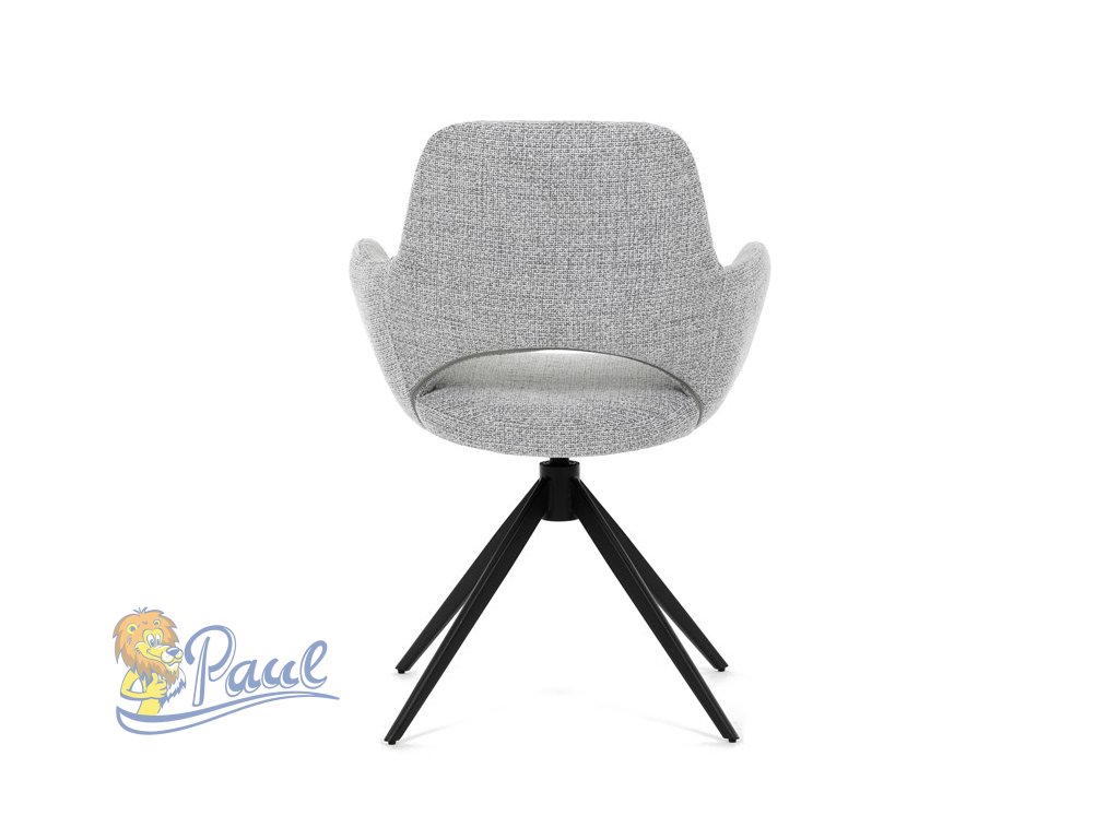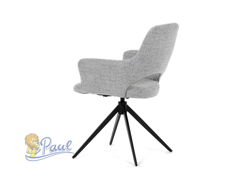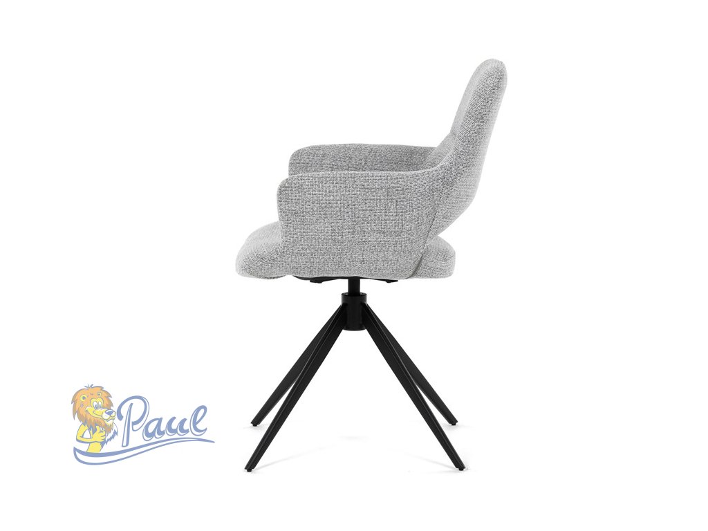 Židle jídelní, šedá látka, 360° vratný mechanismus, černý kov