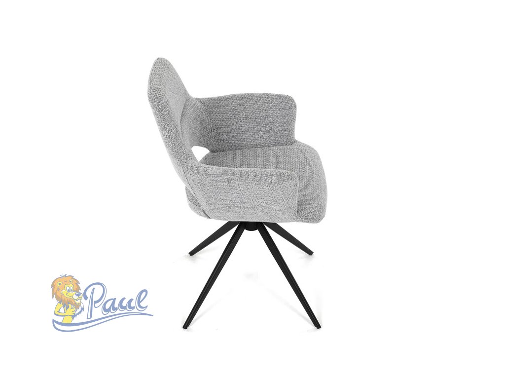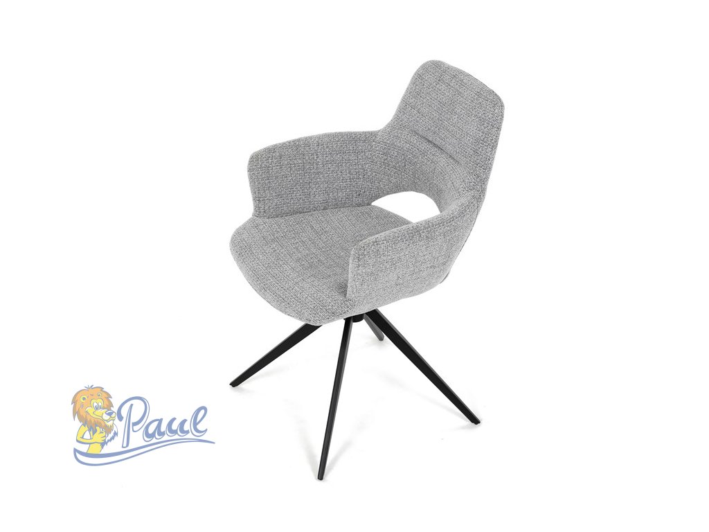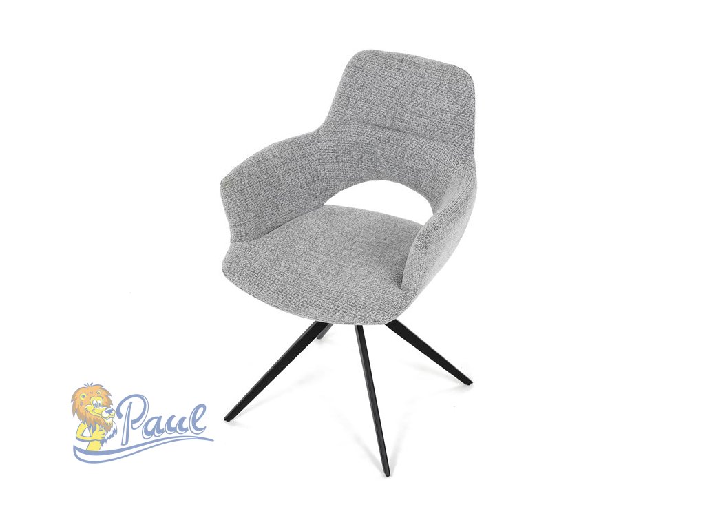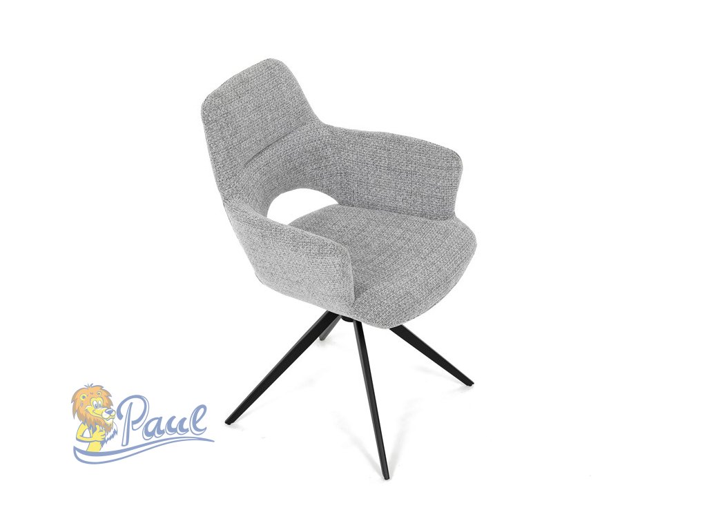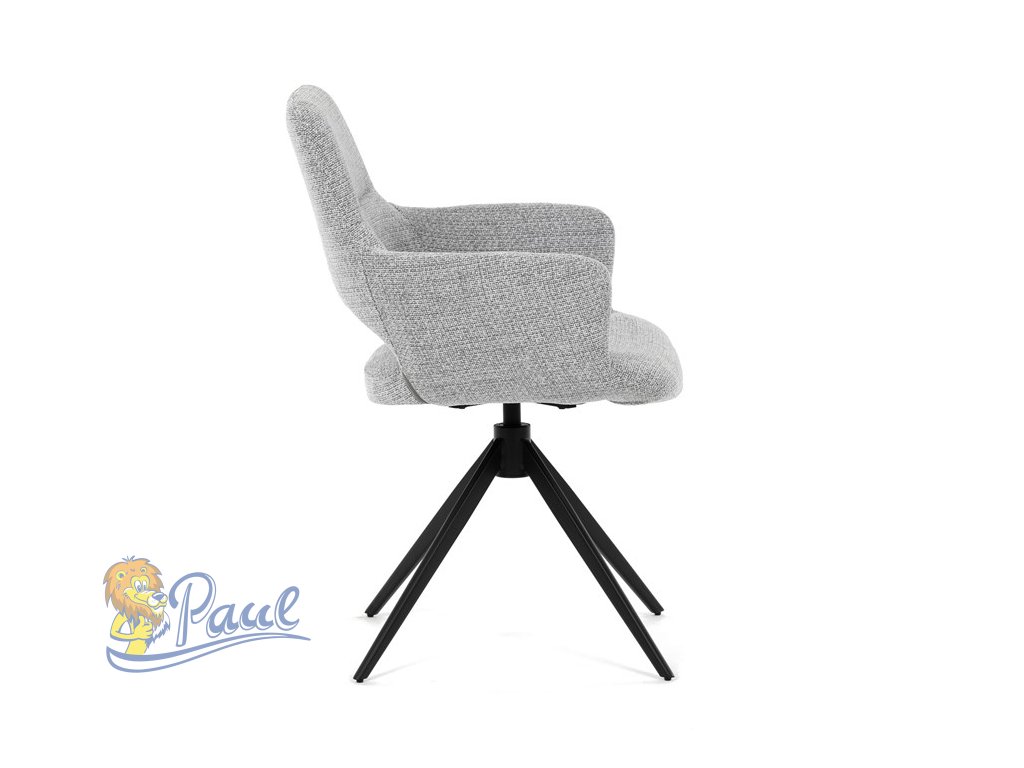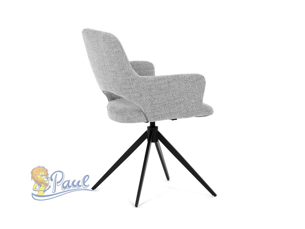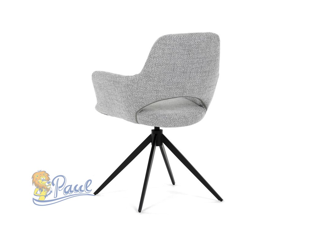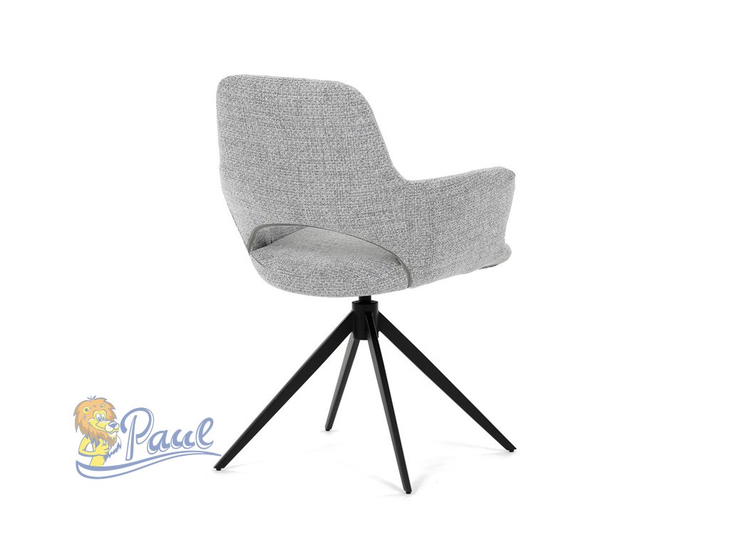 Židle jídelní, šedá látka, 360° vratný mechanismus, černý kov