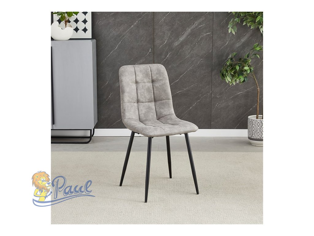 Židle jídelní, šedá látka cowboy, nohy černý kov