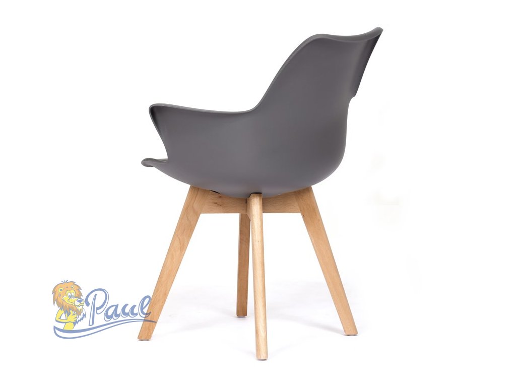Židle jídelní, šedá plastová skořepina, sedák ekokůže, nohy masiv přírodní buk