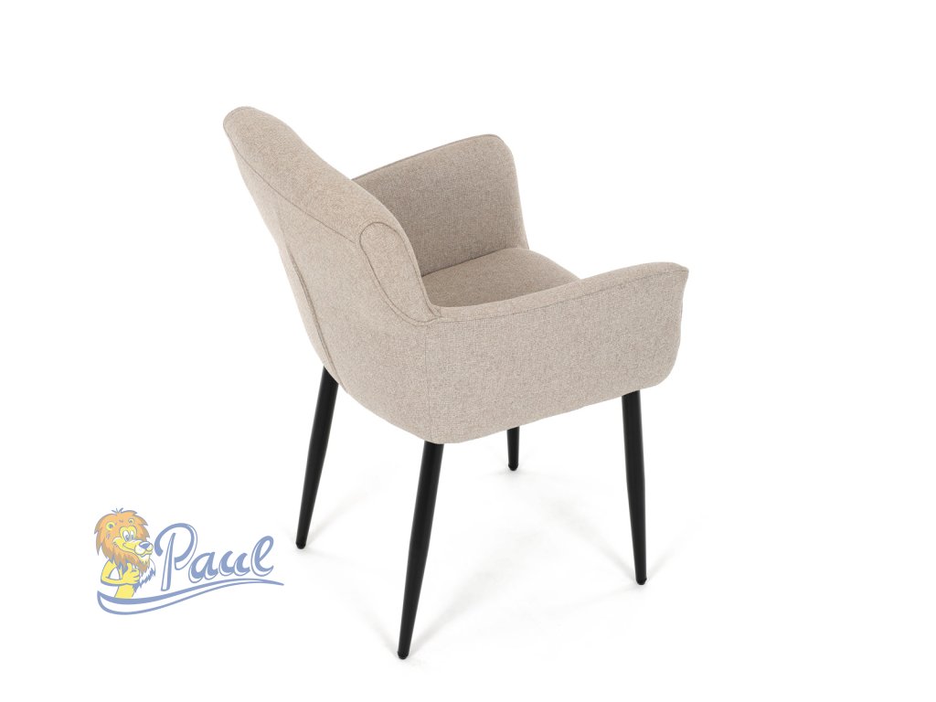 Moderní jídelní židle značky Autronic nabízí elegantní vzhled a vysoký komfort. Béžové čalounění z látky, která se snadno čistí, je ideální pro každodenní používání a zajišťuje praktickou údržbu. Pohodlné područky a měkká PU pěna ve výplni poskytují příjemné sezení. Stabilní konstrukce s černými kovovými nohami působí stylově a zajišťuje pevnost. Tato židle je skvělou volbou pro váš jídelní prostor, kde díky svému jednoduchému a funkčnímu designu perfektně zapadne do jakéhokoliv interiéru.Doplňkové parametry
