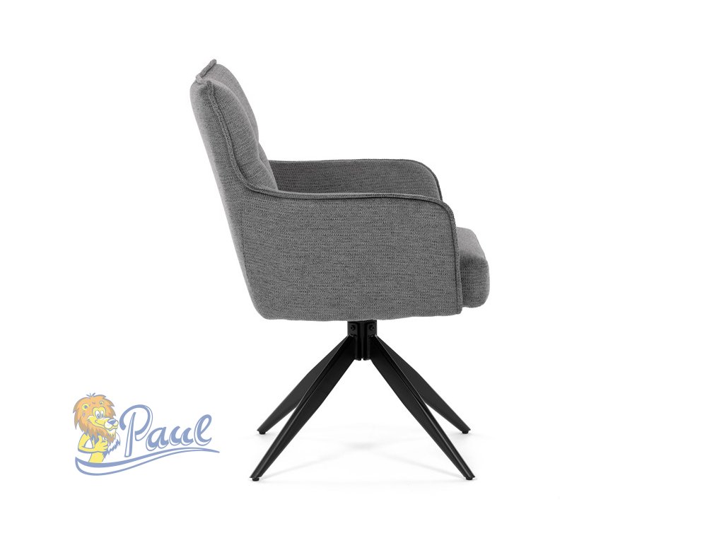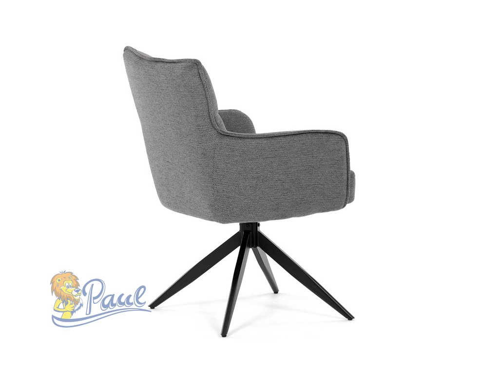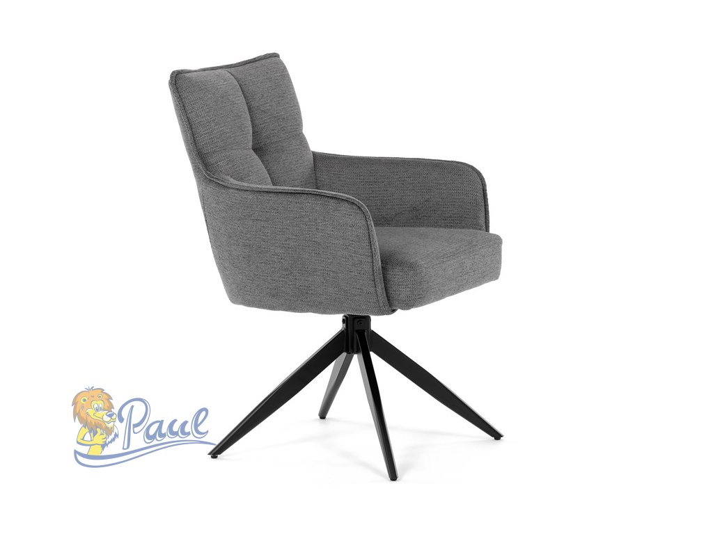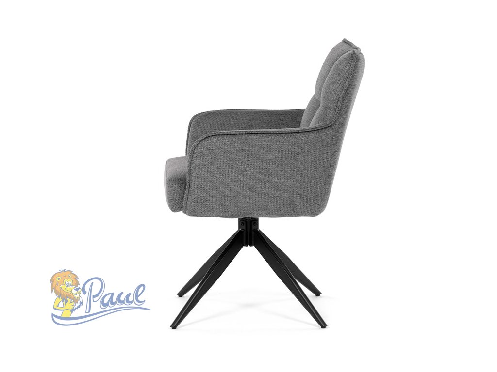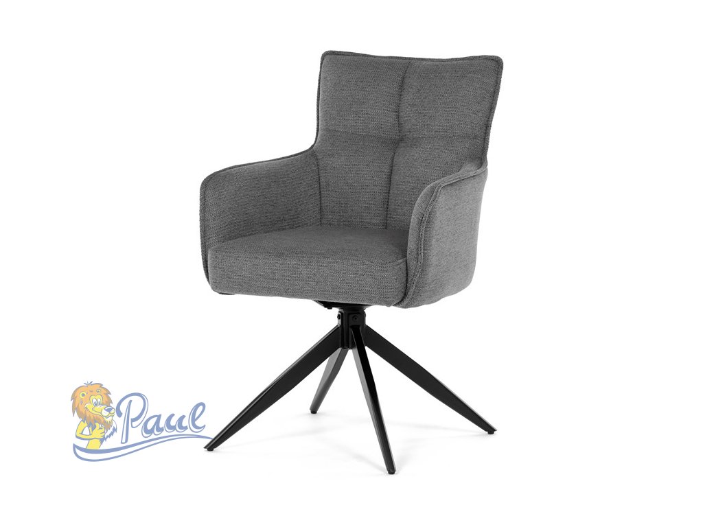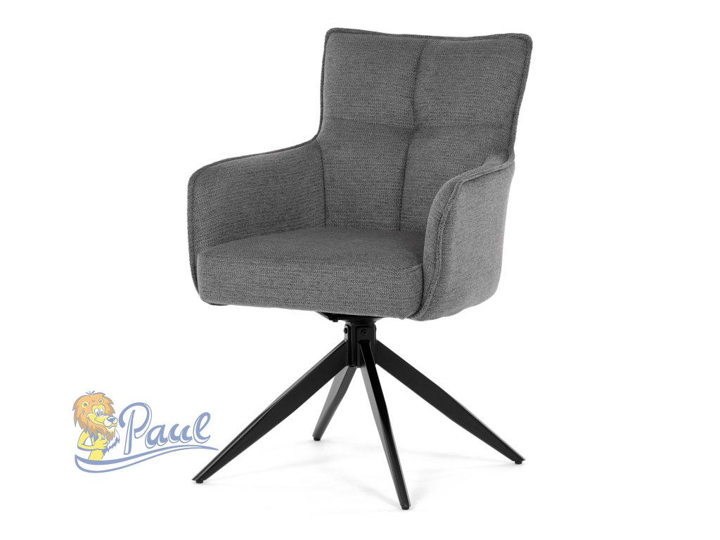 Židle jídelní, taštičkové pružiny v sedáku, 180° otočný mechanismus, šedá voděodolná látka, černý kov