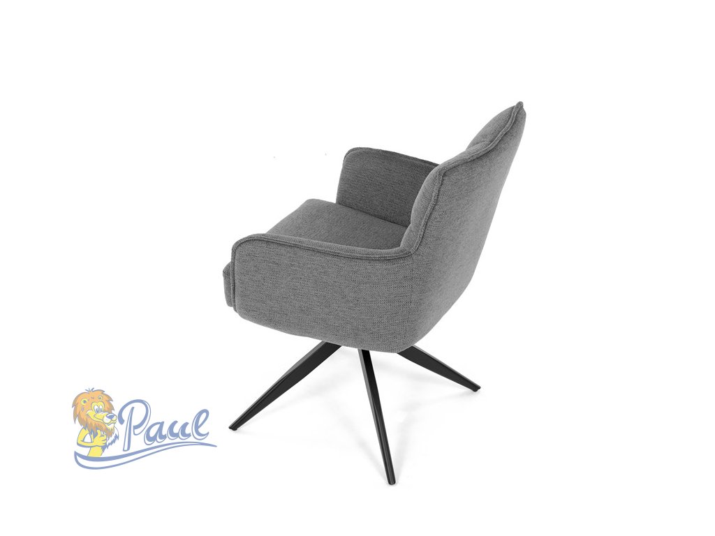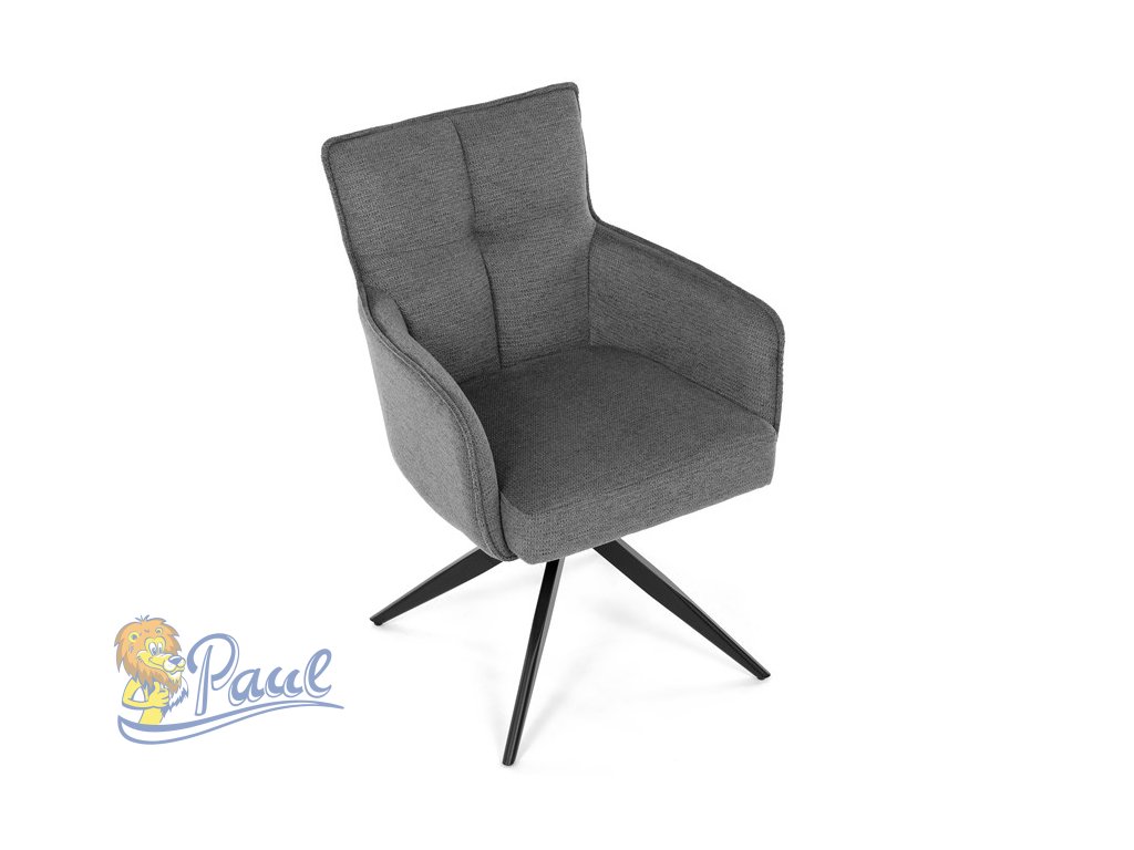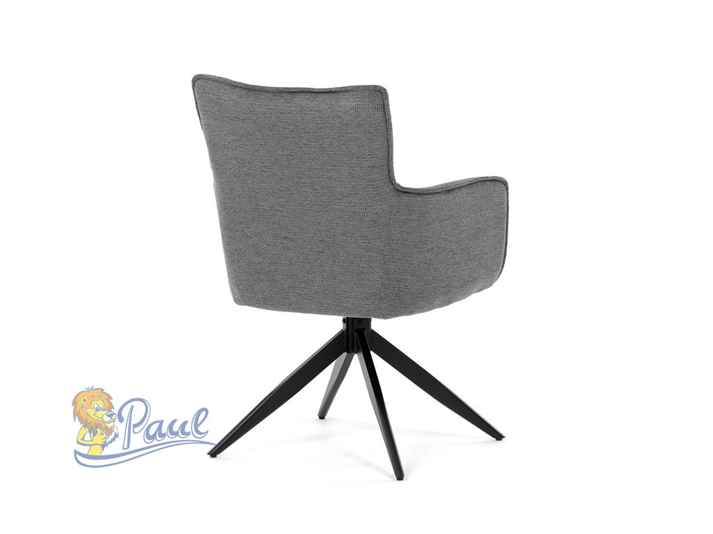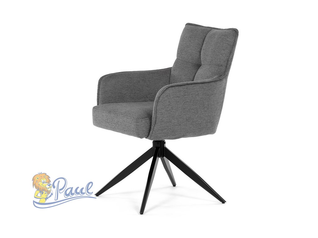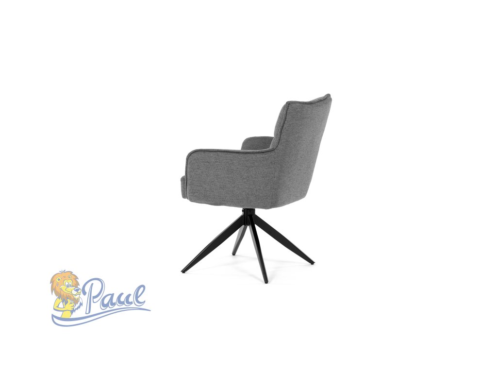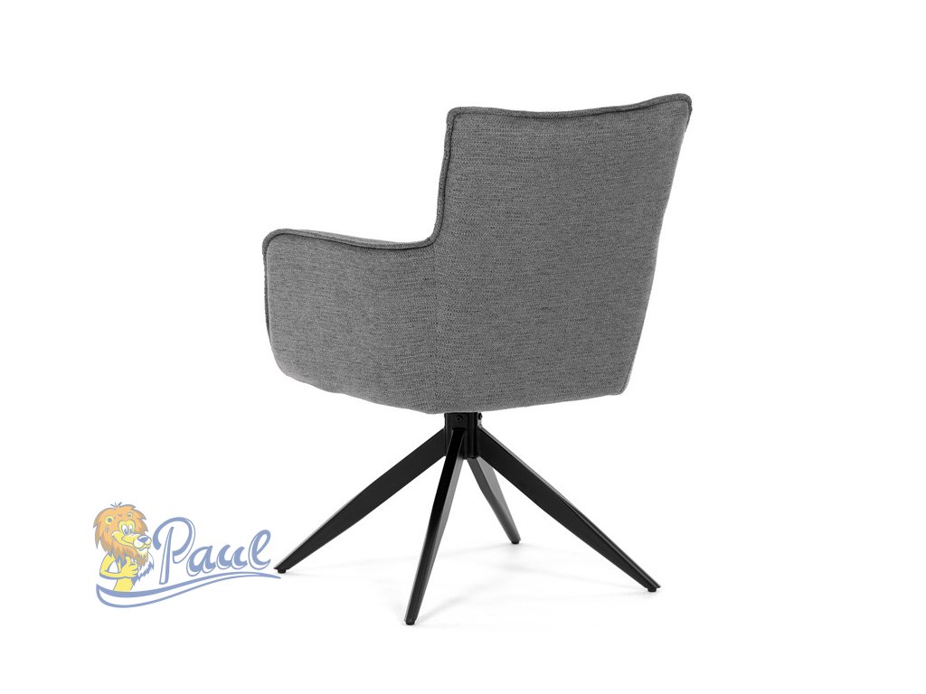 Židle jídelní, taštičkové pružiny v sedáku, 180° otočný mechanismus, šedá voděodolná látka, černý kov