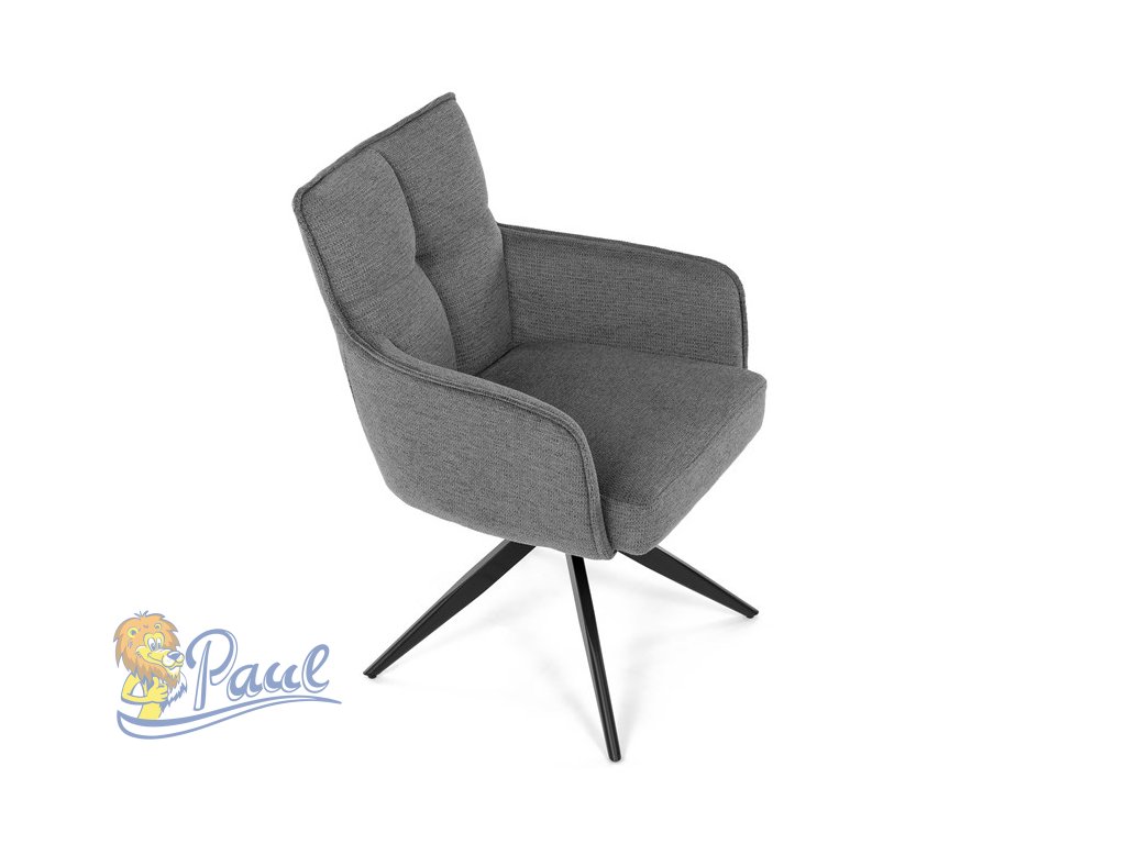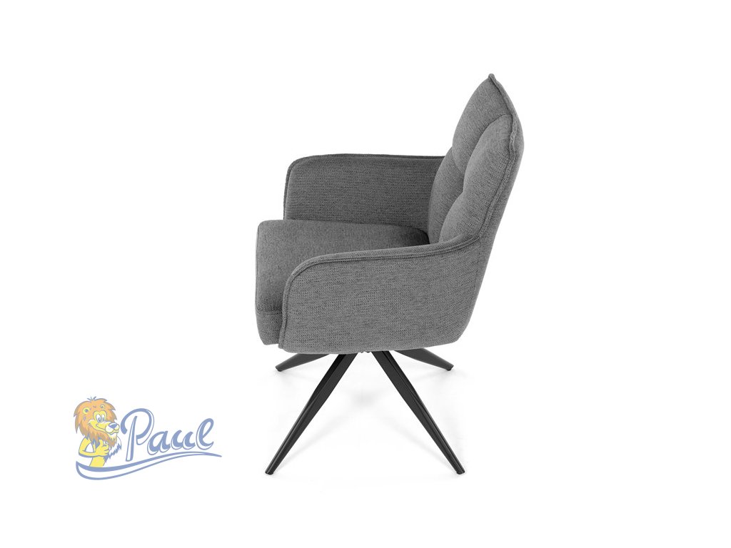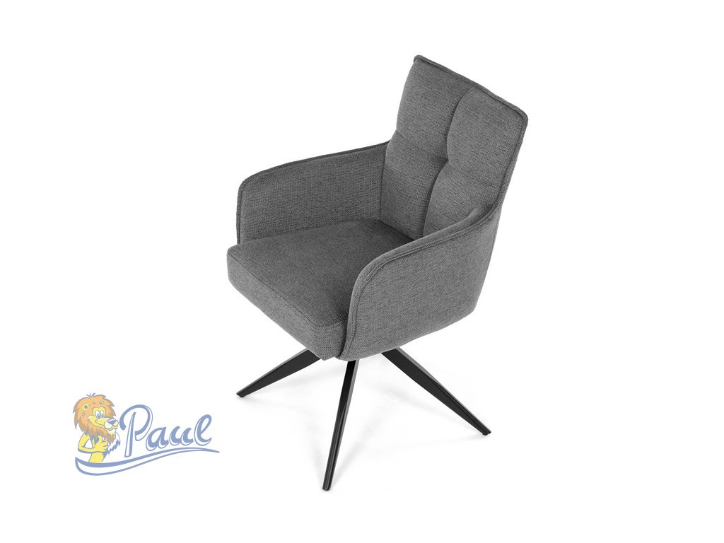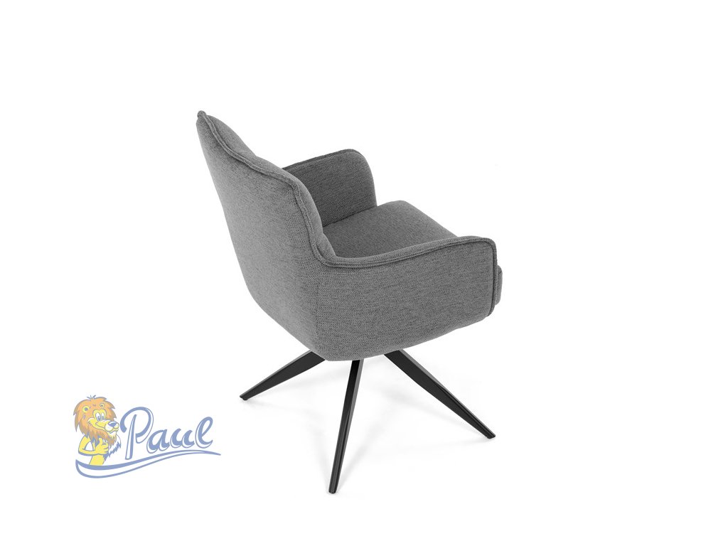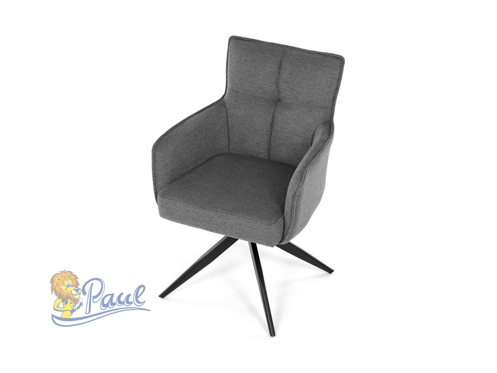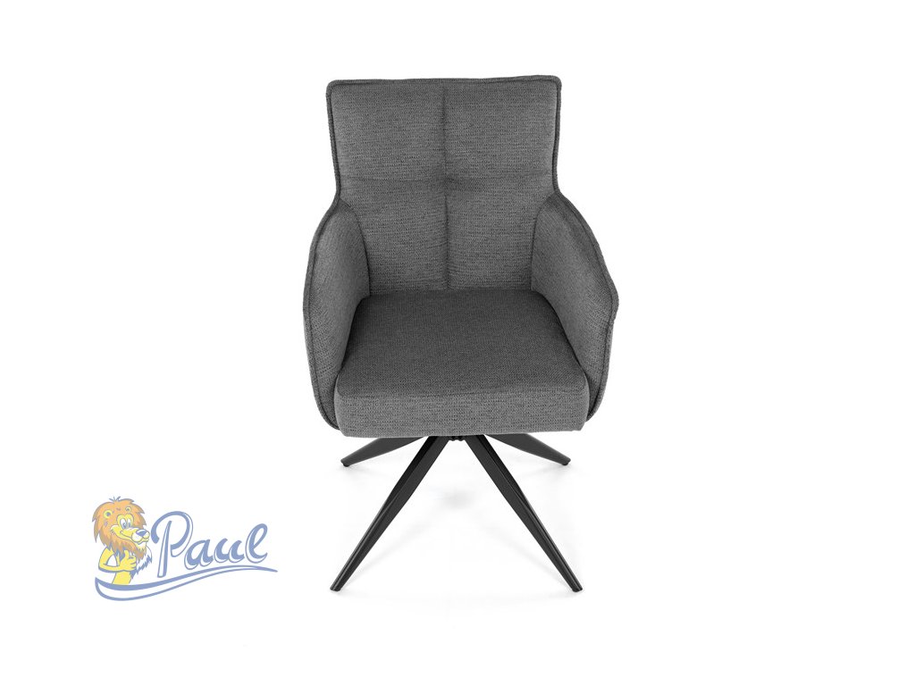 Židle jídelní, taštičkové pružiny v sedáku, 180° otočný mechanismus, šedá voděodolná látka, černý kov