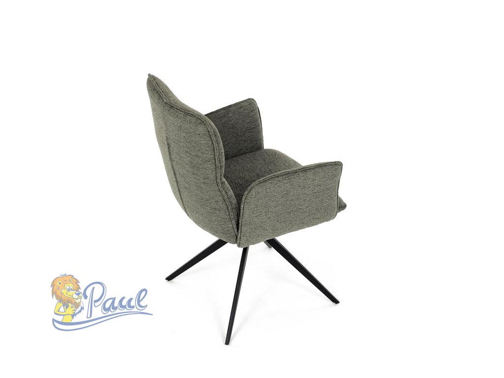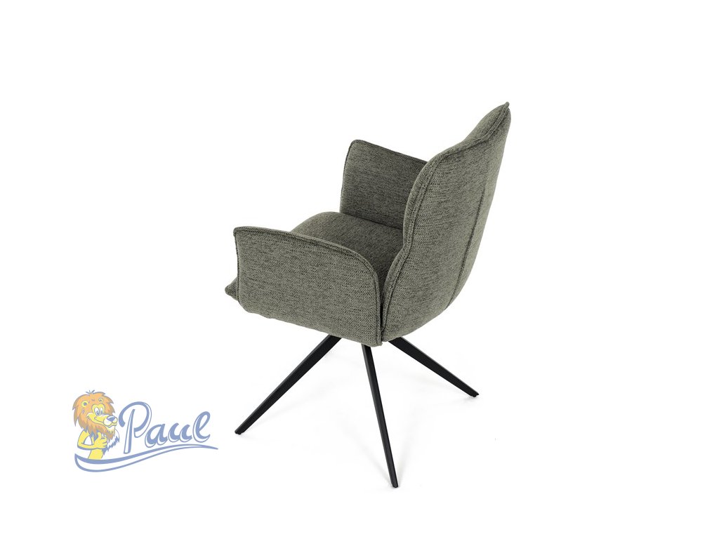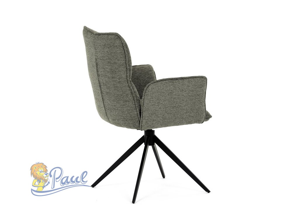 Židle jídelní, zelená látka, 360° vratný mechanismus, černý kov