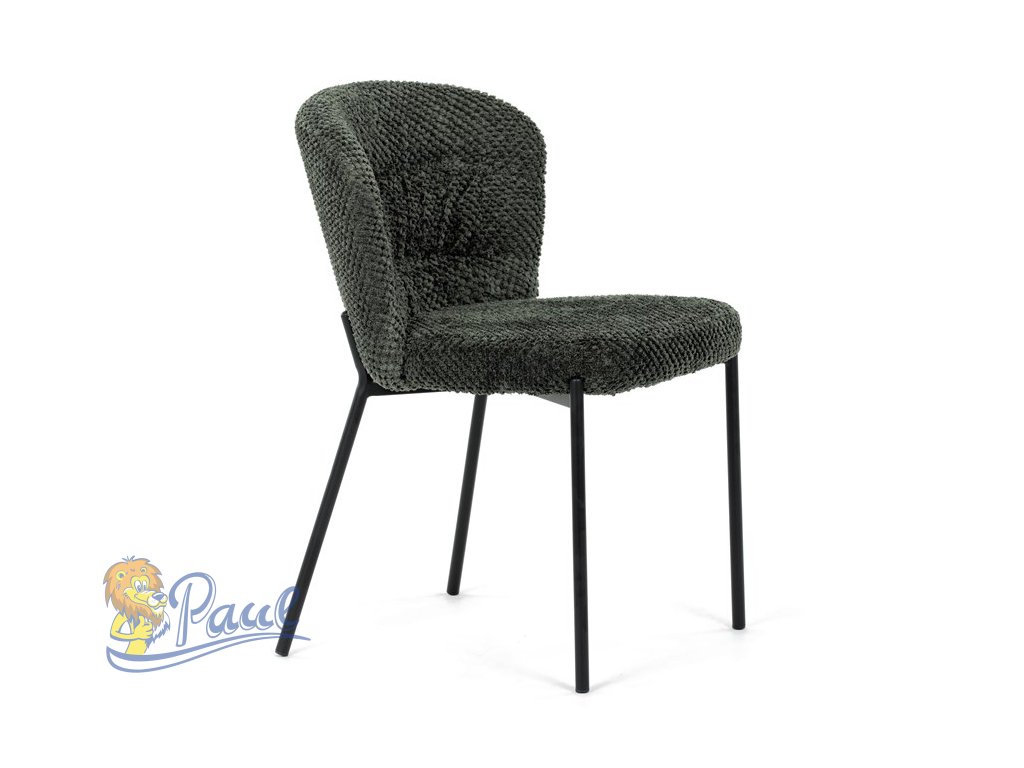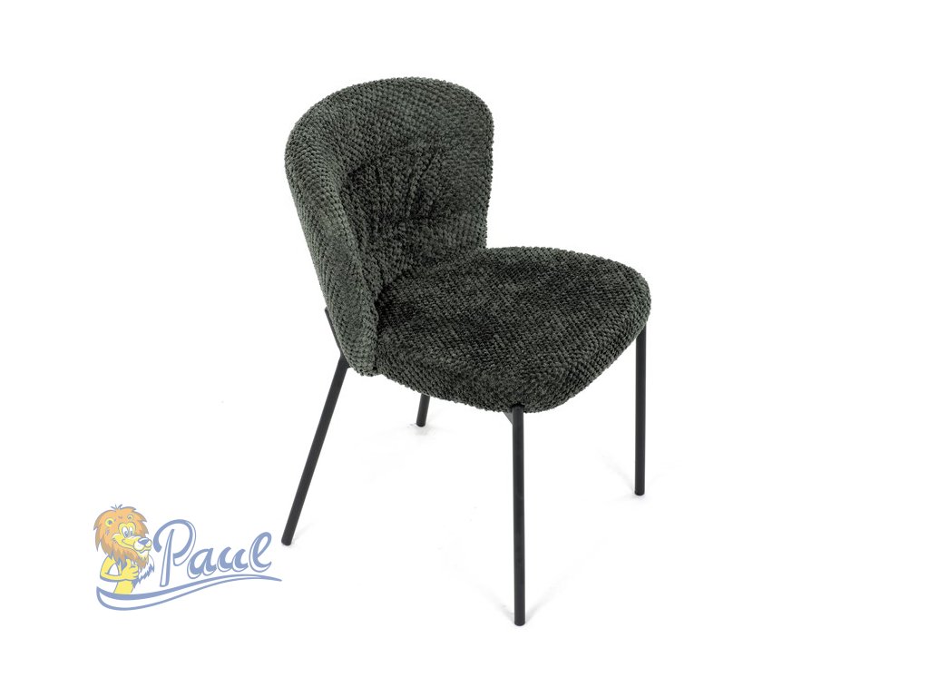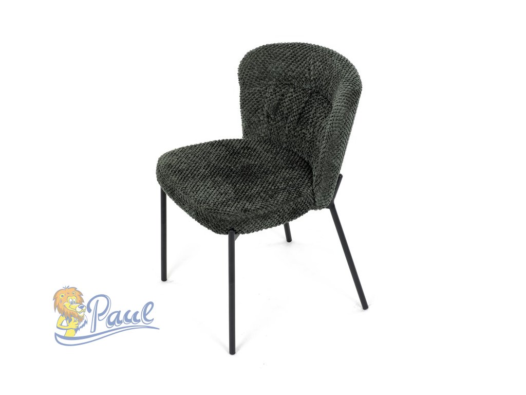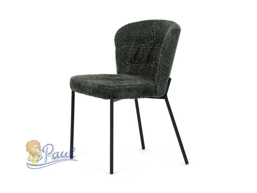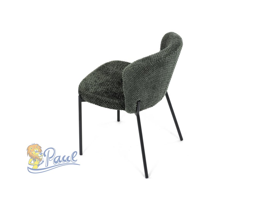 Židle jídelní, zelená látka, černé kovové nohy.