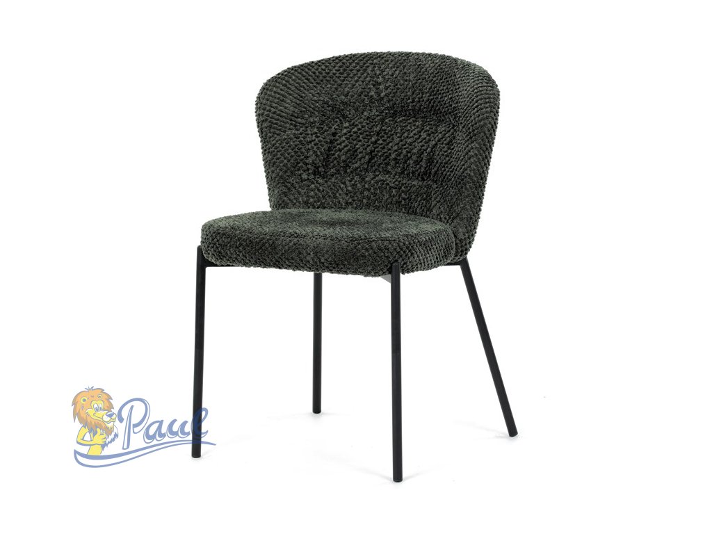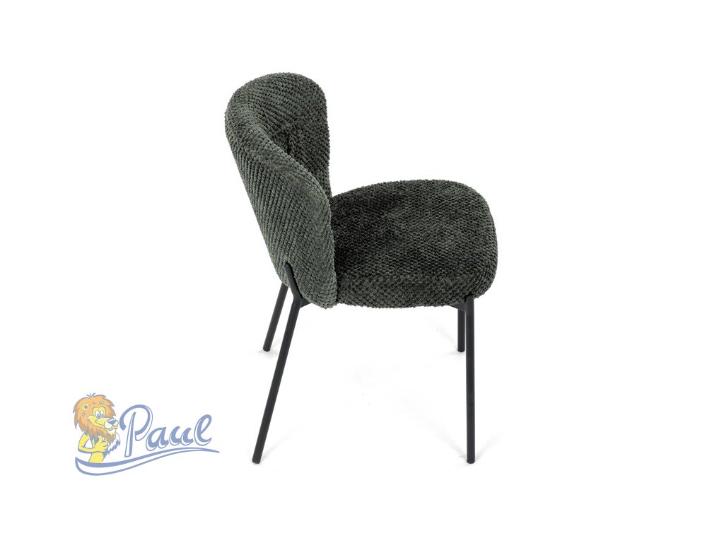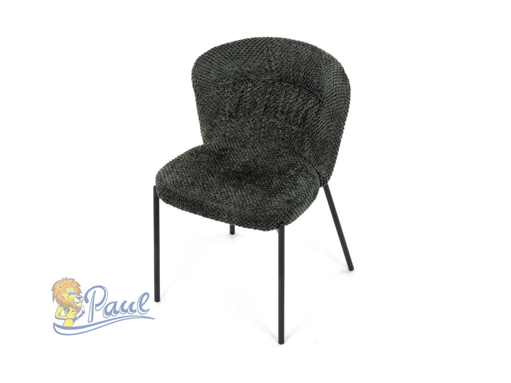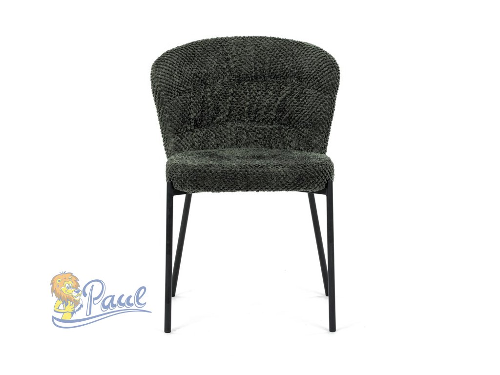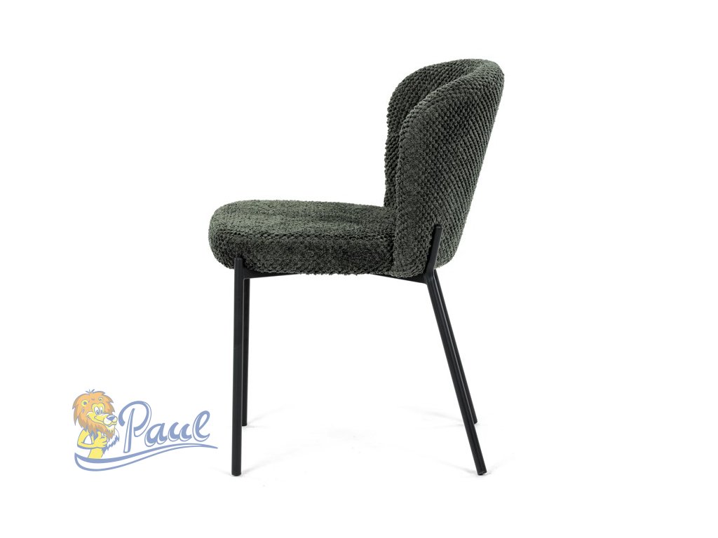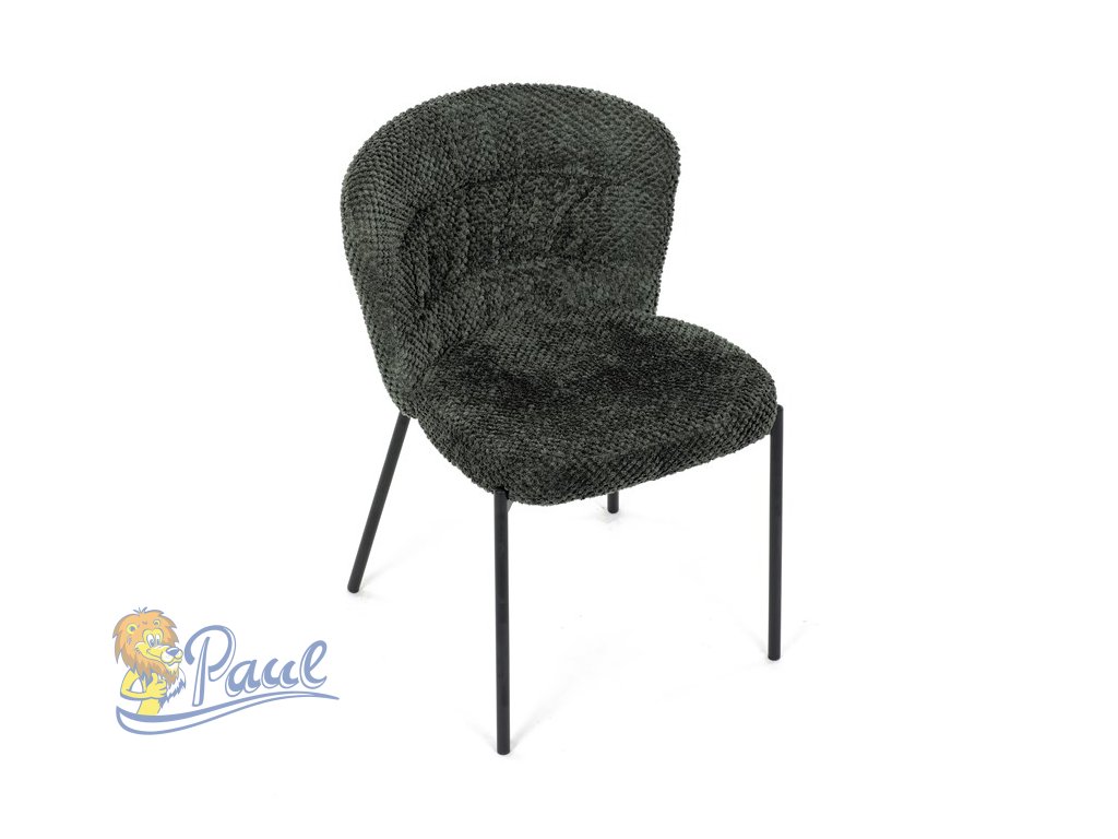 Židle jídelní, zelená látka, černé kovové nohy.