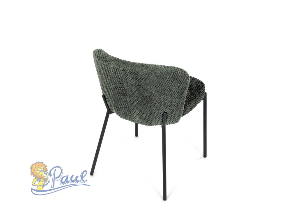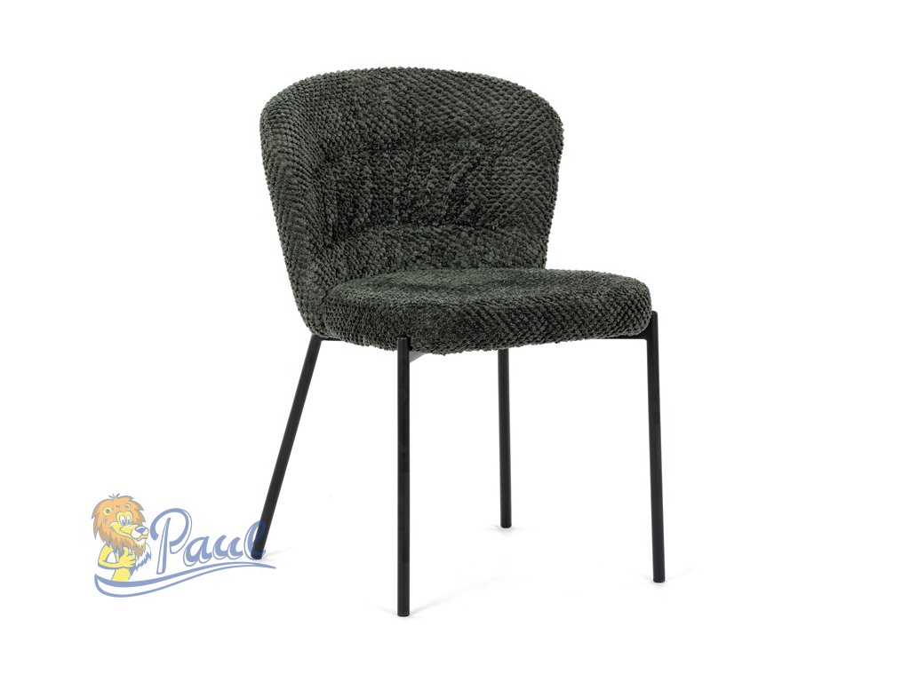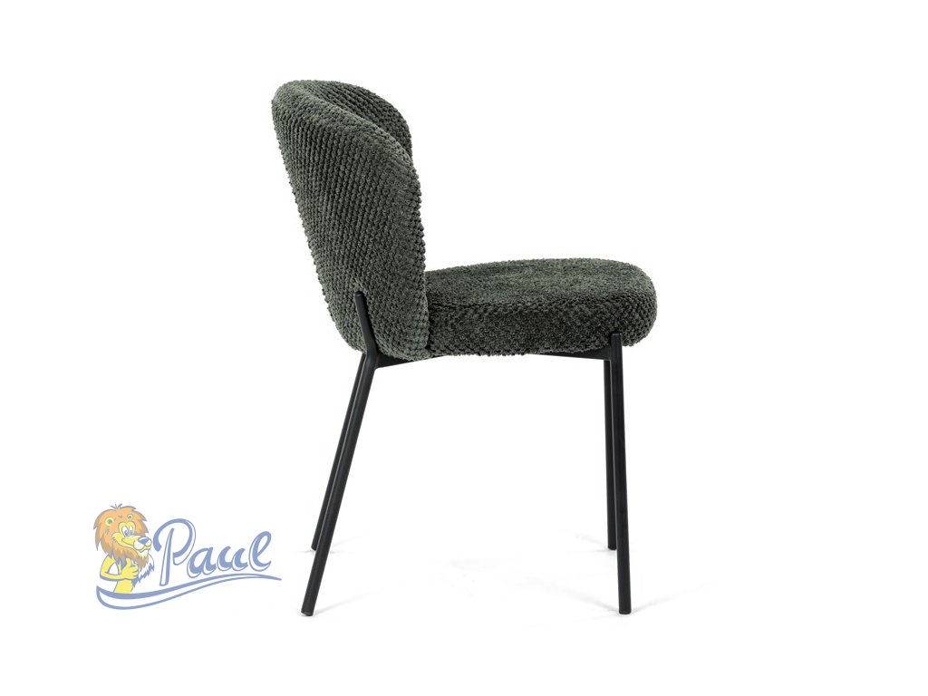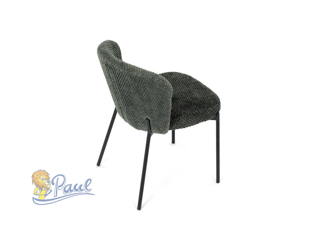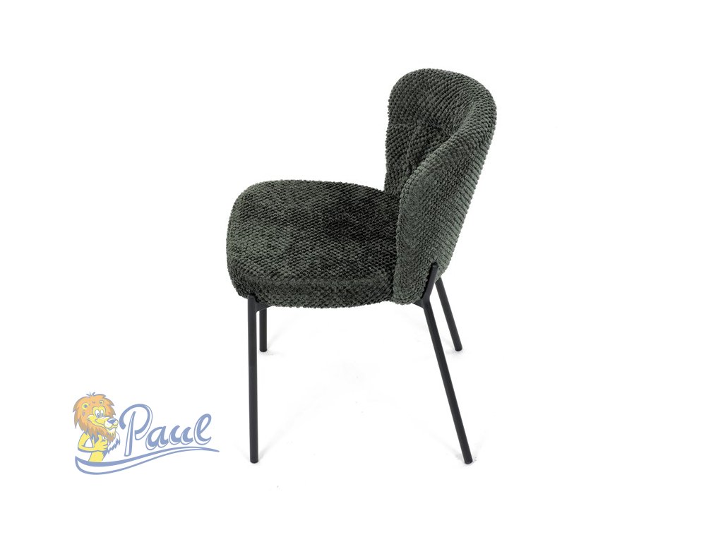 Židle jídelní, zelená látka, černé kovové nohy.