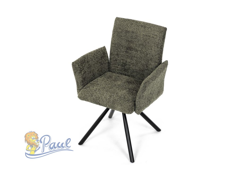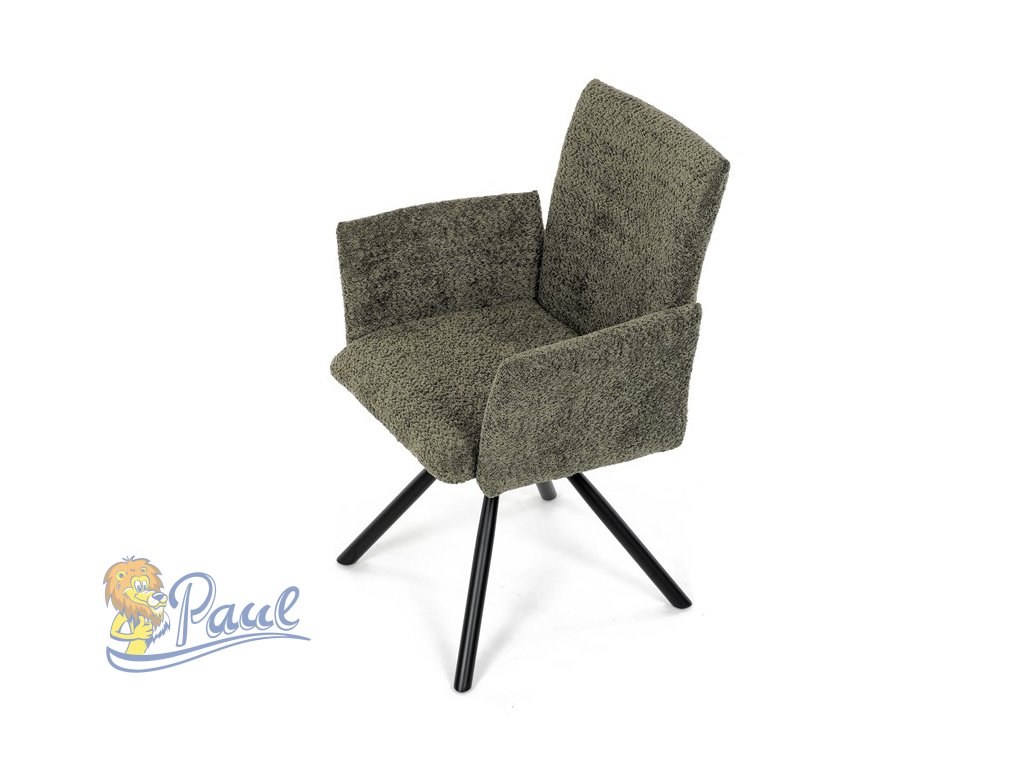 Židle jídelní, zelená látka, černý kov, otočný mechanismus 90°/90° (L/P) - funkce reset