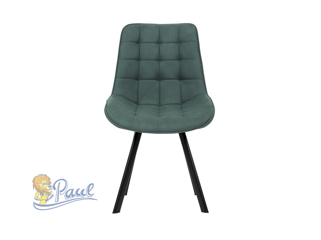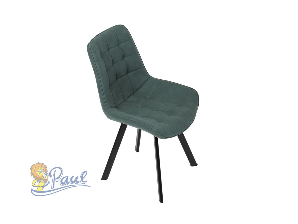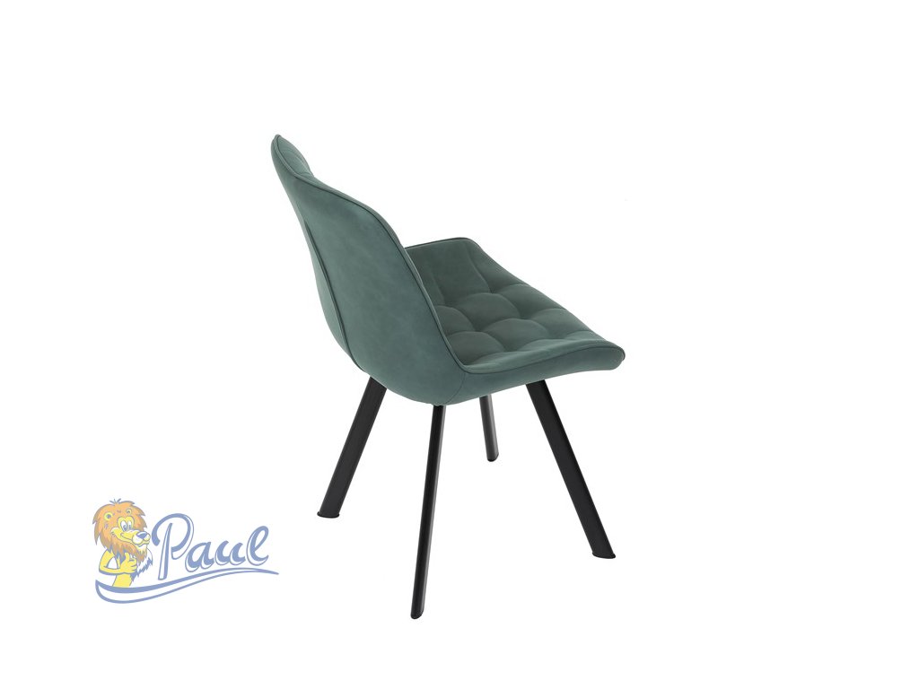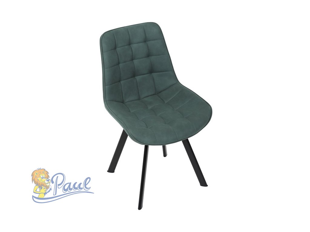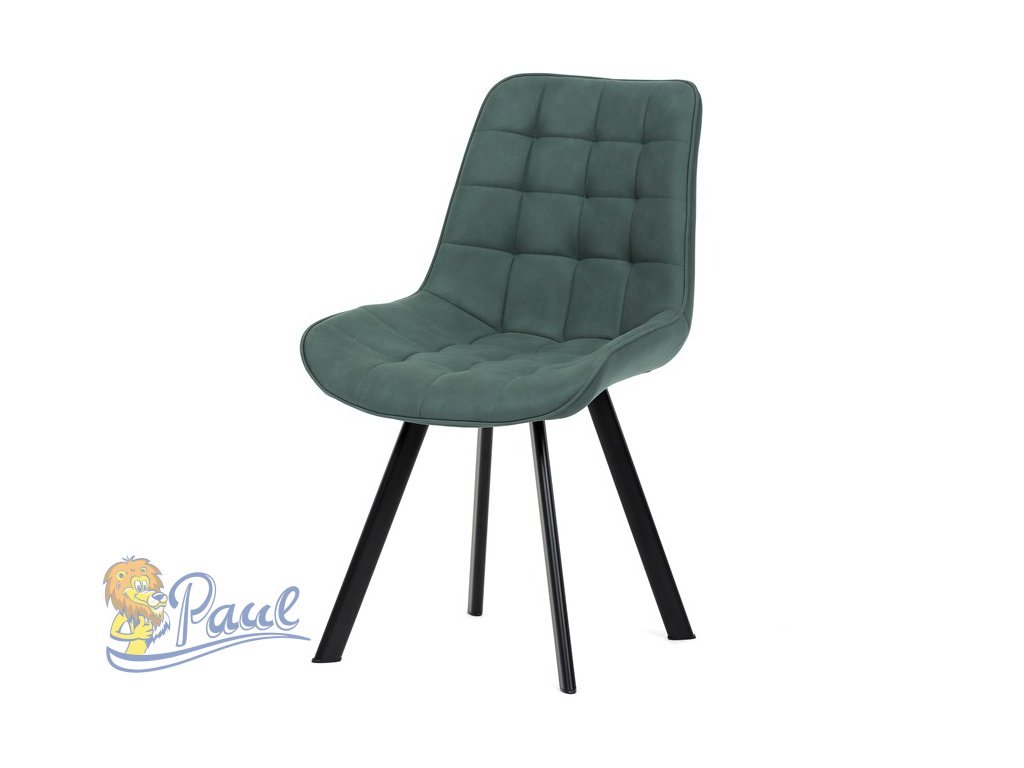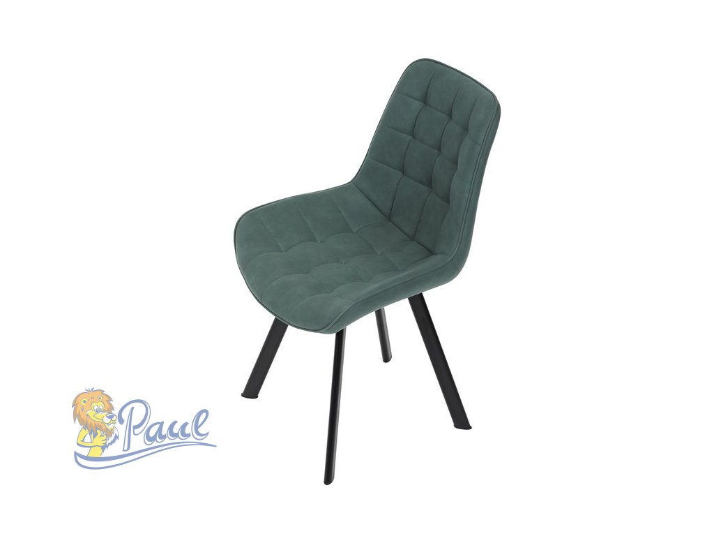 Židle jídelní, zelená látka v dekoru broušené kůže, černý kov