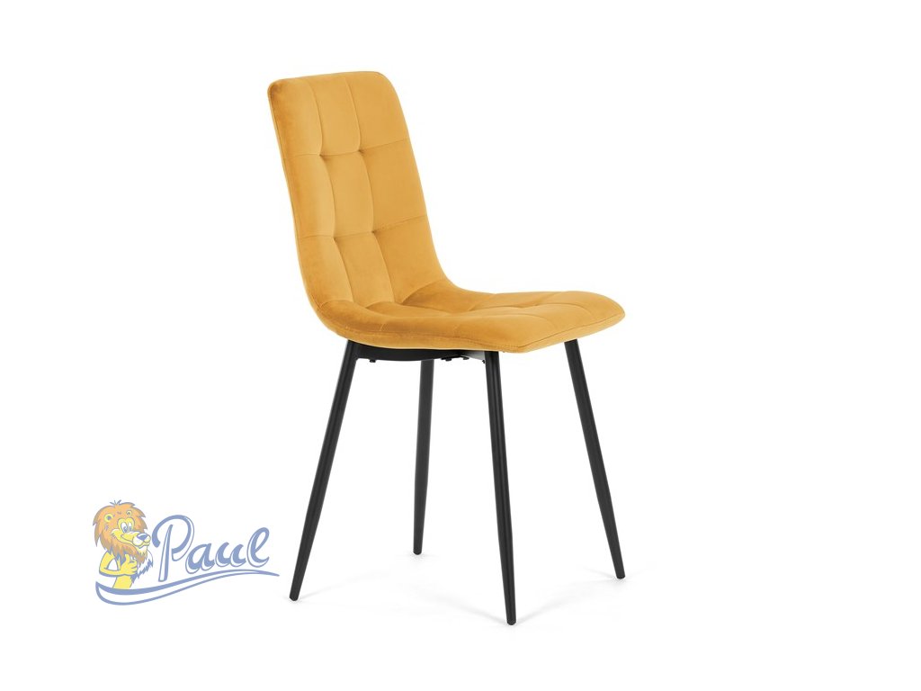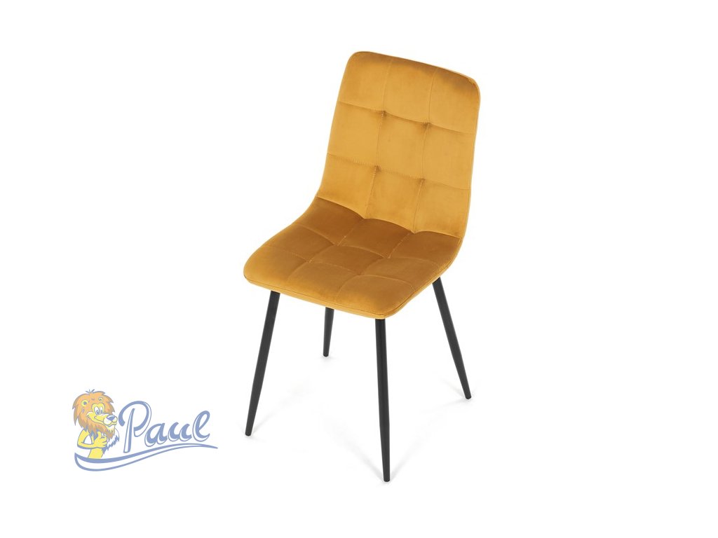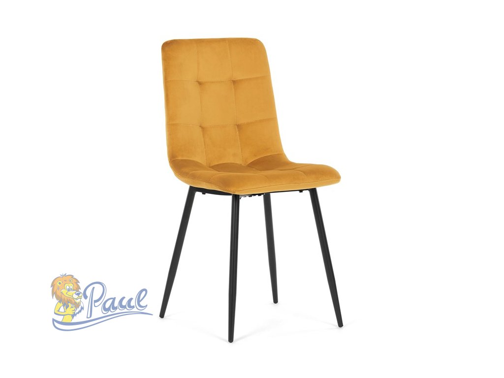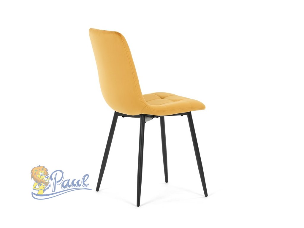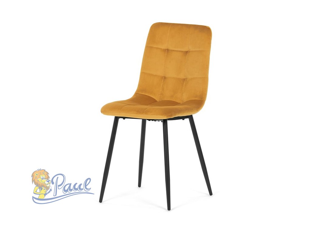 Židle jídelní, žlutá sametová látka, nohy černý kov