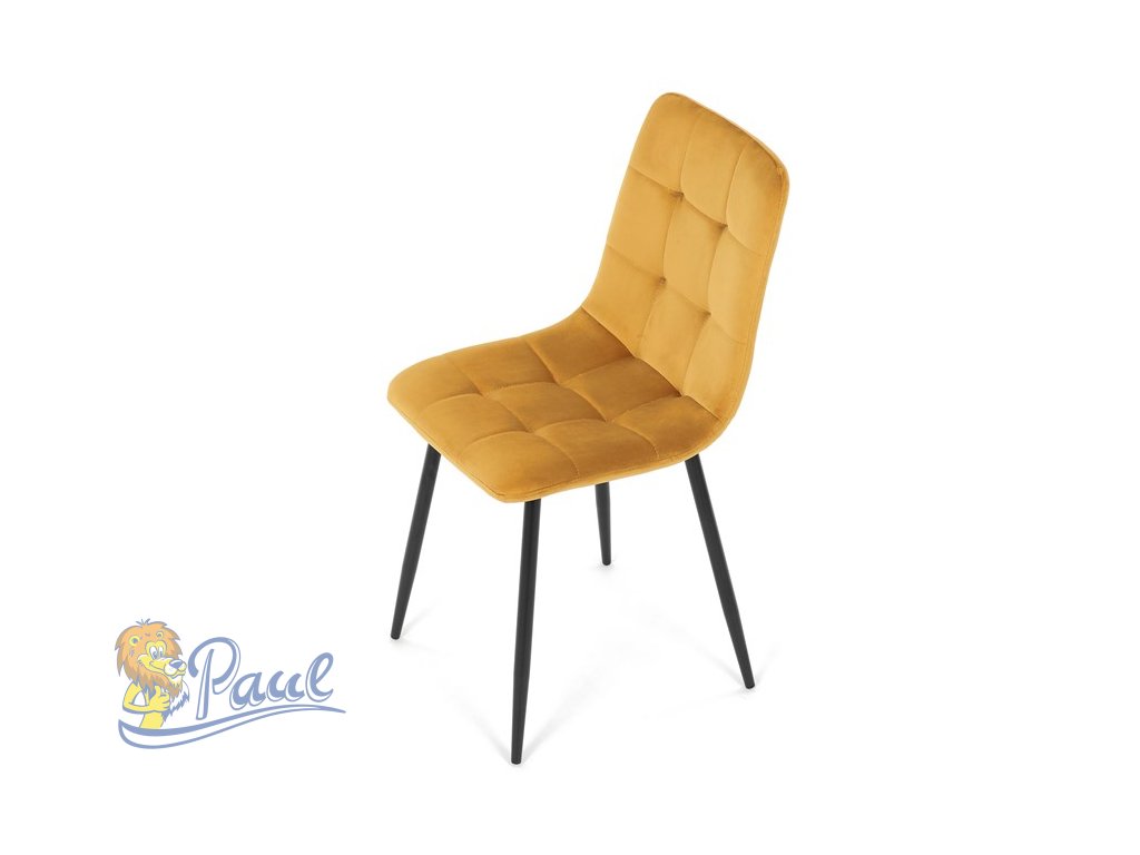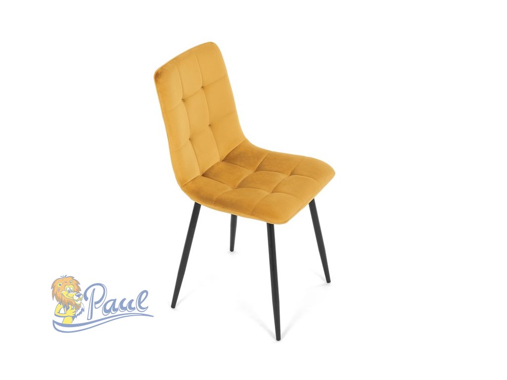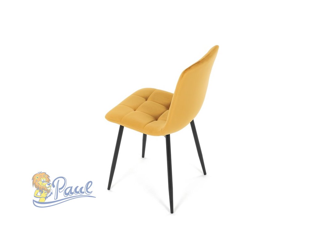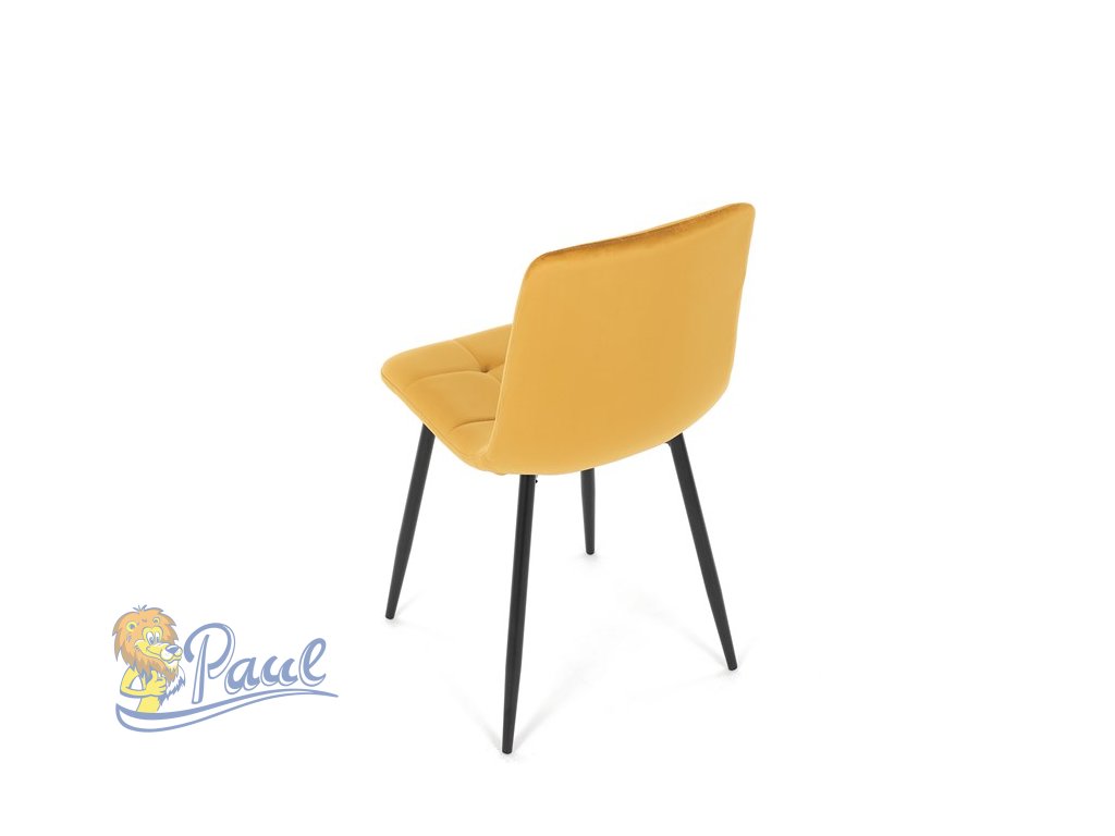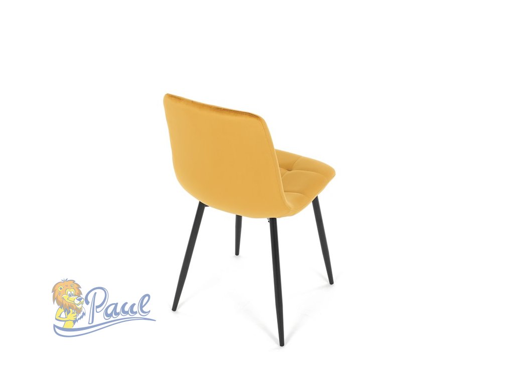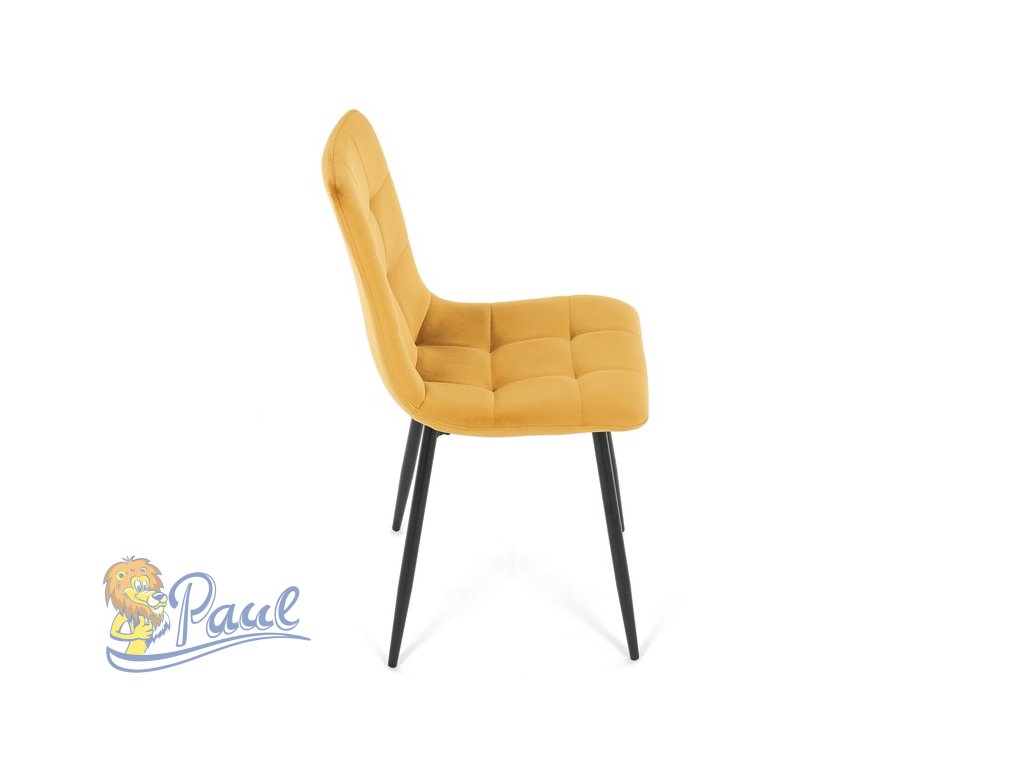 Židle jídelní, žlutá sametová látka, nohy černý kov