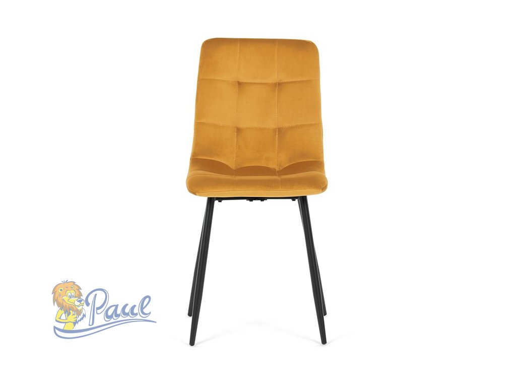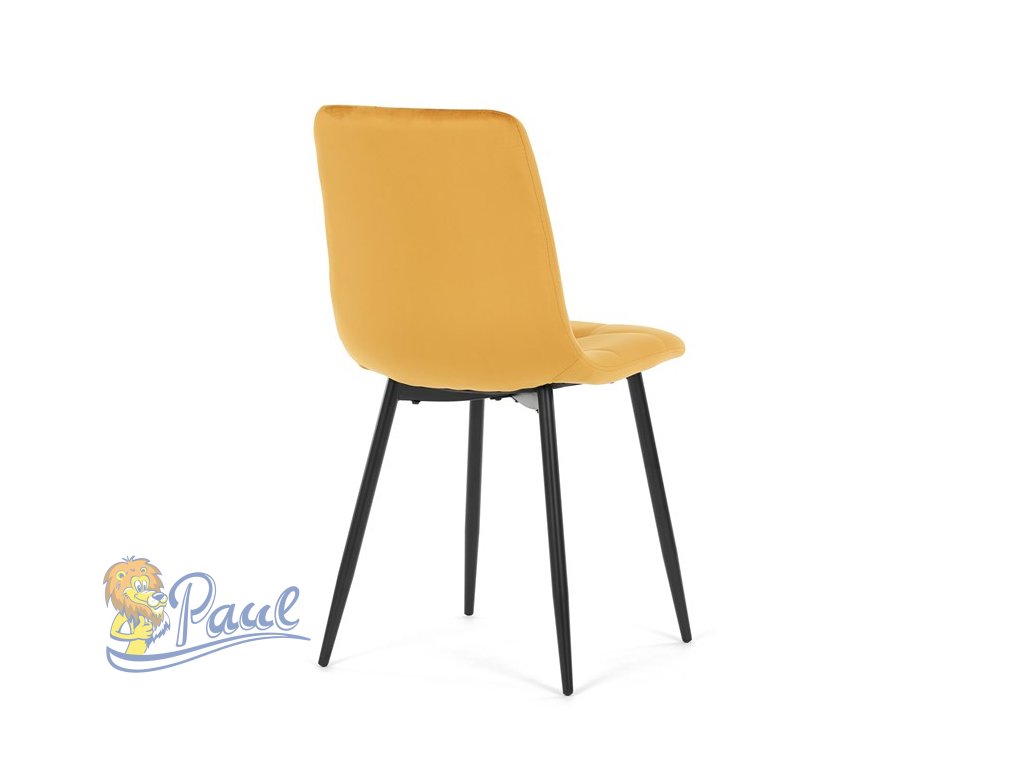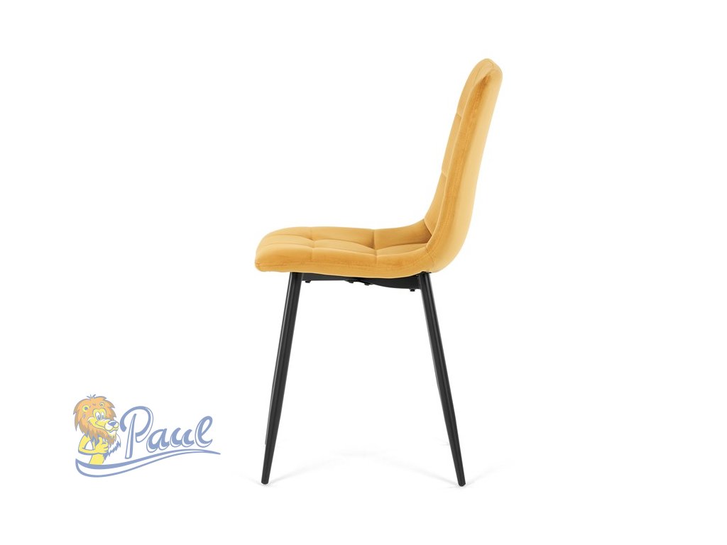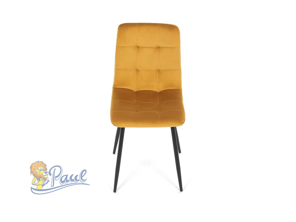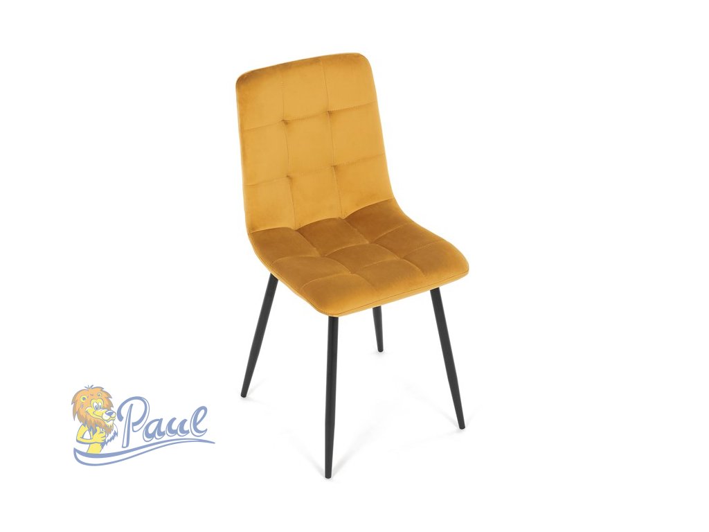 Židle jídelní, žlutá sametová látka, nohy černý kov