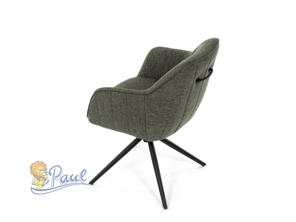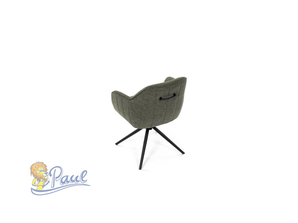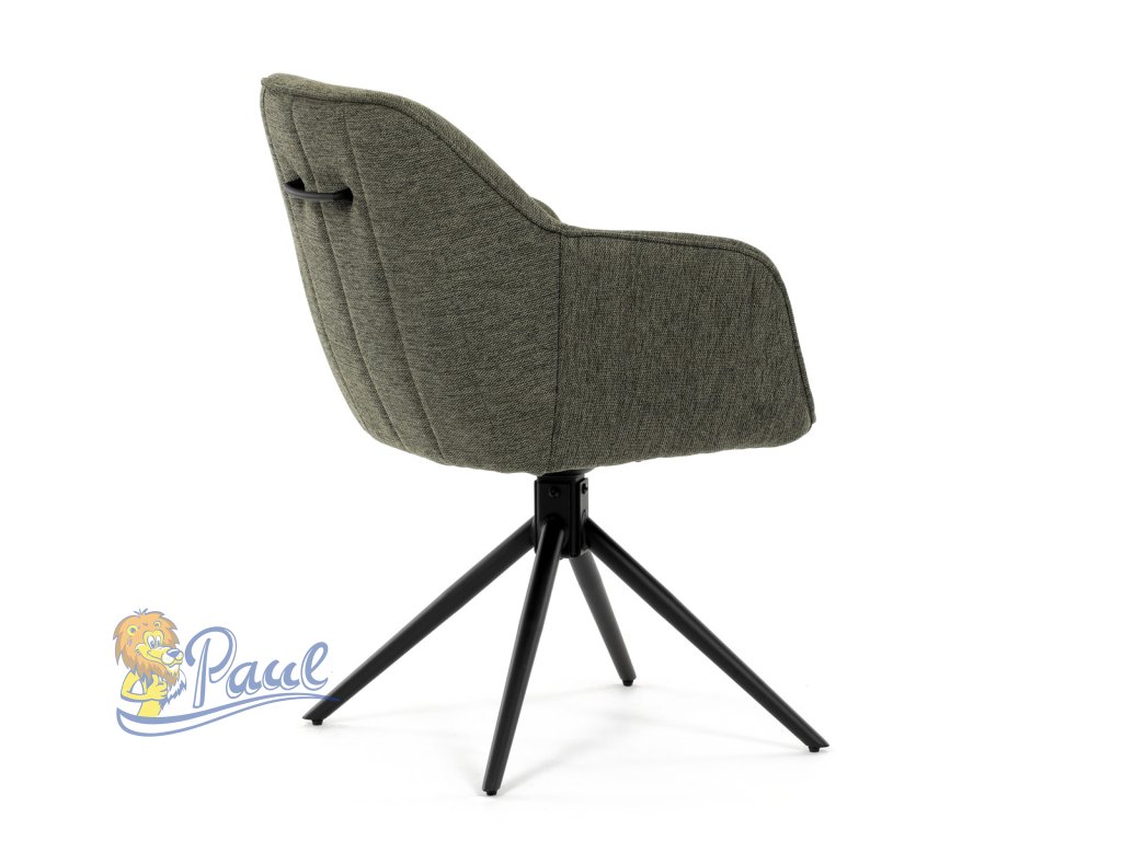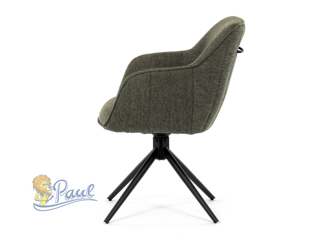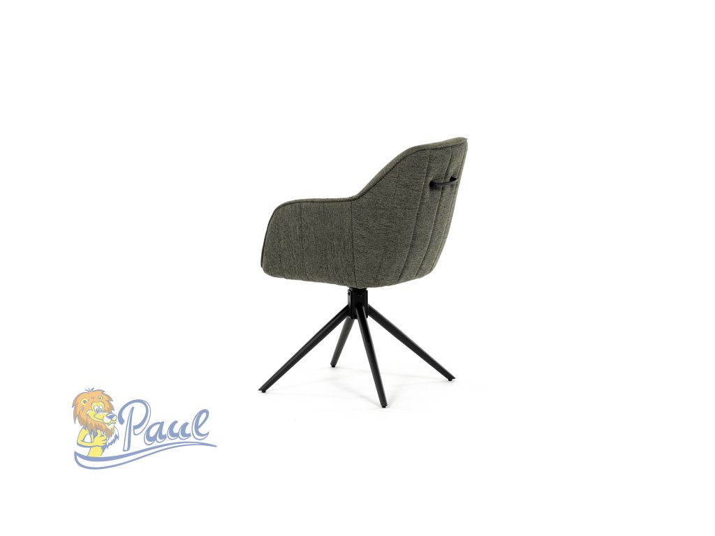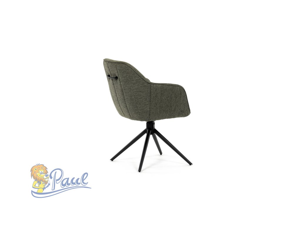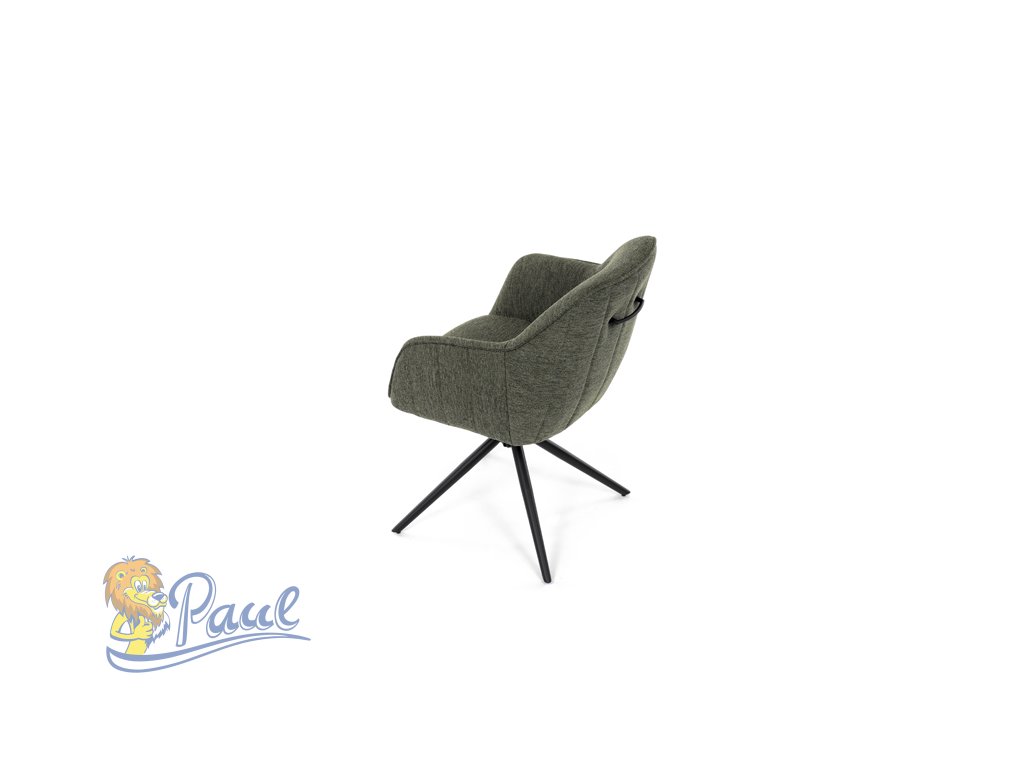 Moderní jídelní židle v zelené barvě s efektním prošitím zádové i přední části opěráku. Prošití je v brvě potahového materiálu. Zadní část opěráku je opatřena vkusným madlem pro snazší manipulaci. Čtyři kovové nohy v matném práškovém nástřiku vycházejí z centrálního bodu ve středu sedáku. Sedák je otočný o P90°+ L 90° s vratným mechanismem - funkce reset.Doplňkové parametry