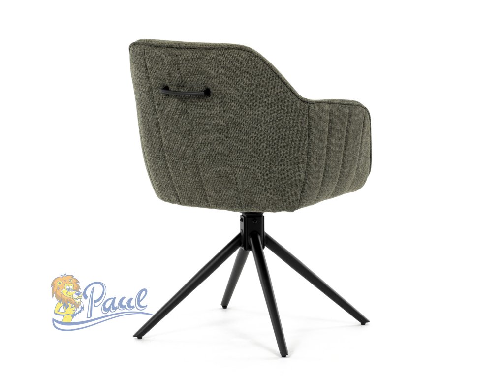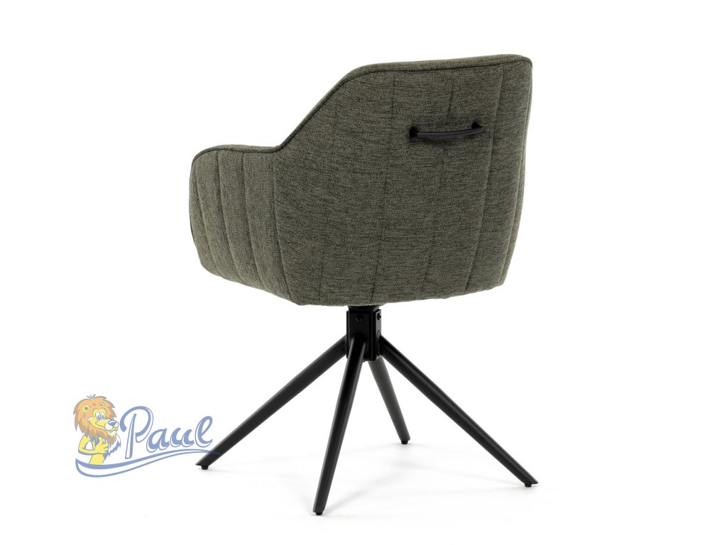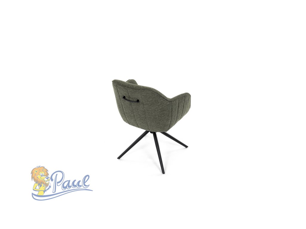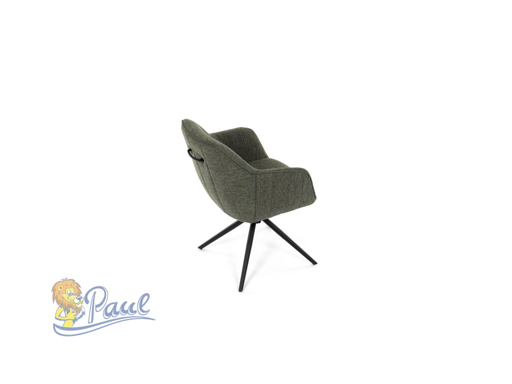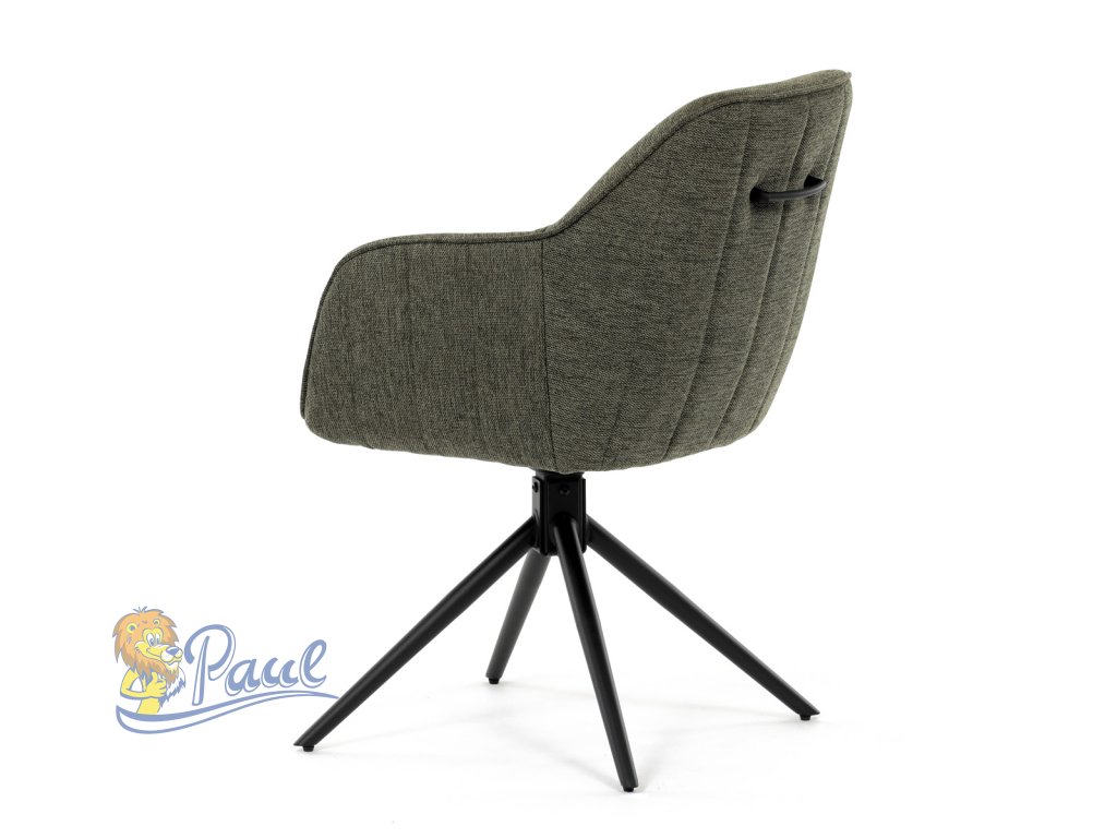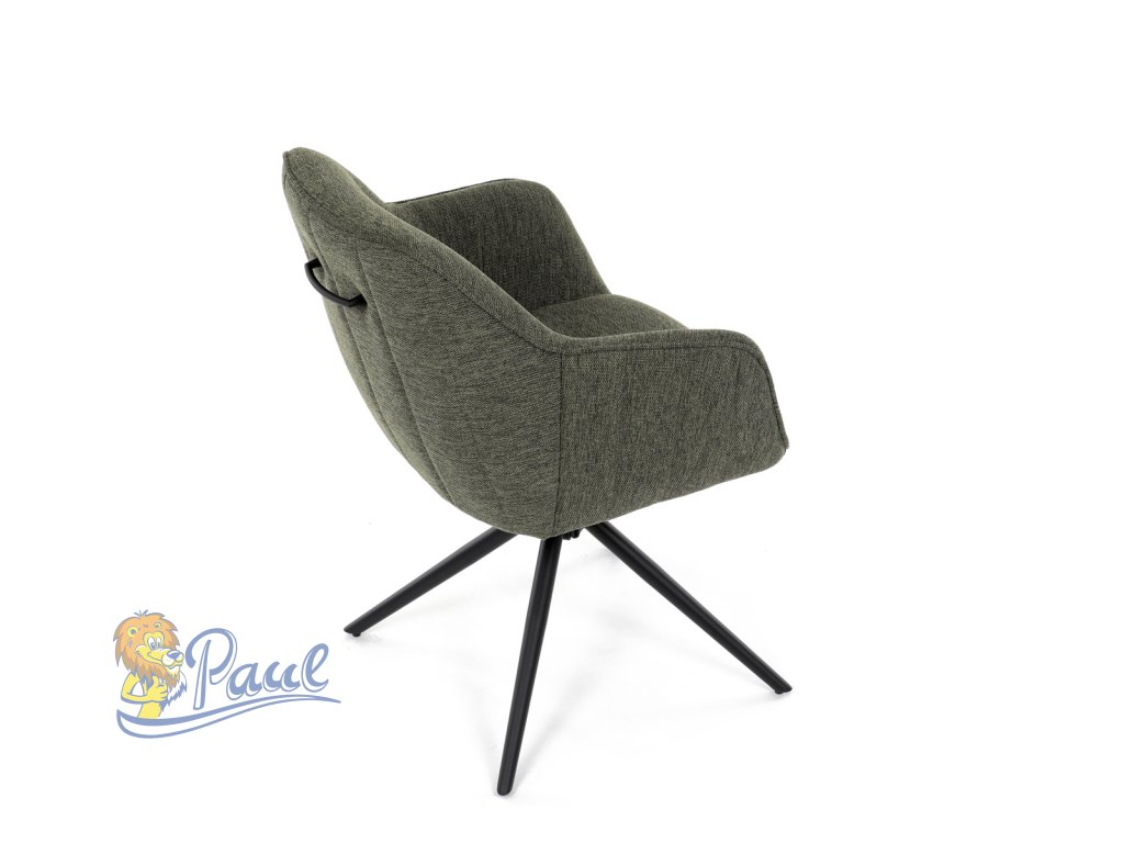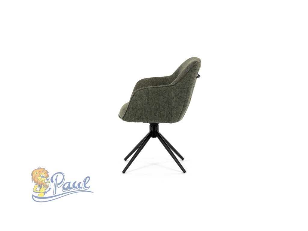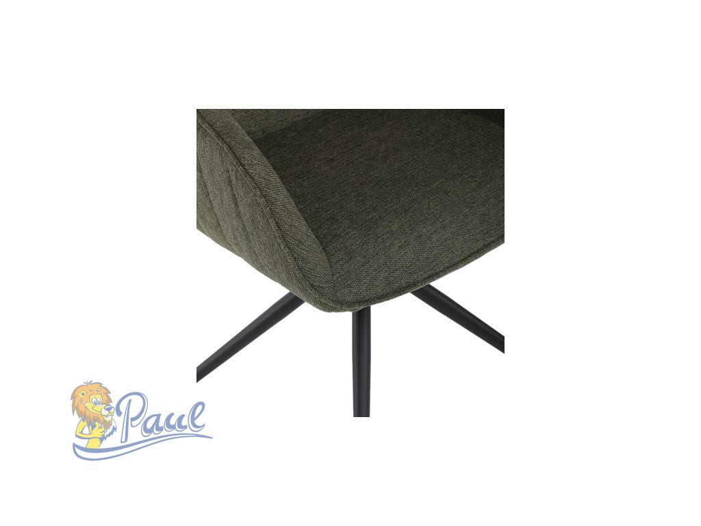 Moderní jídelní židle v zelené barvě s efektním prošitím zádové i přední části opěráku. Prošití je v brvě potahového materiálu. Zadní část opěráku je opatřena vkusným madlem pro snazší manipulaci. Čtyři kovové nohy v matném práškovém nástřiku vycházejí z centrálního bodu ve středu sedáku. Sedák je otočný o P90°+ L 90° s vratným mechanismem - funkce reset.Doplňkové parametry