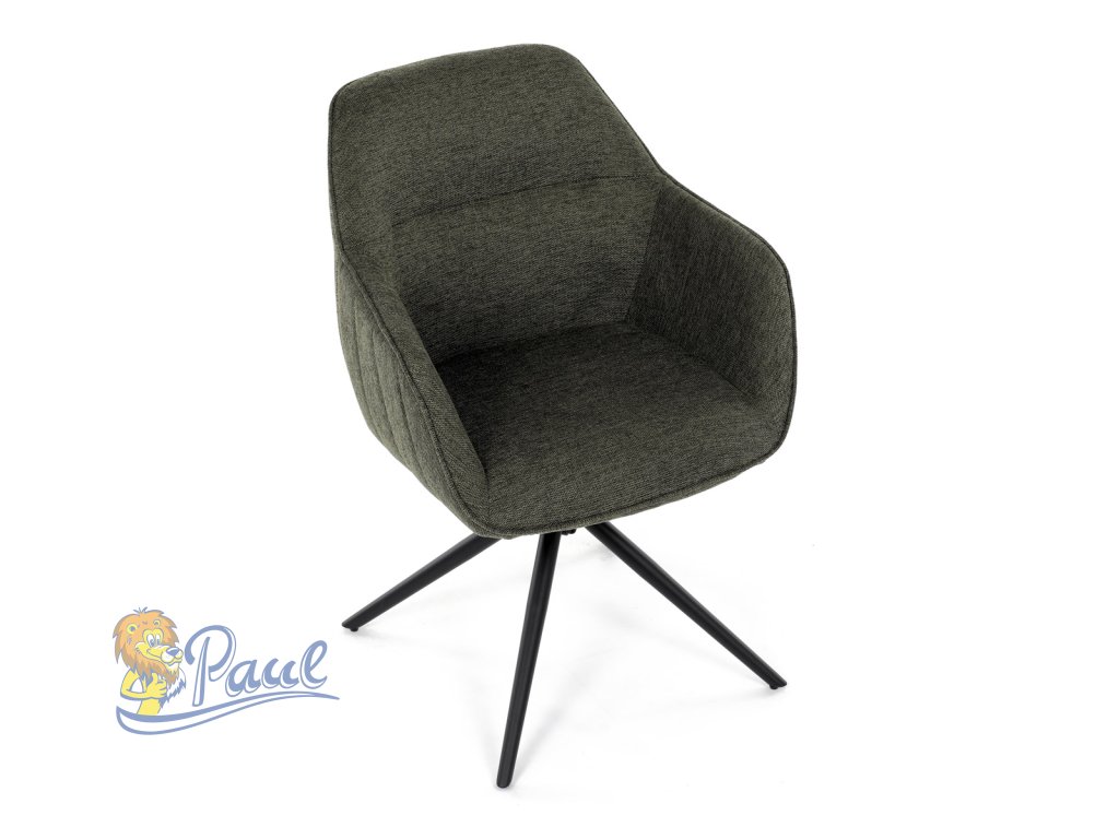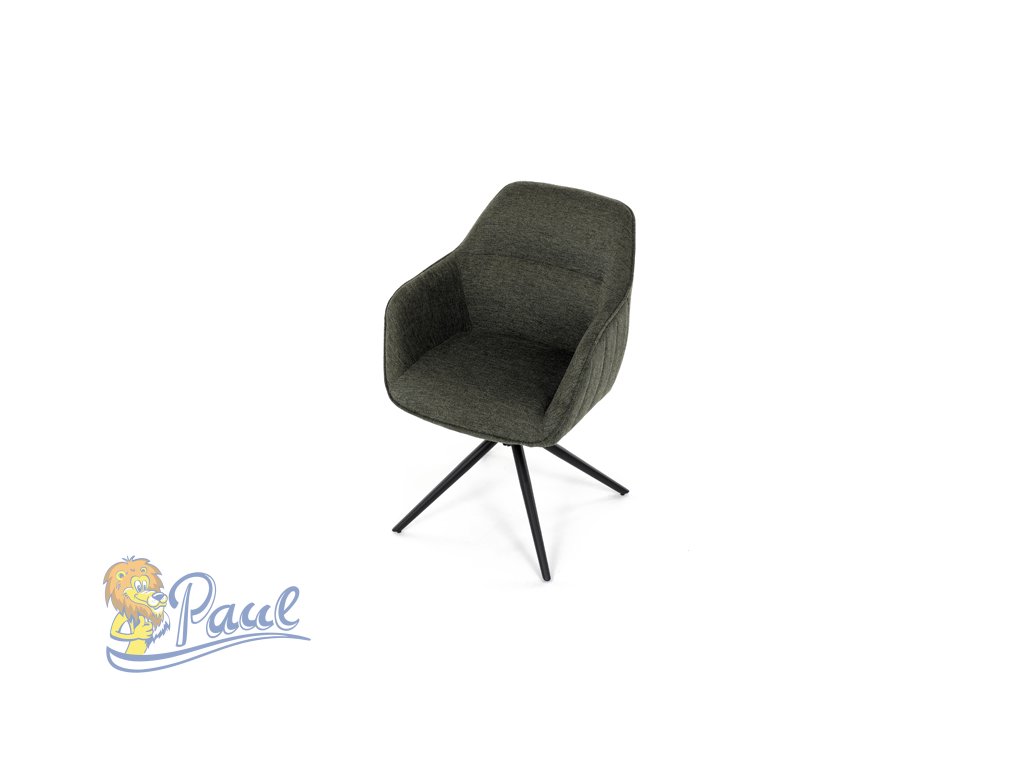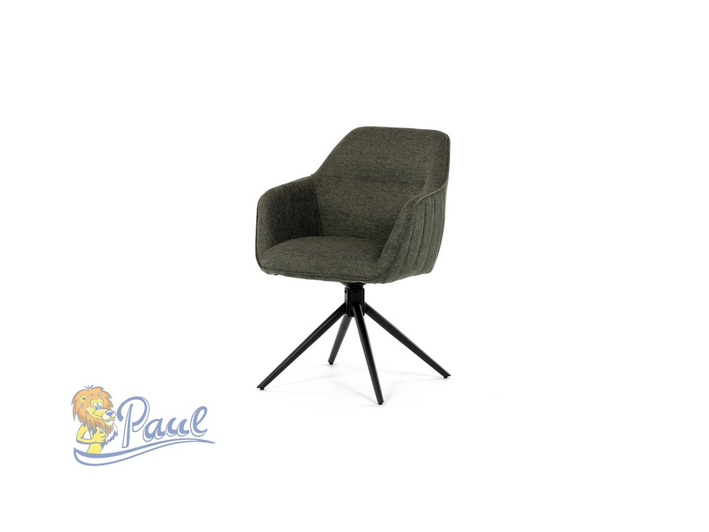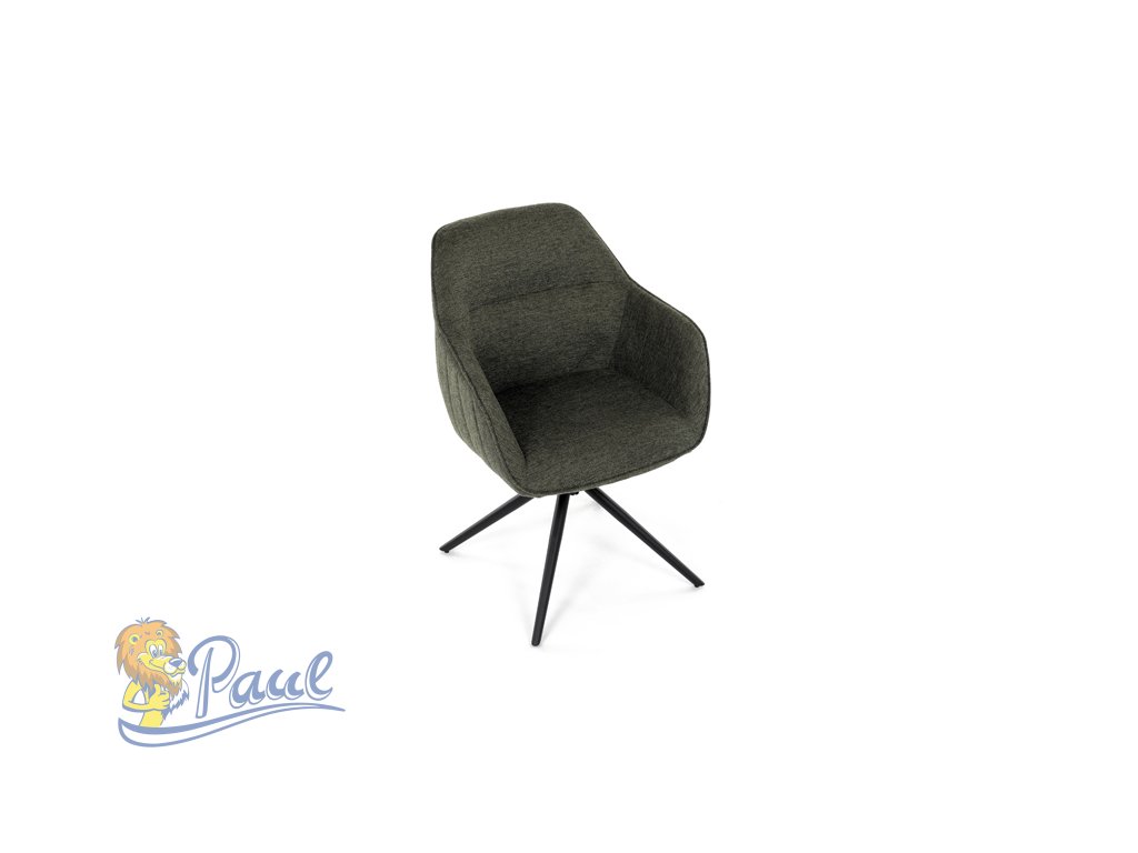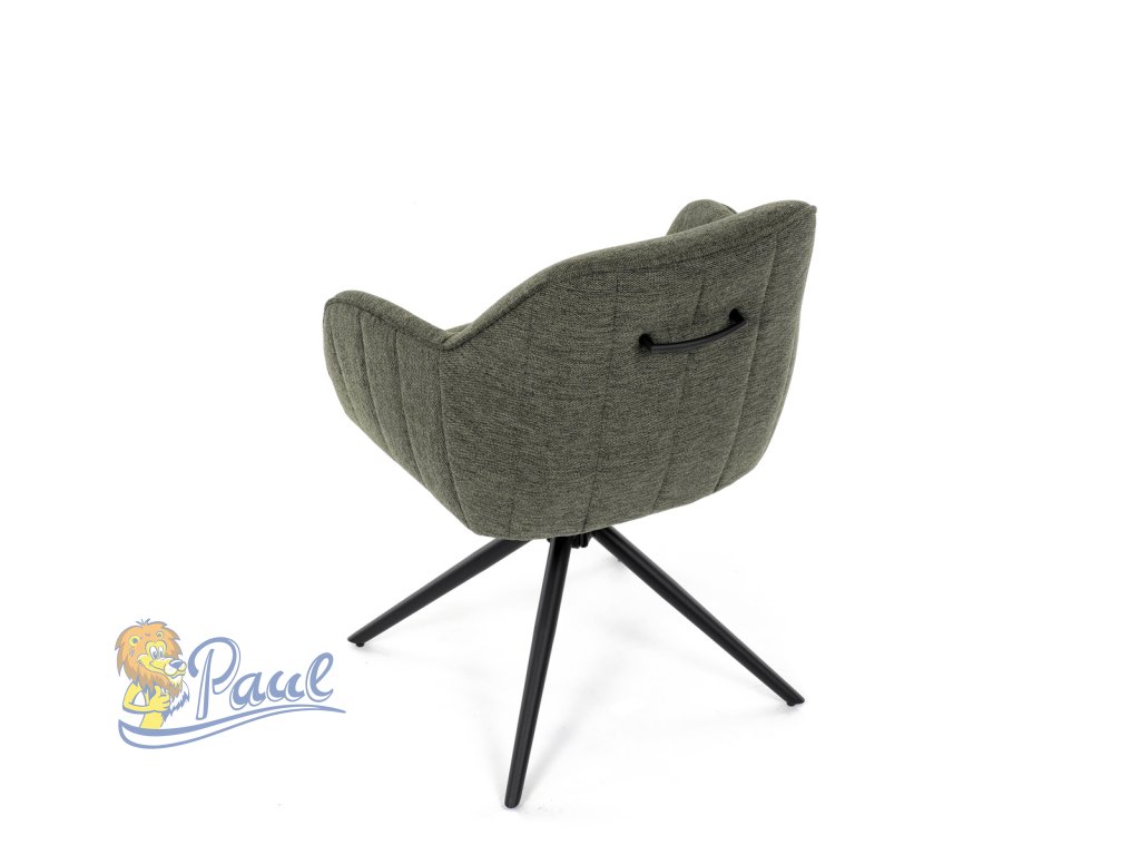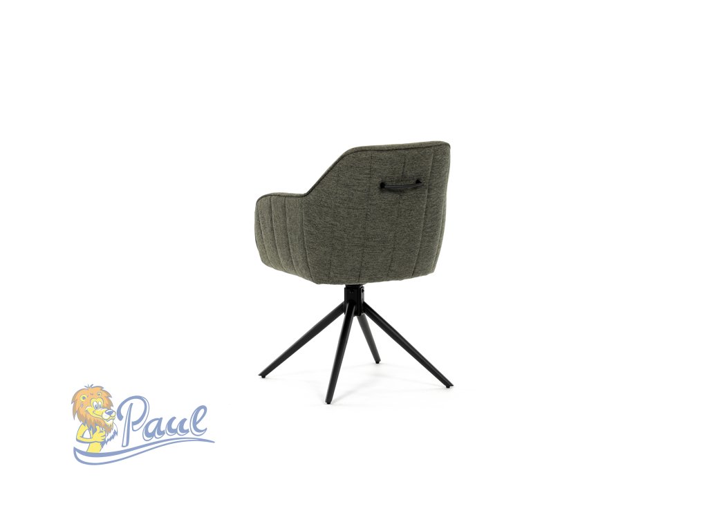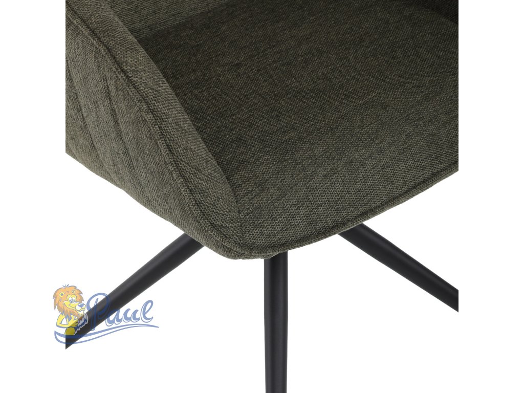 Moderní jídelní židle v zelené barvě s efektním prošitím zádové i přední části opěráku. Prošití je v brvě potahového materiálu. Zadní část opěráku je opatřena vkusným madlem pro snazší manipulaci. Čtyři kovové nohy v matném práškovém nástřiku vycházejí z centrálního bodu ve středu sedáku. Sedák je otočný o P90°+ L 90° s vratným mechanismem - funkce reset.Doplňkové parametry