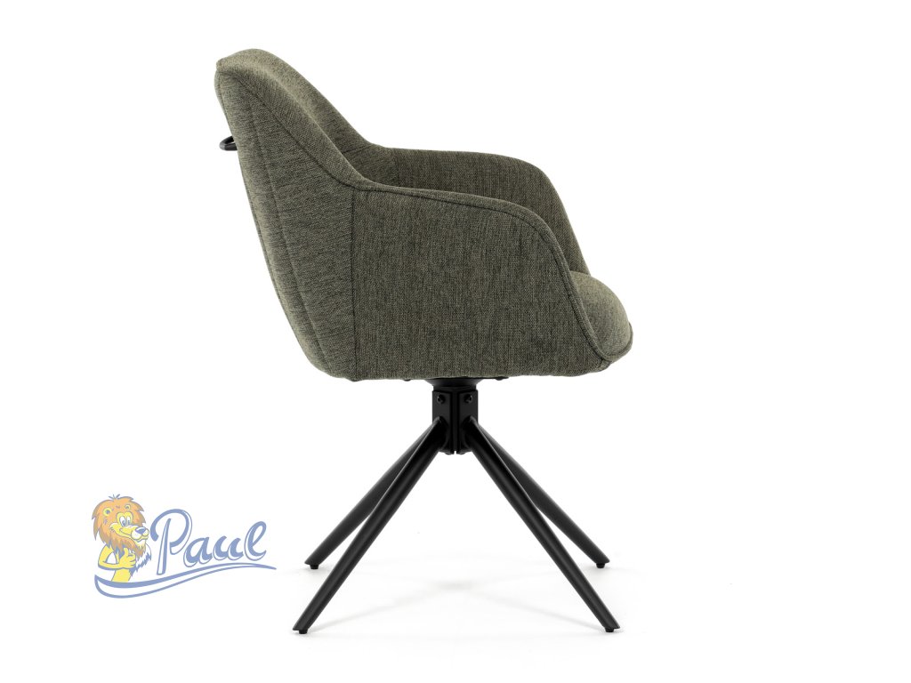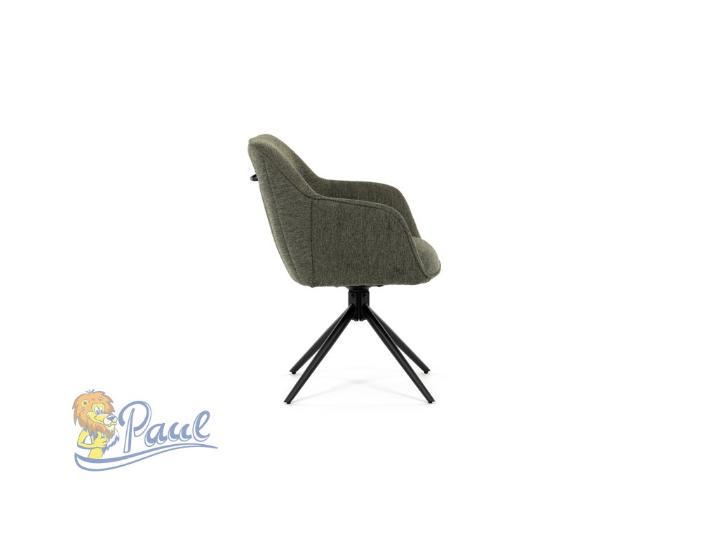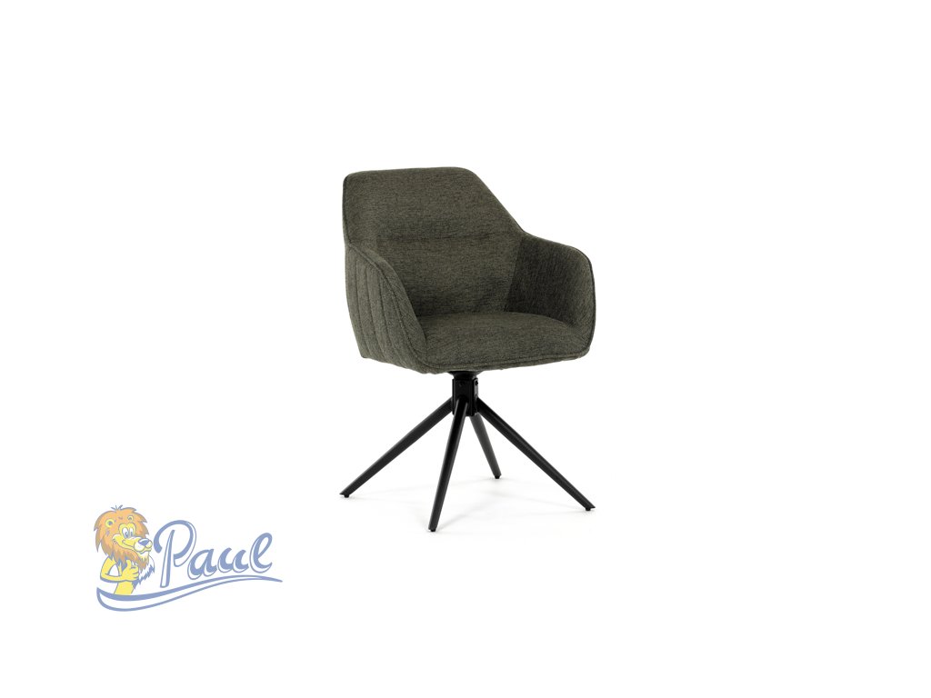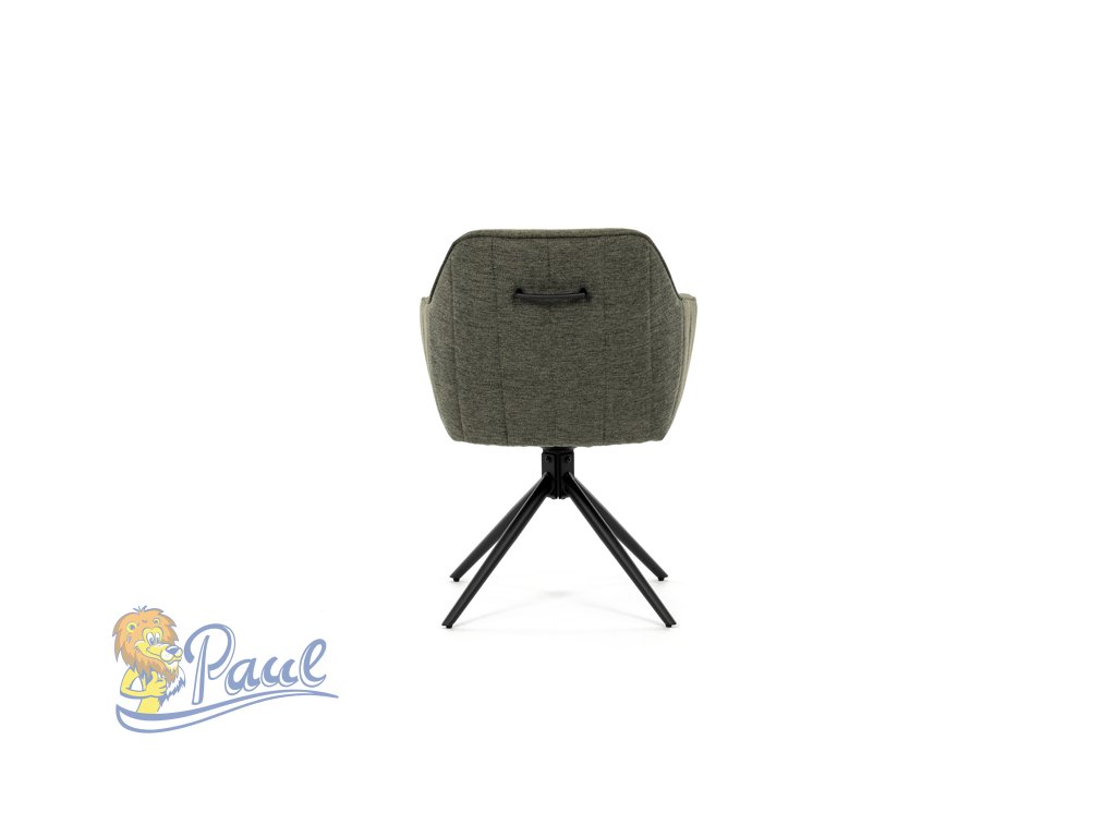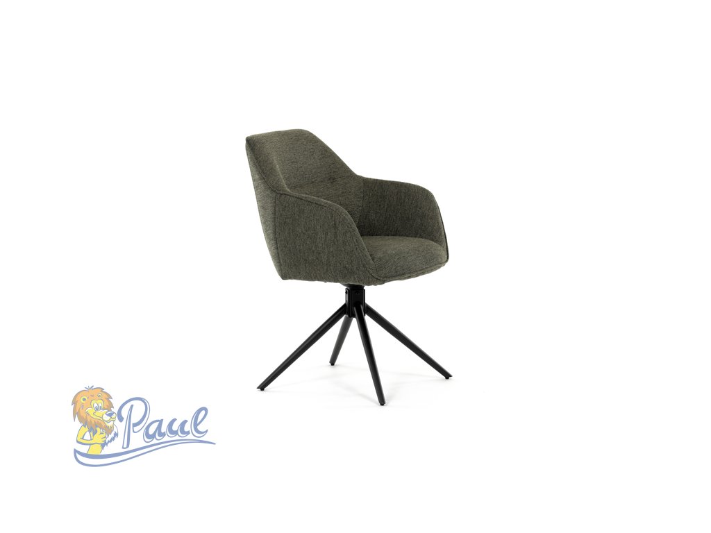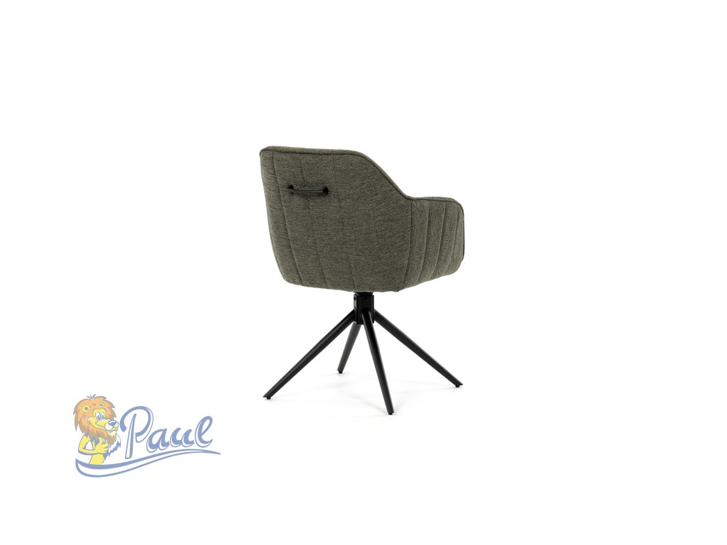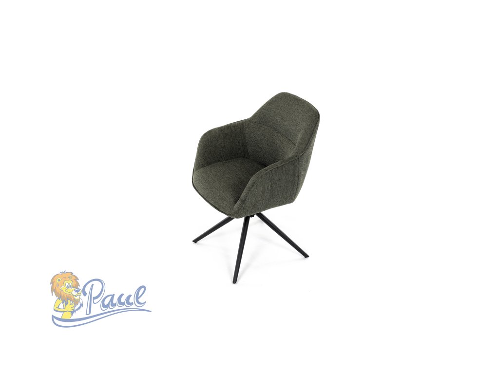 Moderní jídelní židle v zelené barvě s efektním prošitím zádové i přední části opěráku. Prošití je v brvě potahového materiálu. Zadní část opěráku je opatřena vkusným madlem pro snazší manipulaci. Čtyři kovové nohy v matném práškovém nástřiku vycházejí z centrálního bodu ve středu sedáku. Sedák je otočný o P90°+ L 90° s vratným mechanismem - funkce reset.Doplňkové parametry