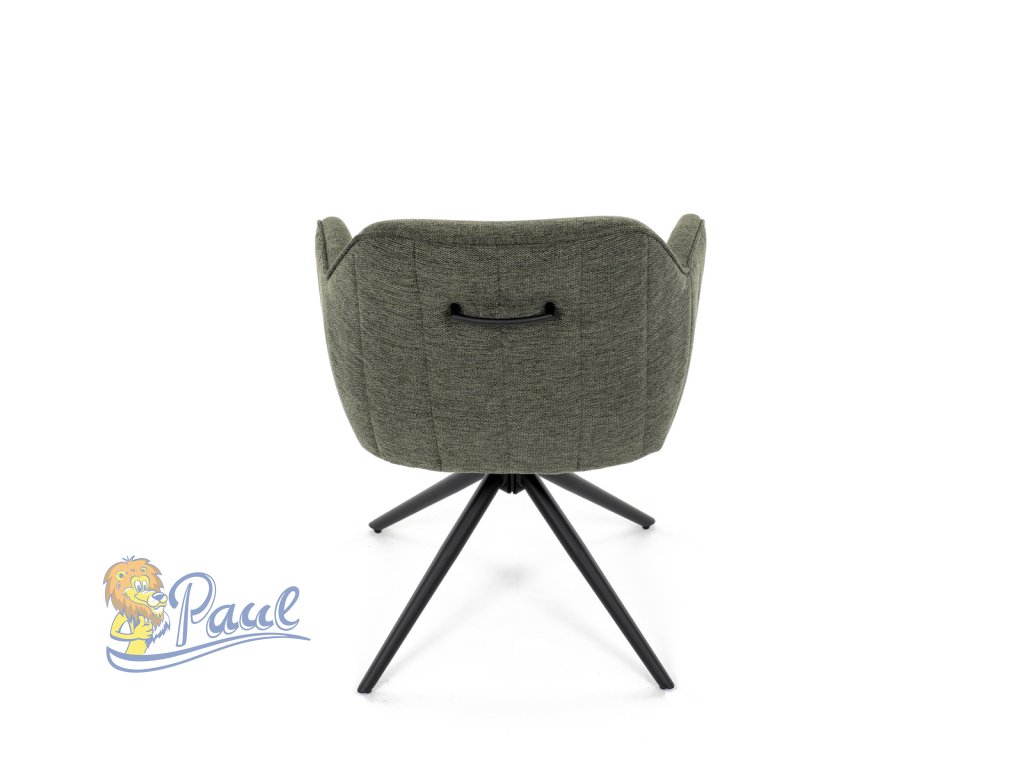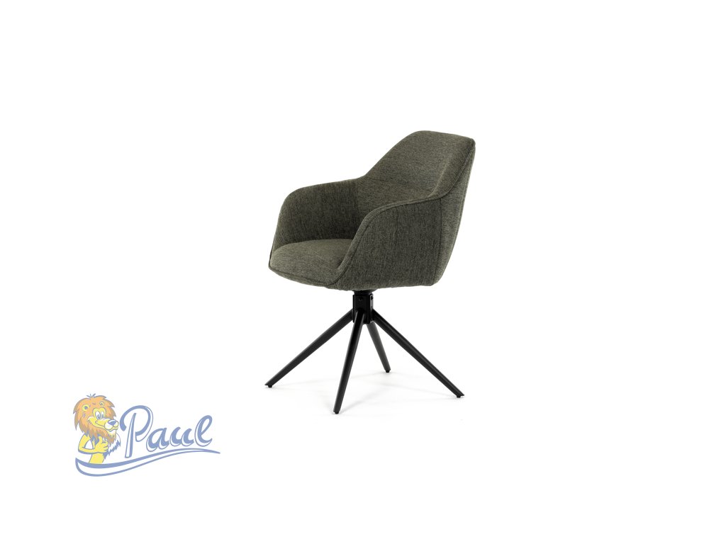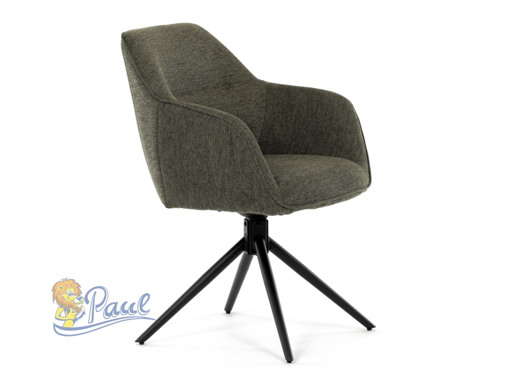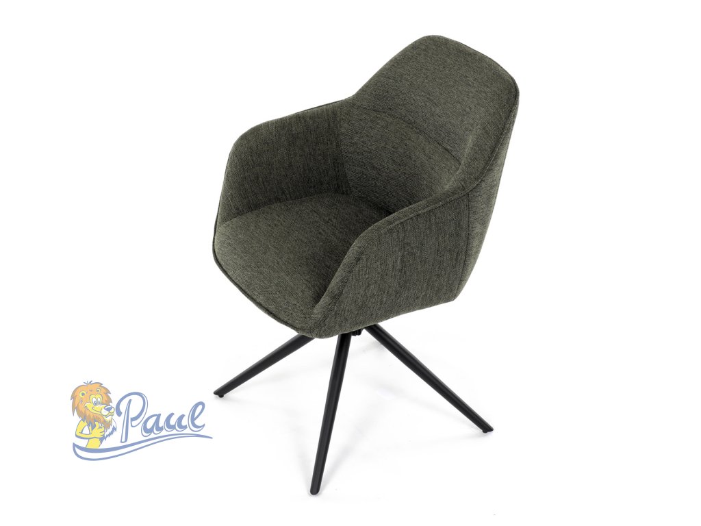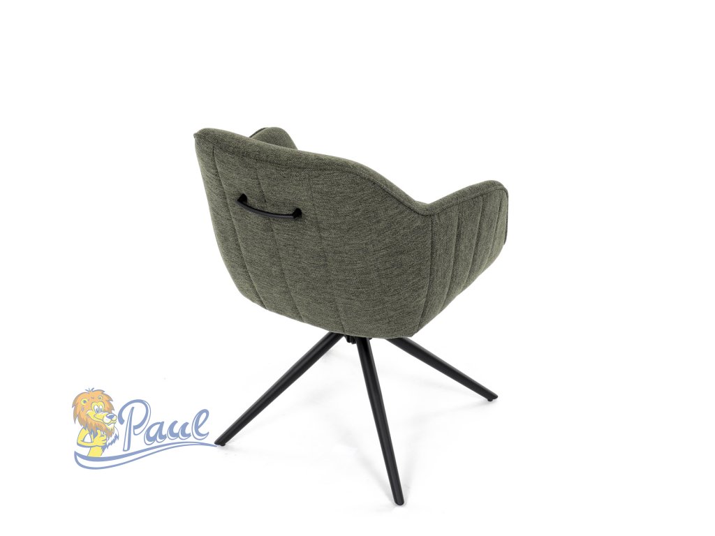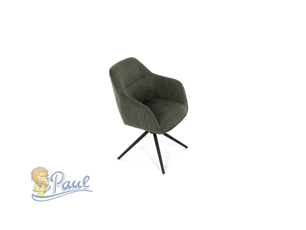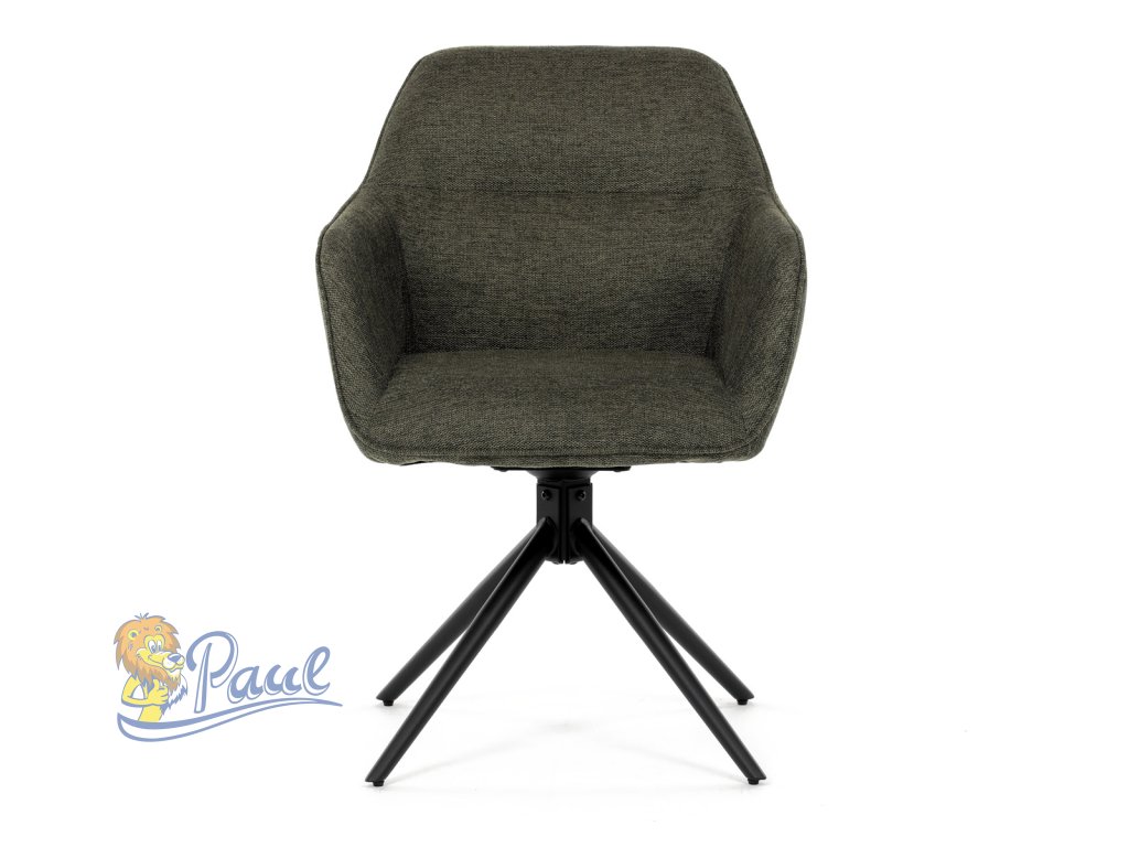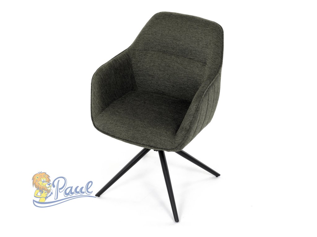 Moderní jídelní židle v zelené barvě s efektním prošitím zádové i přední části opěráku. Prošití je v brvě potahového materiálu. Zadní část opěráku je opatřena vkusným madlem pro snazší manipulaci. Čtyři kovové nohy v matném práškovém nástřiku vycházejí z centrálního bodu ve středu sedáku. Sedák je otočný o P90°+ L 90° s vratným mechanismem - funkce reset.Doplňkové parametry