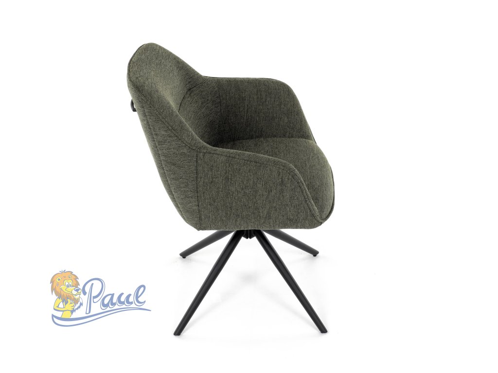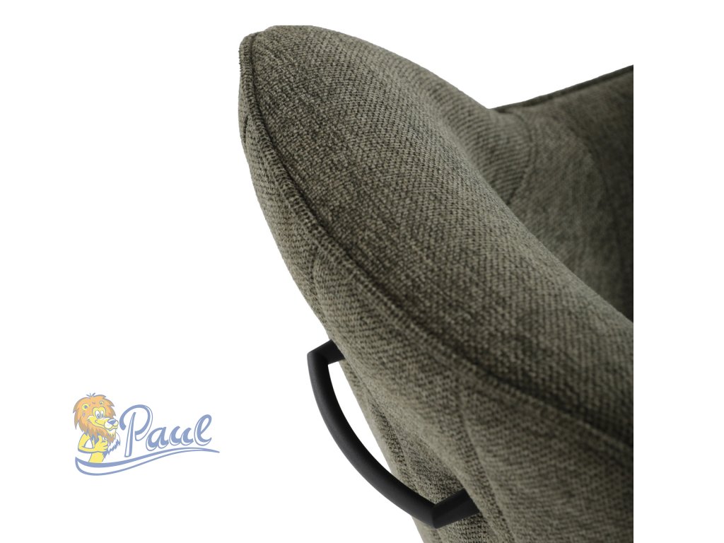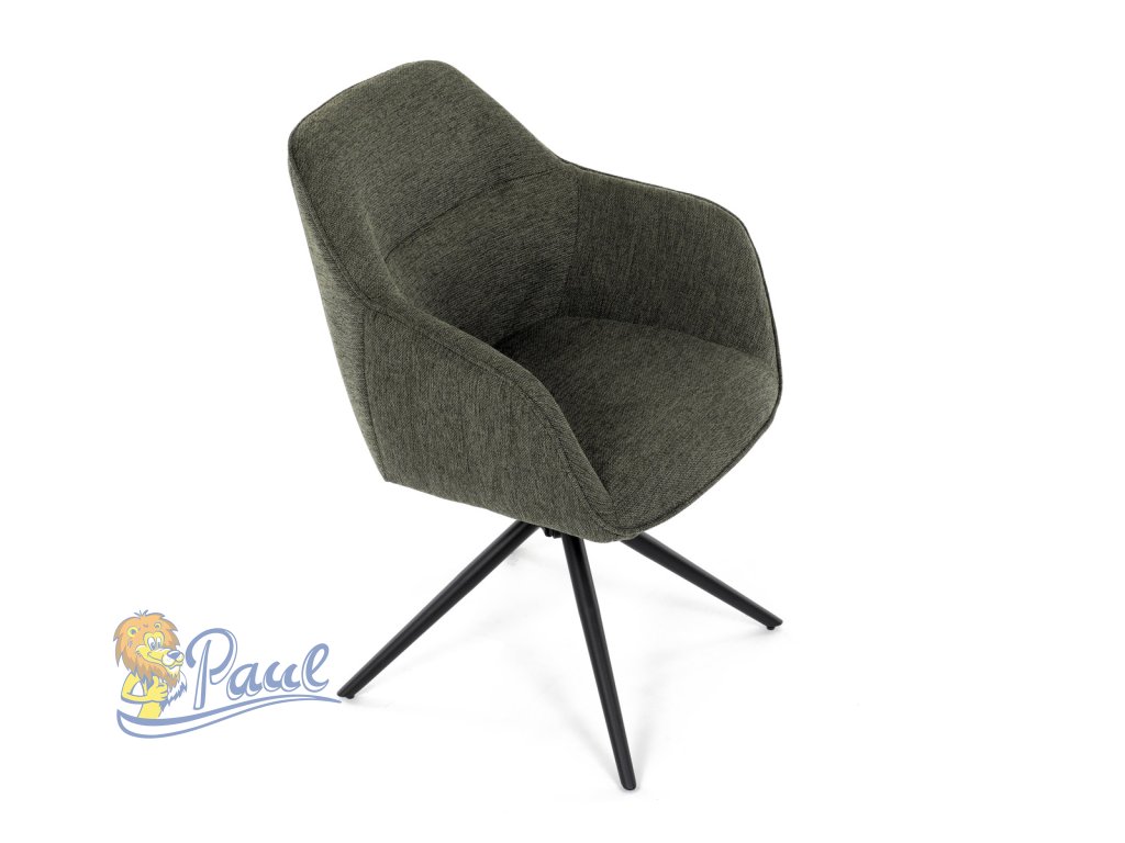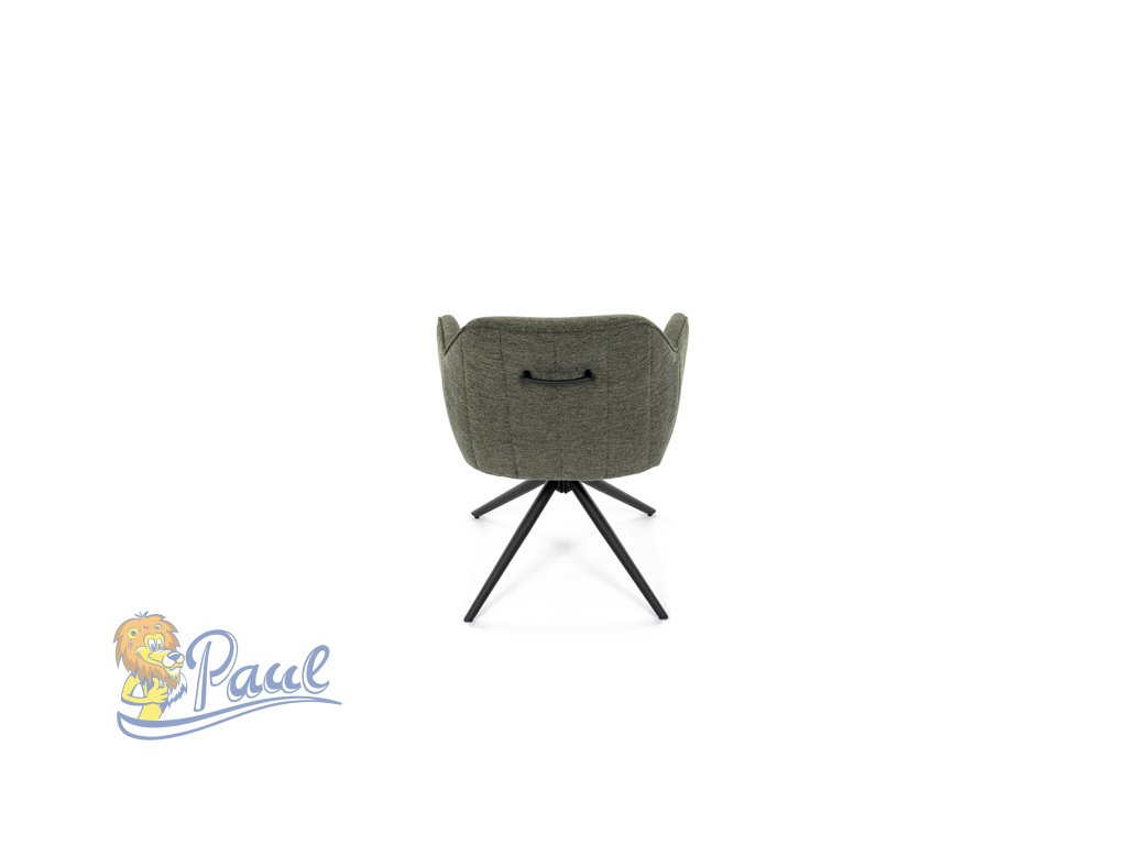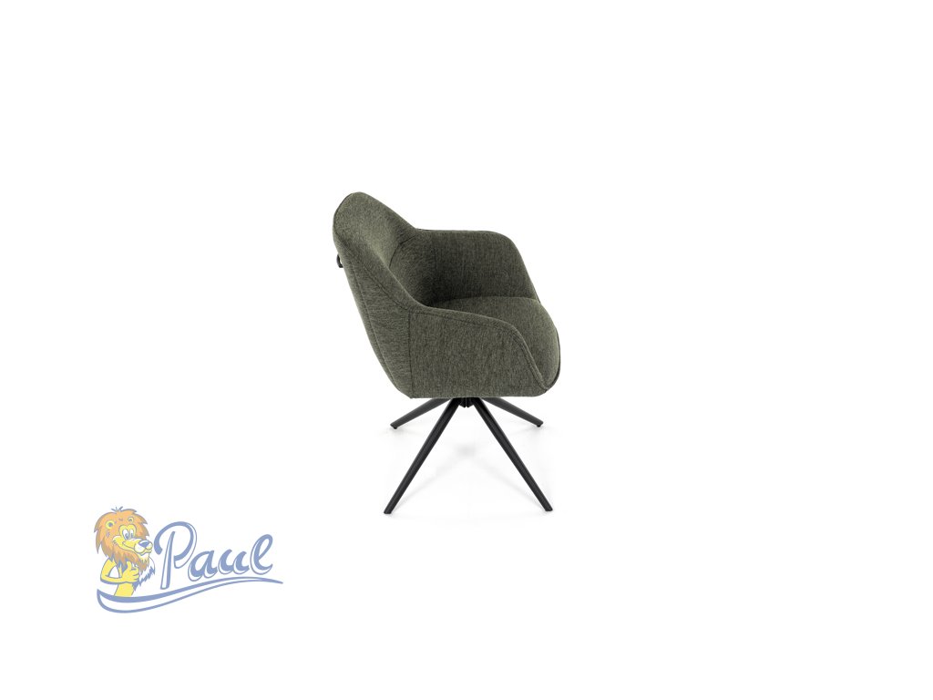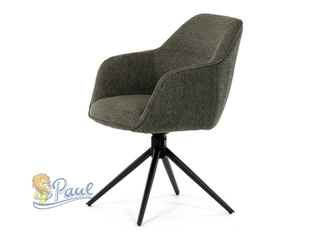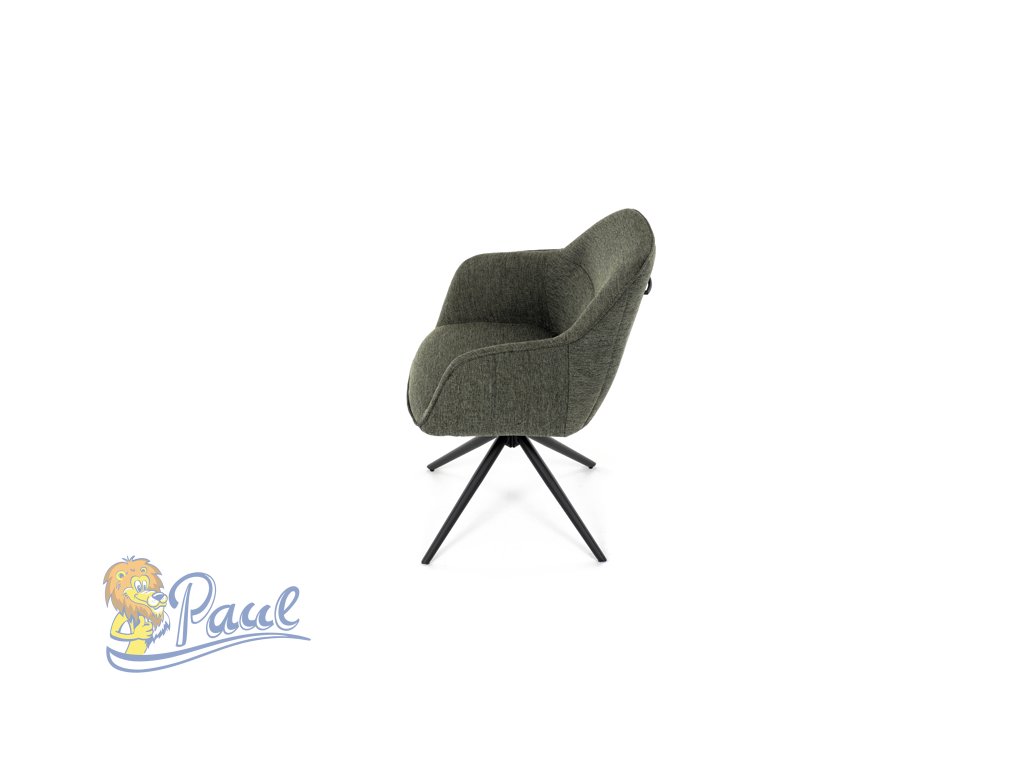 Moderní jídelní židle v zelené barvě s efektním prošitím zádové i přední části opěráku. Prošití je v brvě potahového materiálu. Zadní část opěráku je opatřena vkusným madlem pro snazší manipulaci. Čtyři kovové nohy v matném práškovém nástřiku vycházejí z centrálního bodu ve středu sedáku. Sedák je otočný o P90°+ L 90° s vratným mechanismem - funkce reset.Doplňkové parametry