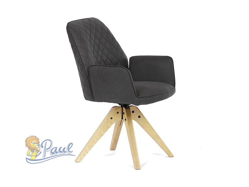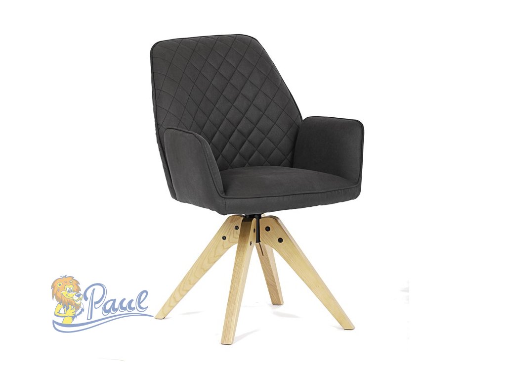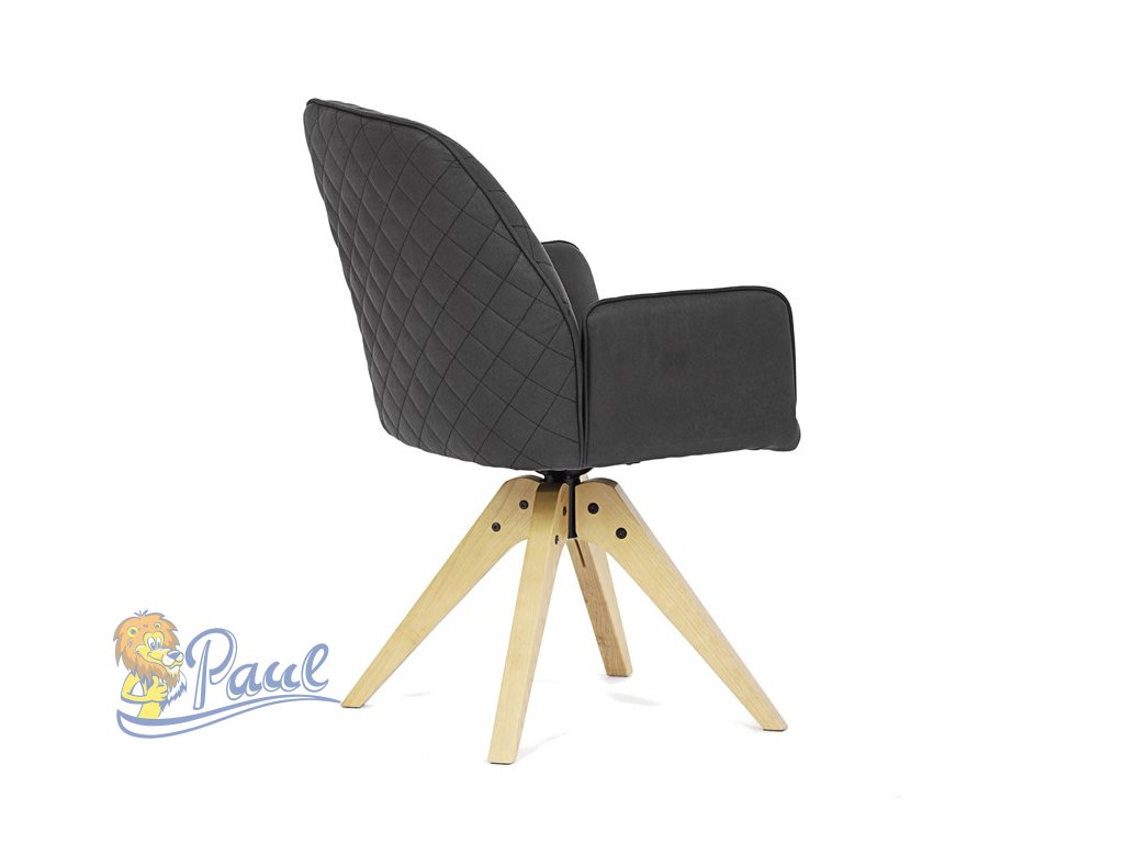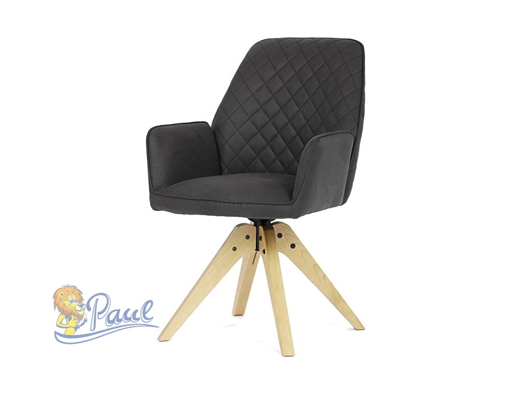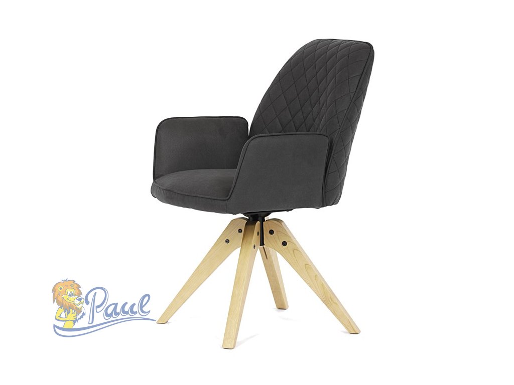 Židle jídelní s područkami, černá látka, nohy z jasanu, otočná P90°+ L 90° s vratným mechanismem - funkce reset