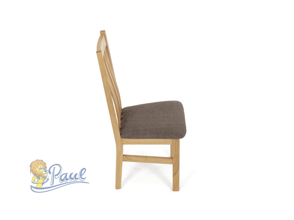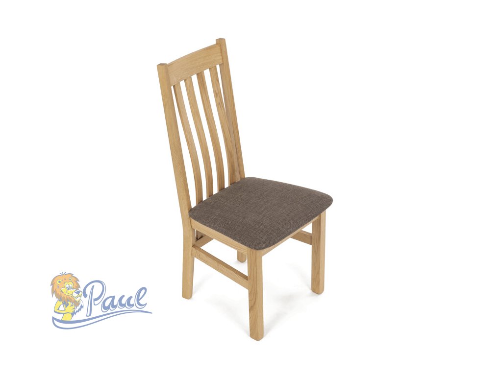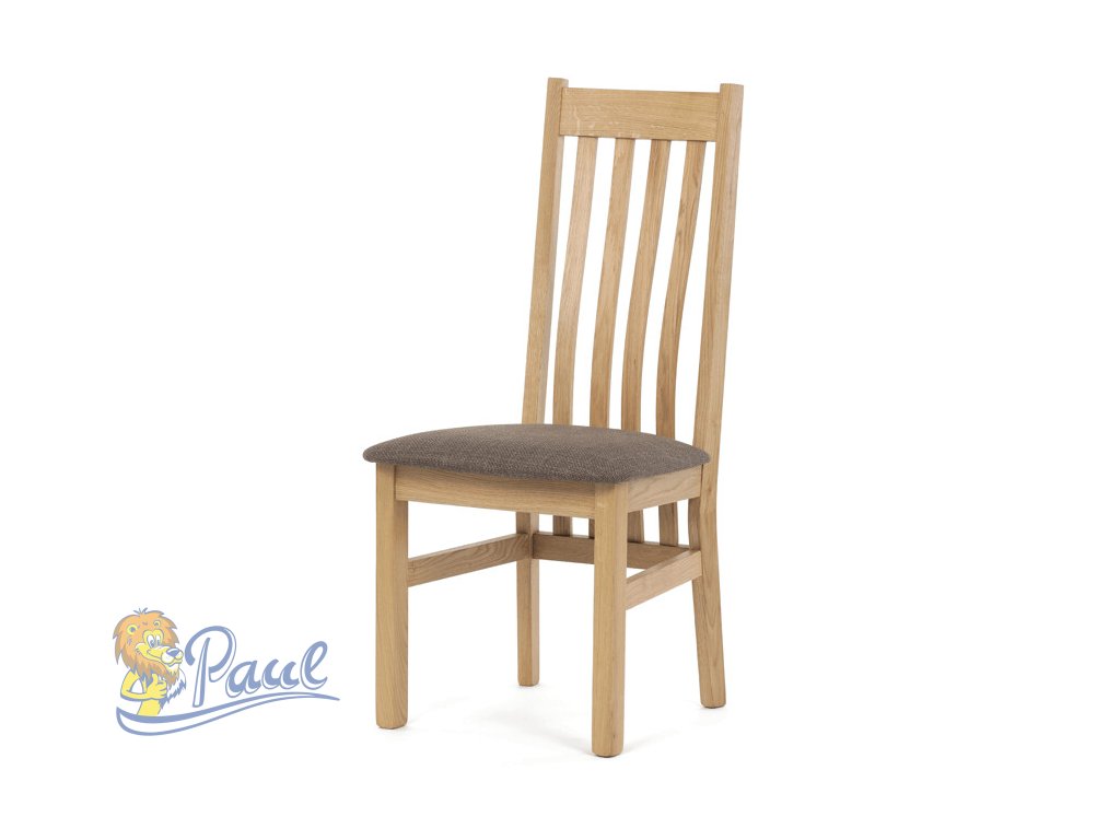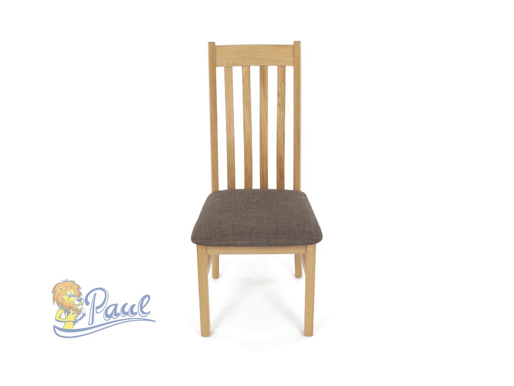 Dřevěná jídelní židle, potah čokoládově hnědá látka, masiv dub, přírodní odstín
