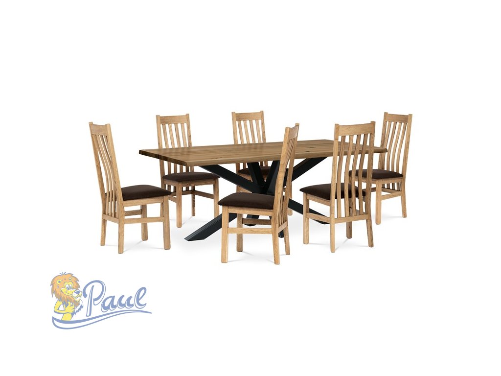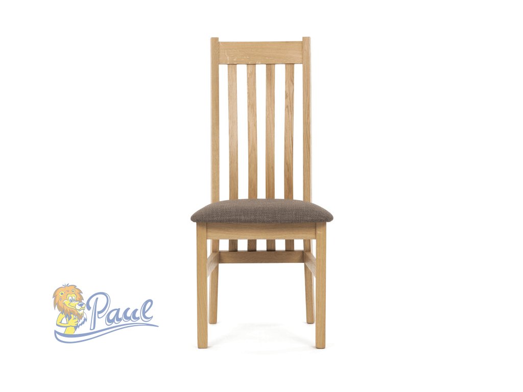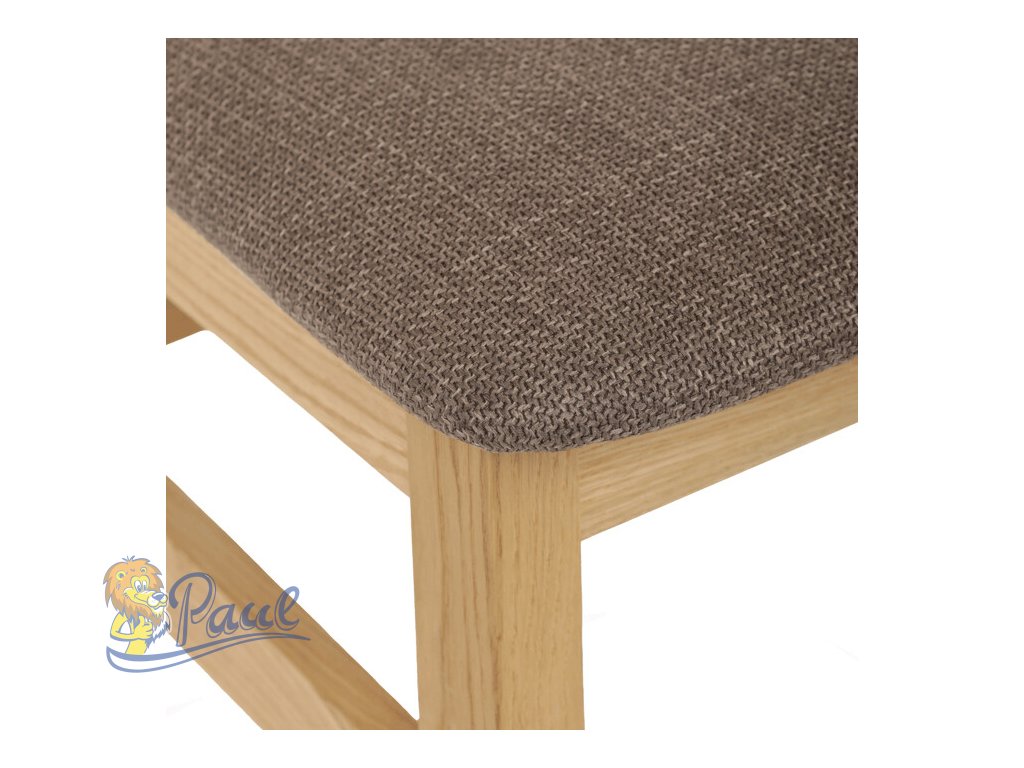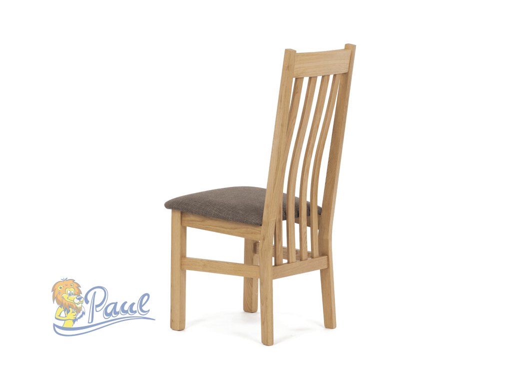 Dřevěná jídelní židle, potah čokoládově hnědá látka, masiv dub, přírodní odstín