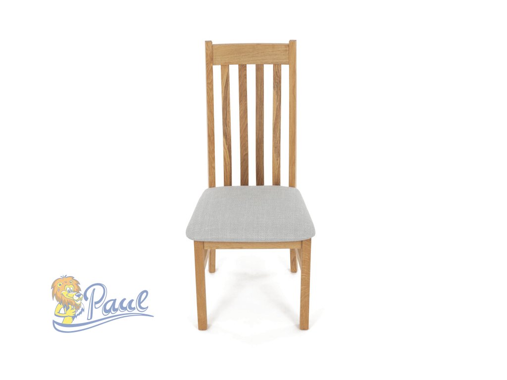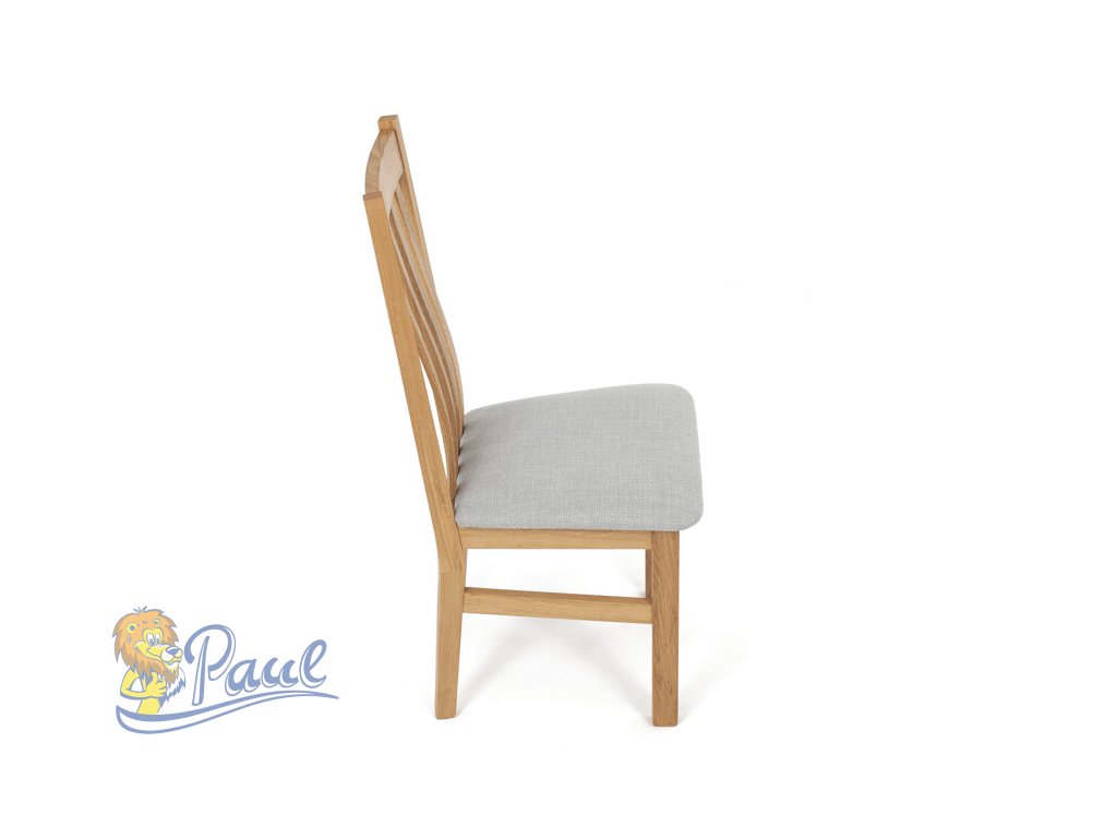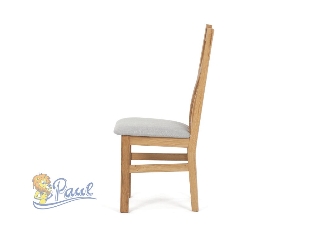 Dřevěná jídelní židle, potah stříbrná látka, masiv dub, přírodní odstín