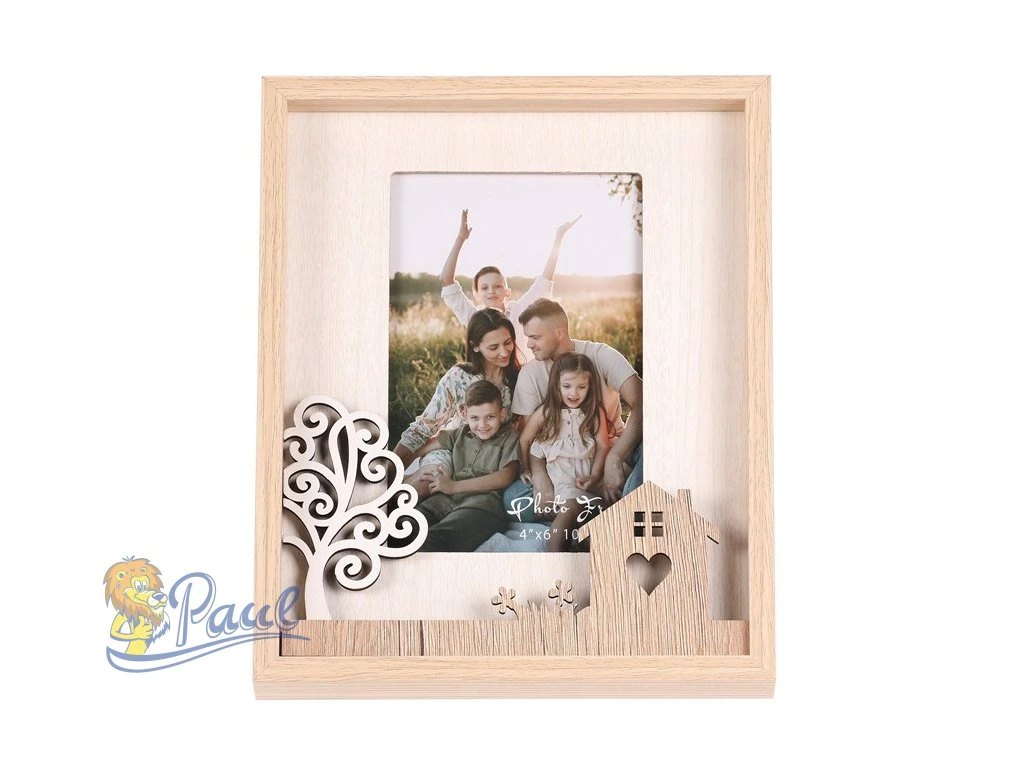 Fotorámeček o rozměru 10 x 15 cm je ideální pro uchování vašich rodinných vzpomínek. Rámeček vyrobený z MDF v přírodní barvě dřeva a jeho jednoduchý design se hodí do každého interiéru. Rámeček je uzpůsoben k postavení na poličku, do regálu nebo na stolek, kde připomene krásné společné chvíle s vašimi blízkými.Doplňkové parametry