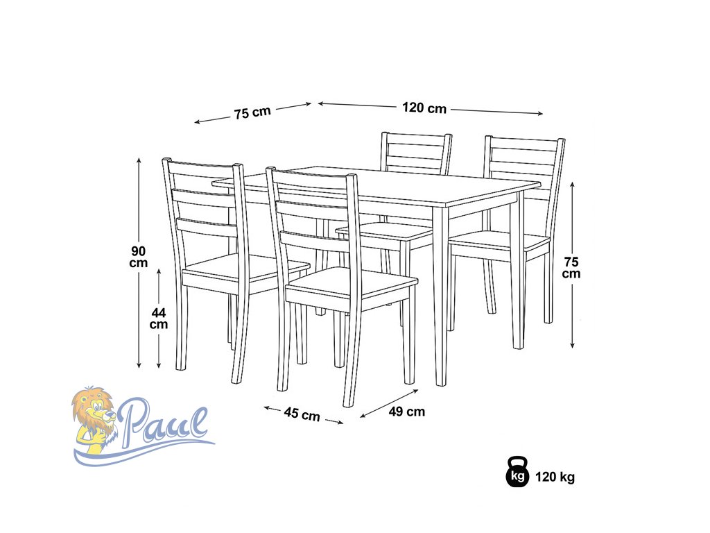 Jídelní set 1+4, rozměr stolu 120x75x75 cm, MDF, dýha, masivní nohy, moření dub