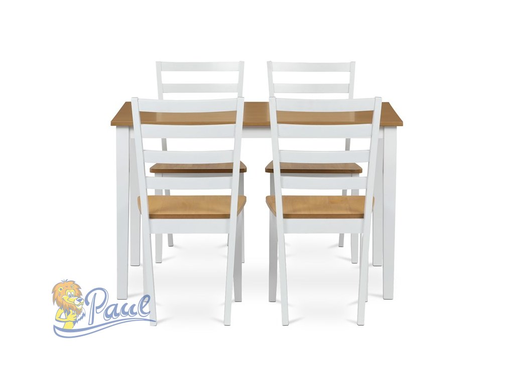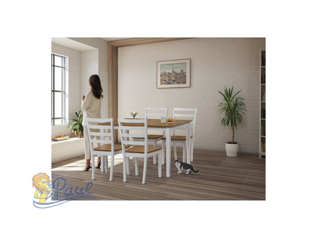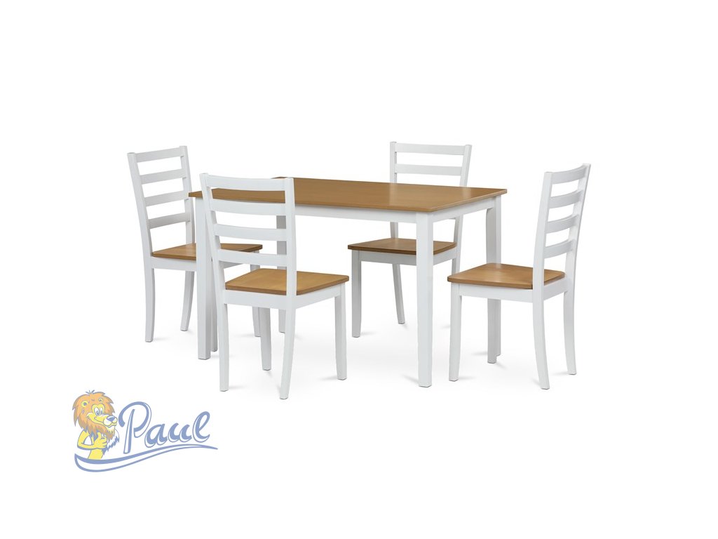 Vneste do svého domova harmonii s elegantním jídelním setem značky Autronic. Kombinace bílých masivních nohou a desky v přírodním dubovém dekoru přidá vašemu interiéru moderní a svěží vzhled. Set zahrnuje stůl a čtyři židle, které nabízí pohodlí a stabilitu díky preciznímu zpracování z MDF materiálu s dýhou a masivním dřevem. Tento jídelní set je ideální volbou pro rodinné večeře i posezení s přáteli. Vytvořte si stylovou a funkční jídelnu s nadčasovým designem!Doplňkové parametry