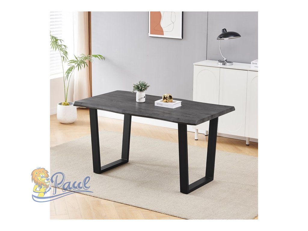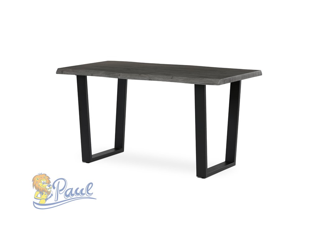 Stůl jídelní, 140x80x75 cm, MDF deska, dekor šedý dub, kovová nohy ve tvaru U, černý matný lak