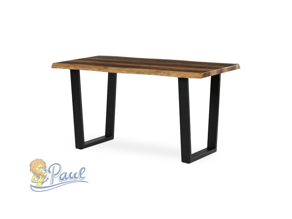 Stůl jídelní, 140x80x75 cm, MDF deska, dekor staré dřevo, kovová nohy ve tvaru U, černý matný lak