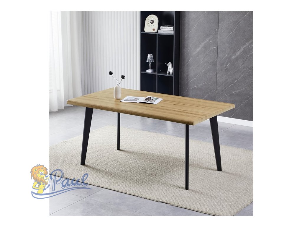 Stůl jídelní, 160x90x75 cm, MDF deska, dekor divoký dub, kov, černý lak