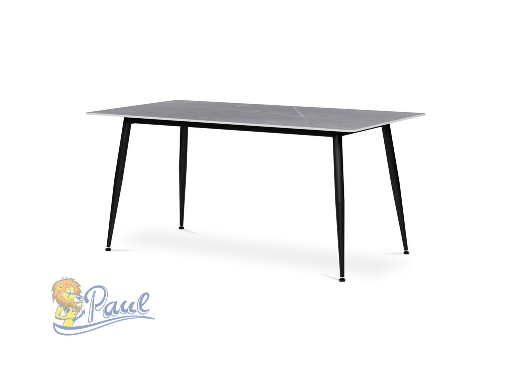 Stůl jídelní 160x90x76 cm, deska slinutý kámen v imitaci matného mramoru, černé kovové nohy