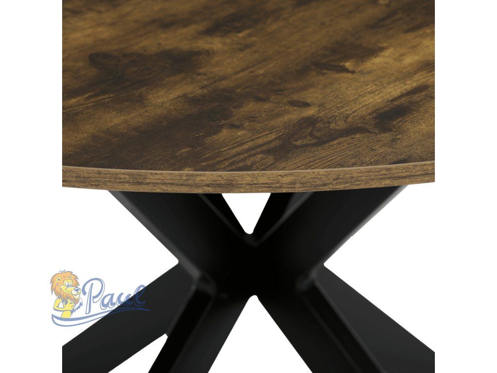 Stůl jídelní kulatý, 120x120x75,5 cm, MDF staré dřevo, černé kovové nohy