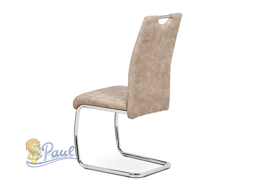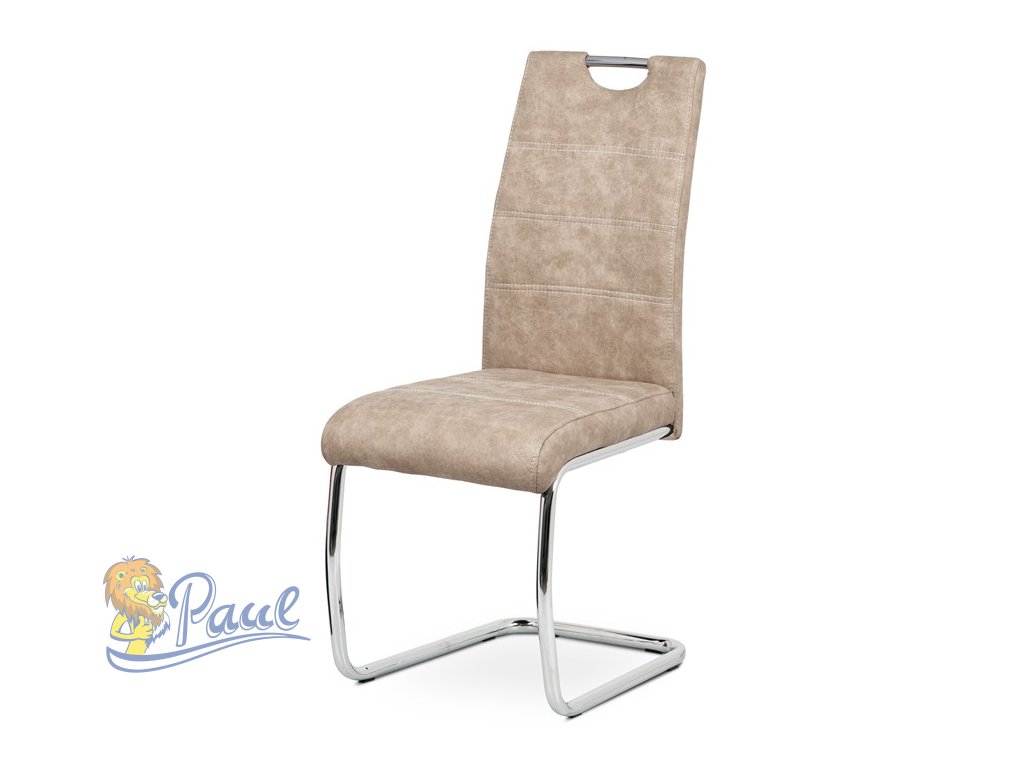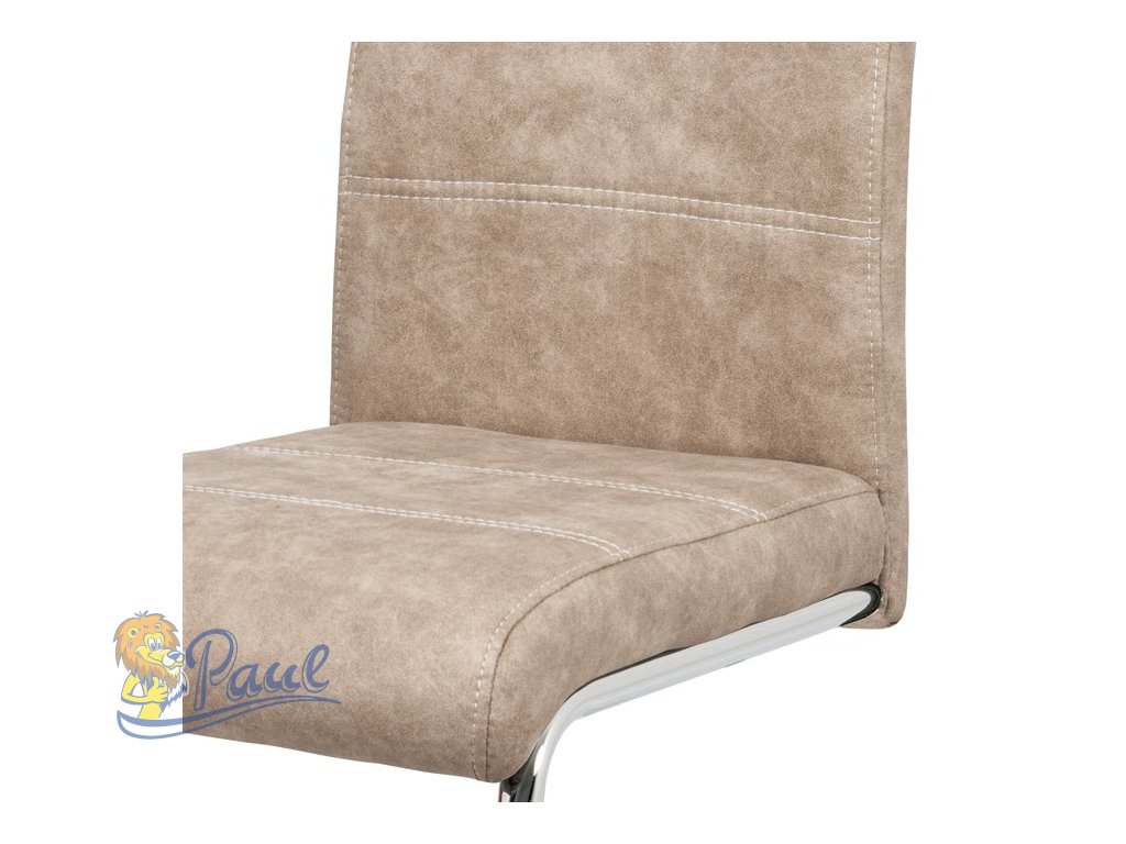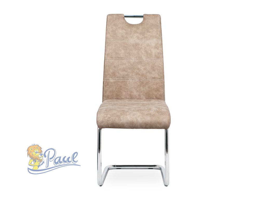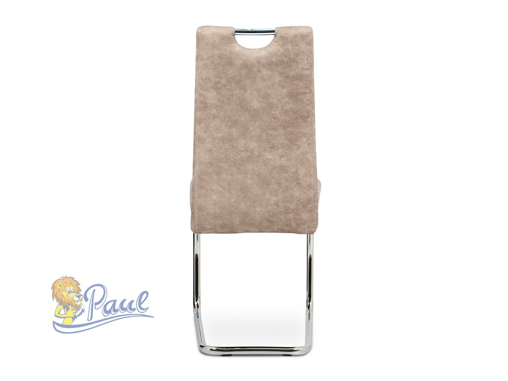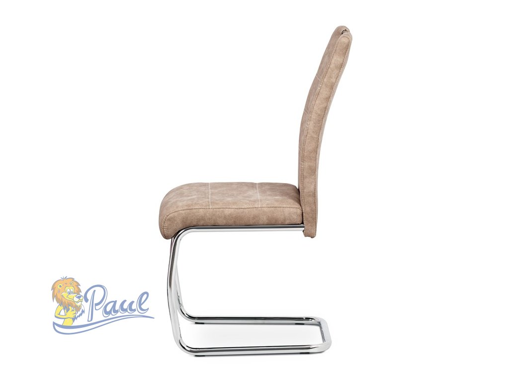 Jídelní židle HC-483 CRM3 v béžovém odstínu s potahem z látky v dekoru vintage kůže kombinuje stylový vzhled s praktickými vlastnostmi. Čalounění z kvalitní látky připomínající kůži je příjemné na dotek a snadno se udržuje, zatímco pevná kovová chromovaná podnož zajišťuje stabilitu a odolnost. Židle je vybavena pohupovým mechanismem, který přispívá k pohodlí při sezení, a ergonomicky tvarovaným opěradlem s praktickým úchytem pro snadnou manipulaci. Absence područek umožňuje větší variabilitu použití a snadné zasunutí pod stůl. Celková výška a rozměry židle jsou navrženy tak, aby poskytovaly komfortní posezení během jídel i delších setkání.Doplňkové parametry